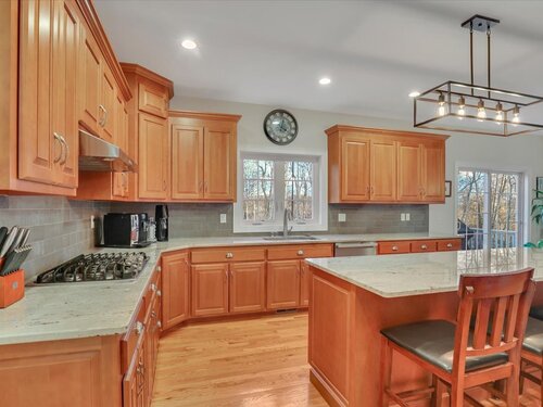 Stunning Private 5 (4)-Bedroom Home on 2.12 Acres Near Route 15 and I-84. This beautifully maintained, private home is filled with natural light and offers peaceful sunrise views from the back. Set on 2.12 acres of professionally landscaped property, it perfectly balances comfort, functionality, and timeless style. Gleaming hardwood floors, detailed crown molding, and high ceilings that give every room a spacious, open feel. The thoughtful floor plan includes four large bedrooms, 3.5 baths, and two versatile rooms - ideal for home offices, guest rooms, a playroom, or creative spaces. A front-to-back family room features a cozy gas fireplace and opens to an expansive eat-in kitchen with generous cabinet space, a long center island, and easy access to the back deck - complete with a gas grill hookup for effortless outdoor entertaining. A formal dining room with a coffered ceiling and a separate living room offer inviting spaces for gatherings and quiet moments alike. Upstairs, the primary suite provides a relaxing retreat with a walk-in closet, double-sink vanity, soaking tub, and walk-in shower. All additional bedrooms have large closets, and the first-floor laundry room adds everyday convenience. The finished walk-out lower level includes a gym area, open living space, and plenty of storage. Outside, enjoy the flat backyard with a firepit and matching storage shed (installed 2021) - perfect for evenings under the stars. A three-car garage, a whole-house generator, a rad