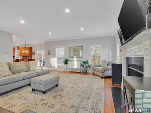 Welcome Home to 7 Jet Brook Road! This stunning, light-filled 4-BR, 3.5-BA home built in 2017 is beautifully situated on a private 2.12 acre lot in desirable Newtown. This meticulously maintained residence boasts gleaming hardwood floors and offers a thoughtful floor plan featuring a formal dining room with coffered ceilings, a separate living room, first floor home office or guest room and a large bright and inviting family room with recessed lighting and a beautiful gas fireplace. The chef's kitchen is perfect for entertaining as it has an expansive granite island, stainless steel appliances, tons of storage, includes a pantry and walks out to the back deck with a gas-grill hookup for effortless entertaining. First floor laundry room adds to the many conveniences in this home. Upstairs highlights include a primary suite with a tray ceiling adding to it's architectural drama, a walk-in closet, large en suite bathroom with tile shower, granite counters and a soaking tub with private views. Two more full baths add convenience to the remaining three bedrooms and second office or playroom option. The beautifully finished walk-out basement with extensive wood trim hosts a playroom and gym option and a large 3-car garage. Modern essentials like a whole-house generator, radon system, storage shed (added in 2021) make this home move-in ready and worry-free. Entertain in the evening outside on your maintenance free deck or around the fire pit!