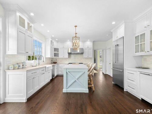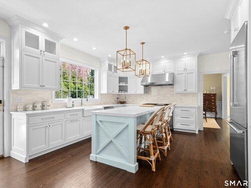 Gracious and light-filled, this stunning 5200 sq ft. classic, located on coveted Kimberly Place, offers the best of in-town living! This home has four fully finished floors, high ceilings, detailed millwork, hardwood floors, versatile floor plan, and lovely private rear yard with expansive terrace. This five bedroom, four full and one half bath home offers a gorgeous new custom-built kitchen with high end appliances, large island, and dining area that opens into a fabulous family room with fireplace and built-ins. The spacious, newly renovated lower level with full bath, has endless possibilities for play, exercise and work. Additional improvements include new cedar roof, copper gutters, complete painting of interior and exterior, new cedar fencing, and so much more. This desirable location offers a short walk to town and the New Canaan train station!