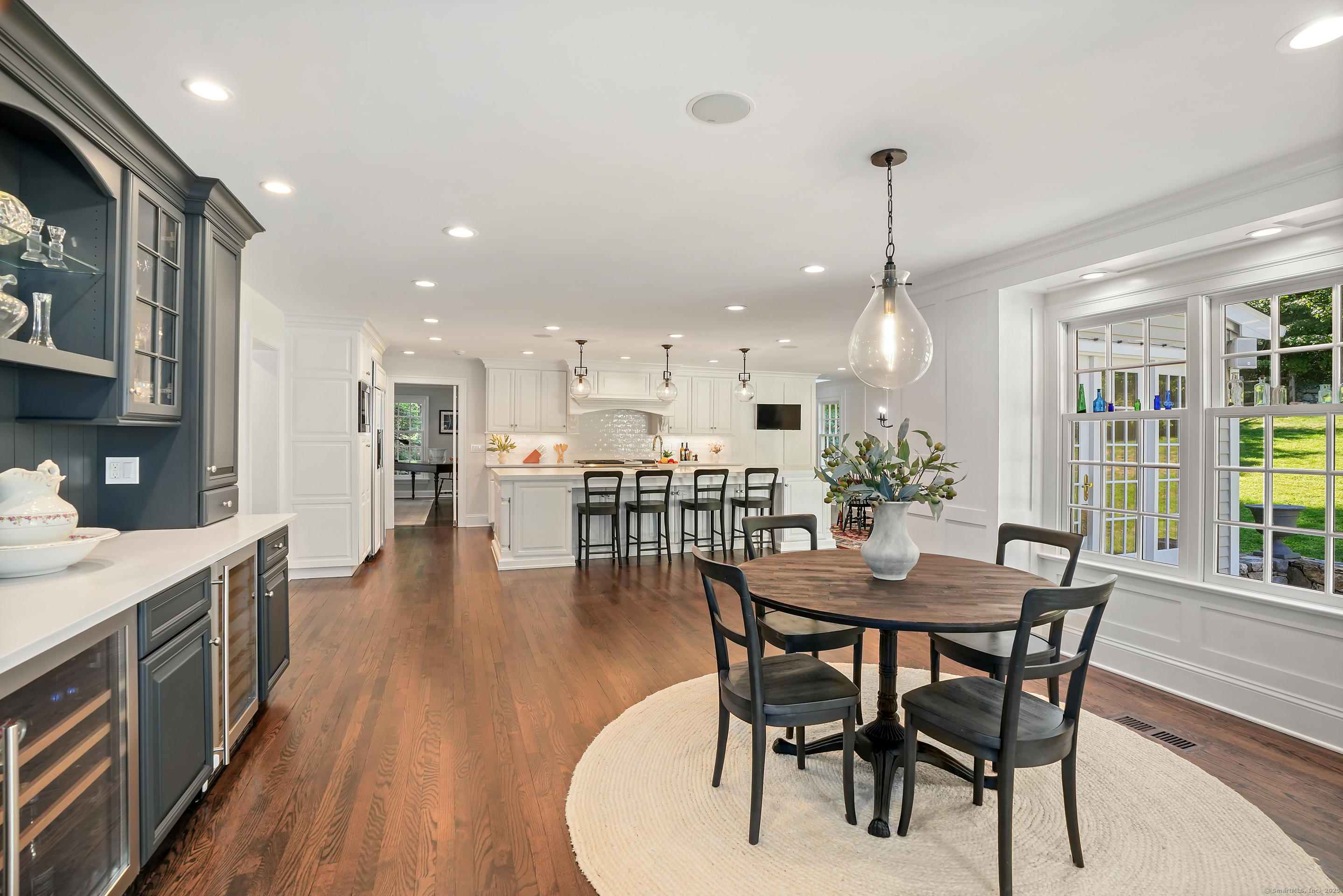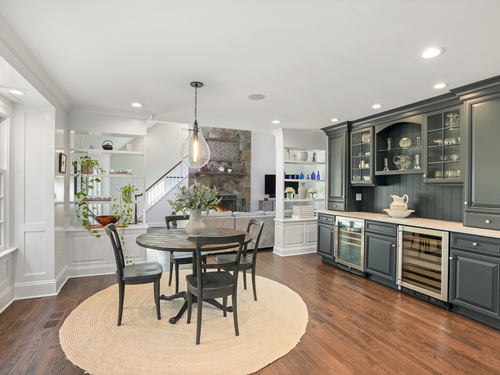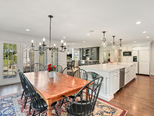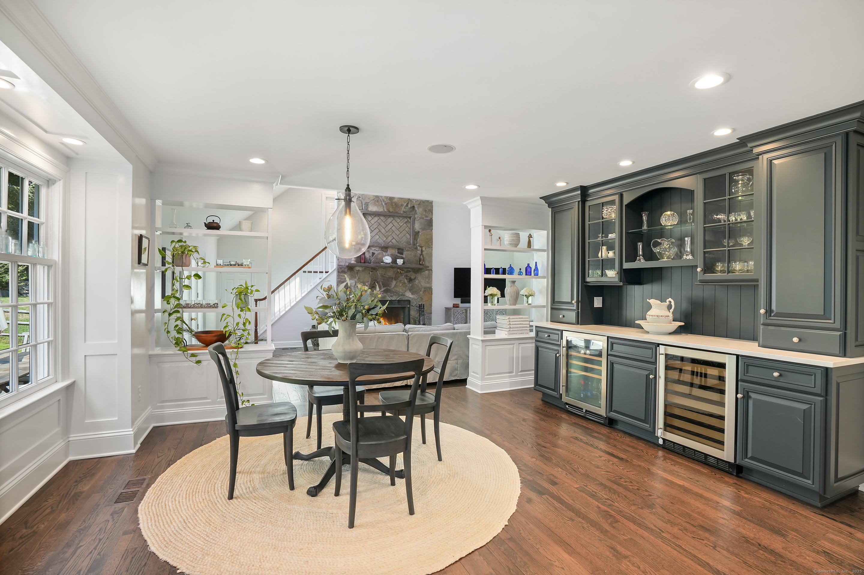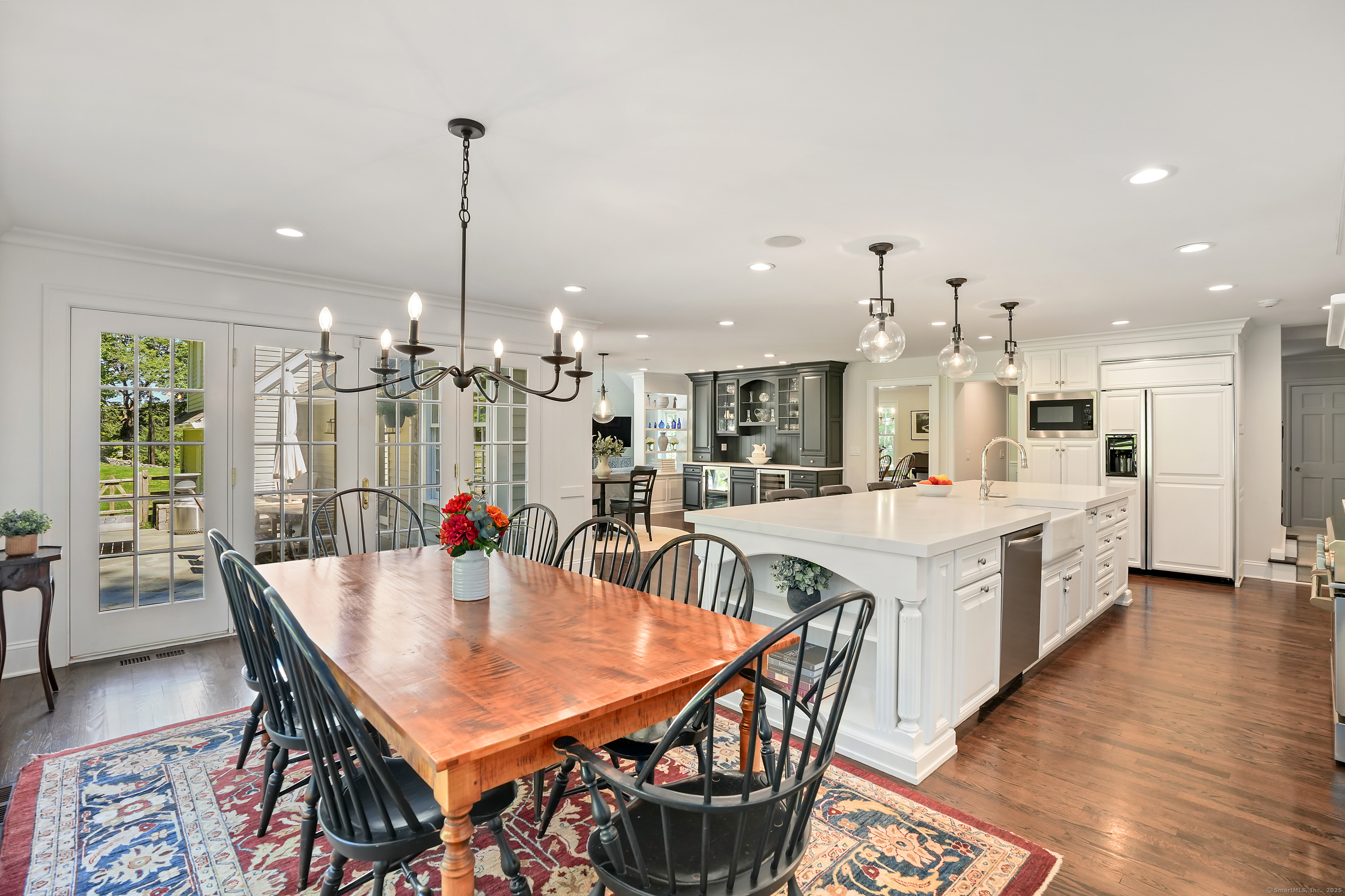 Built-Ins, Quartz Counters, Dining Area, French Doors, Patio/Terrace, Hardwood Floor