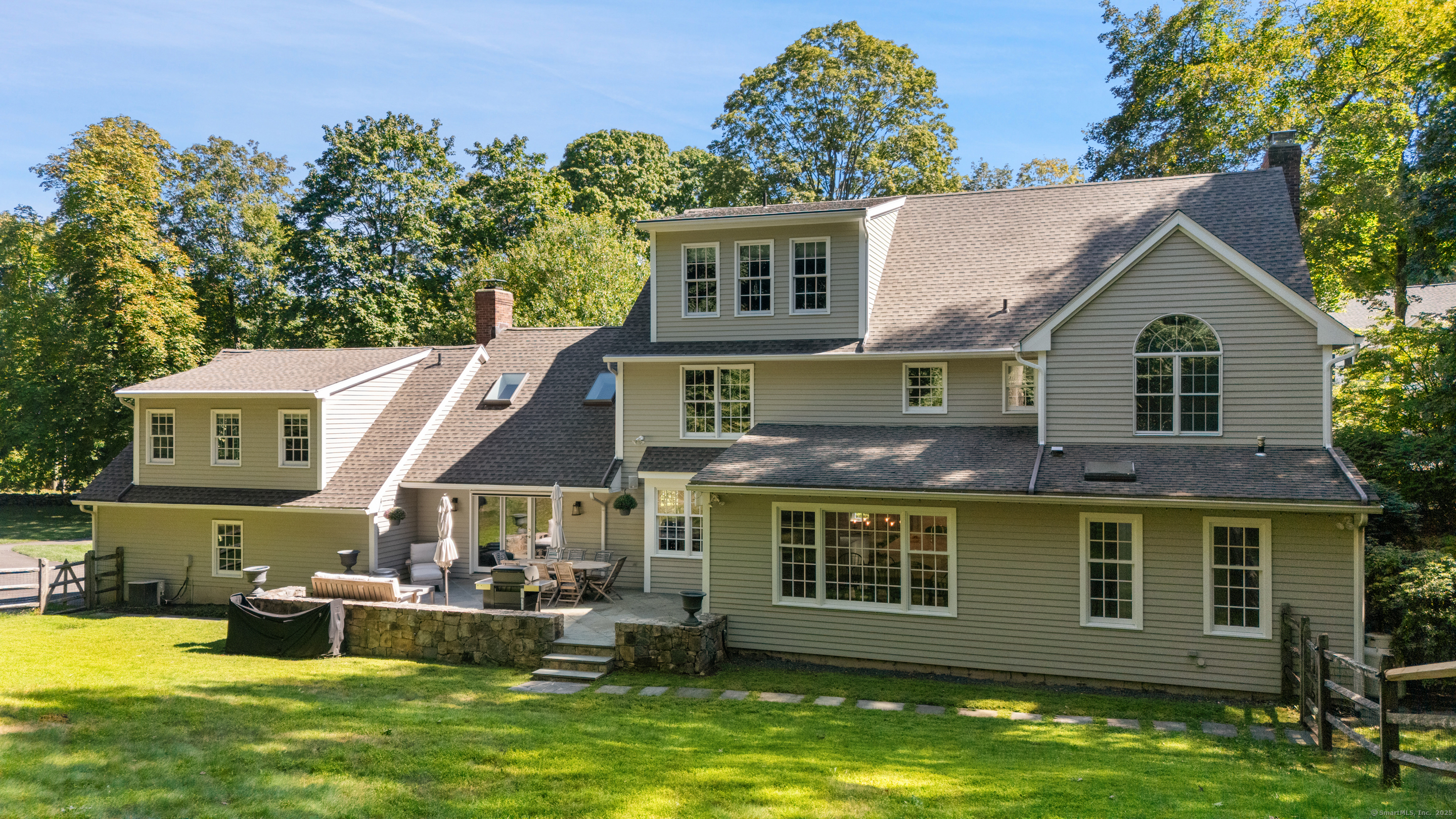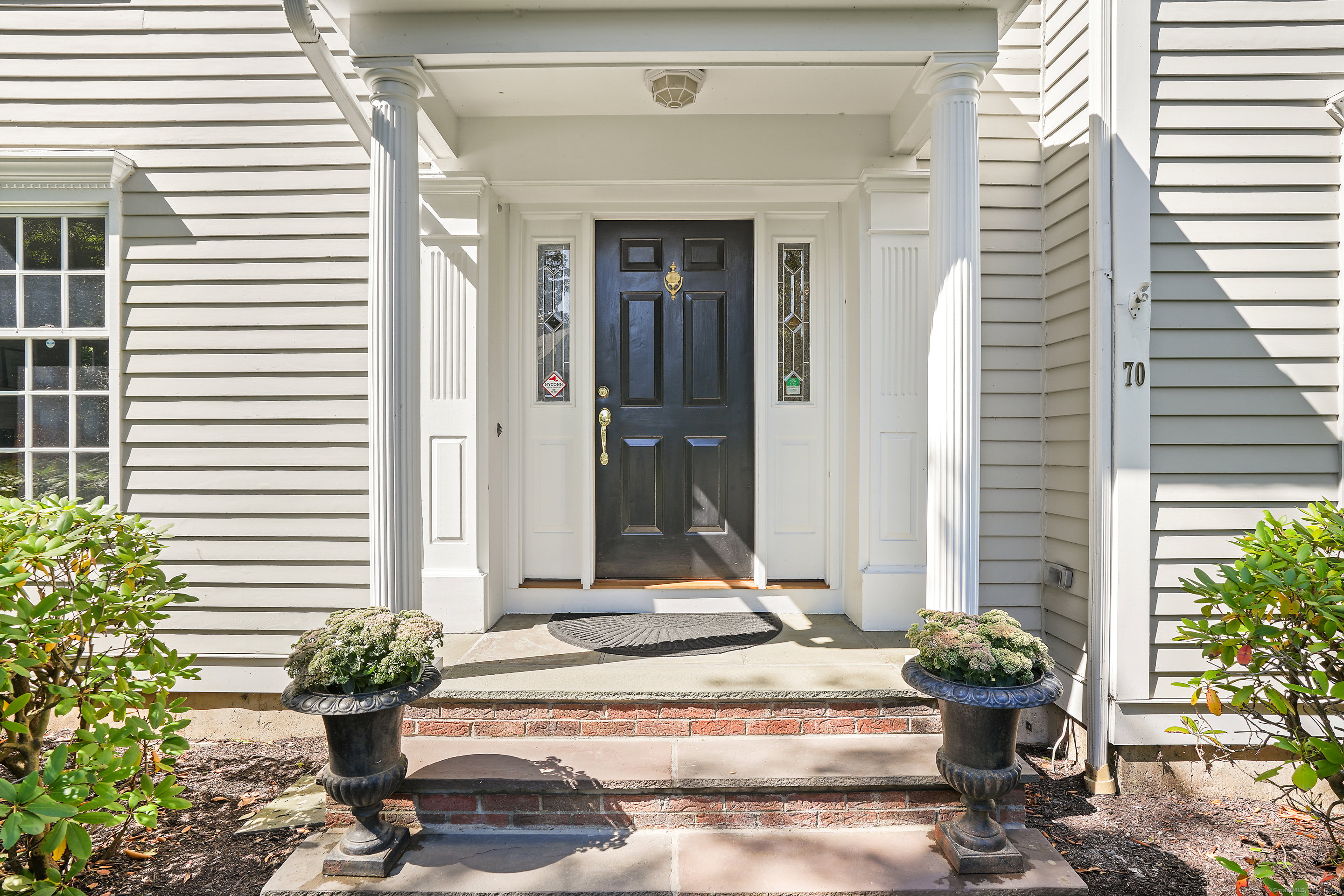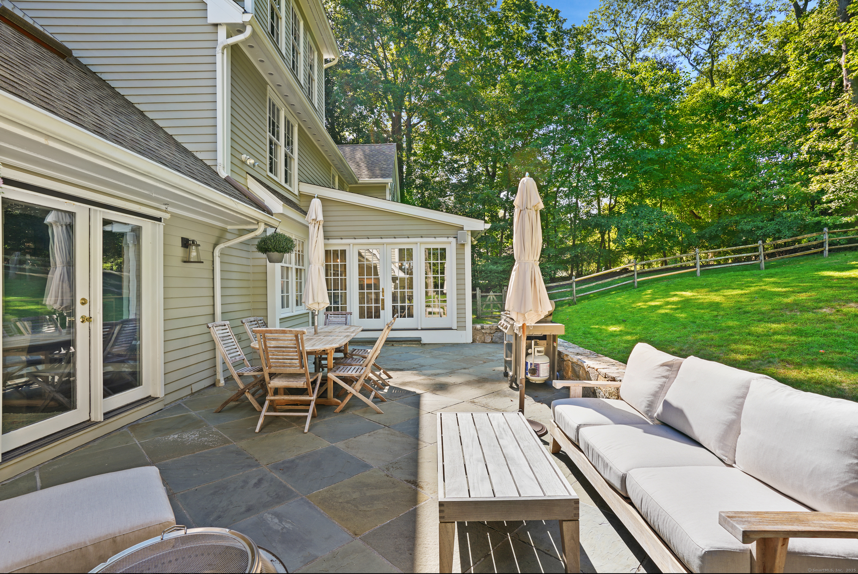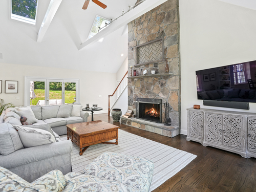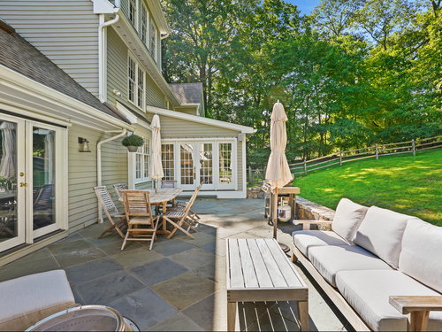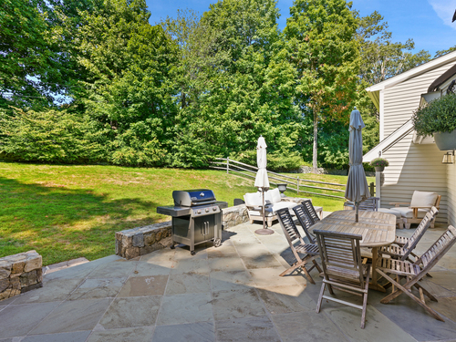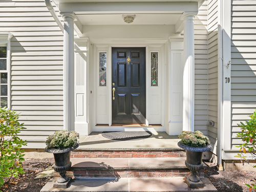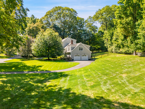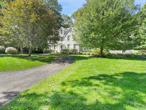 This sophisticated Colonial at 70 Branchville Road offers over 5,000 square feet of beautifully designed living space on 1.34 level acres in the heart of Ridgefield. The home features twelve main rooms across three levels, including formal living and dining rooms, a recently renovated kitchen with high-end appliances opening to a breakfast area and family room with vaulted ceiling and stone fireplace, plus four bedrooms (lives like a 5) and 5.1 bathrooms. Architectural details include extensive millwork, hardwood floors, French doors, and crown molding throughout. The property boasts mature landscaping with specimen plantings, stone walls, a rear terrace perfect for entertaining, and convenient access via two driveways. This exceptional estate combines the tranquility of country living with sophisticated design and modern amenities, creating an ideal sanctuary for both everyday comfort and elegant entertaining. Located within walking distance to Ridgefield's shops, restaurants, and schools, yet just minutes from major commuting routes and Metro-North rail service, it offers the perfect balance of serene privacy and convenient accessibility.