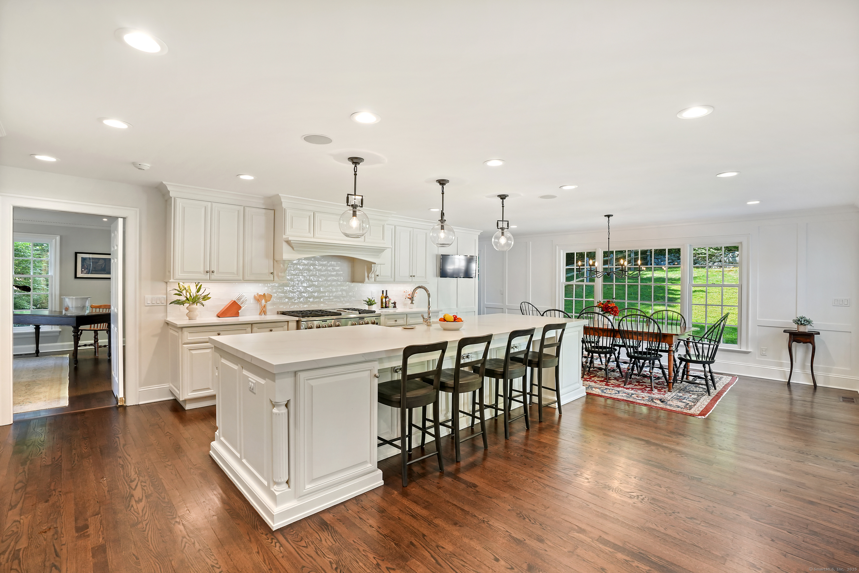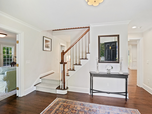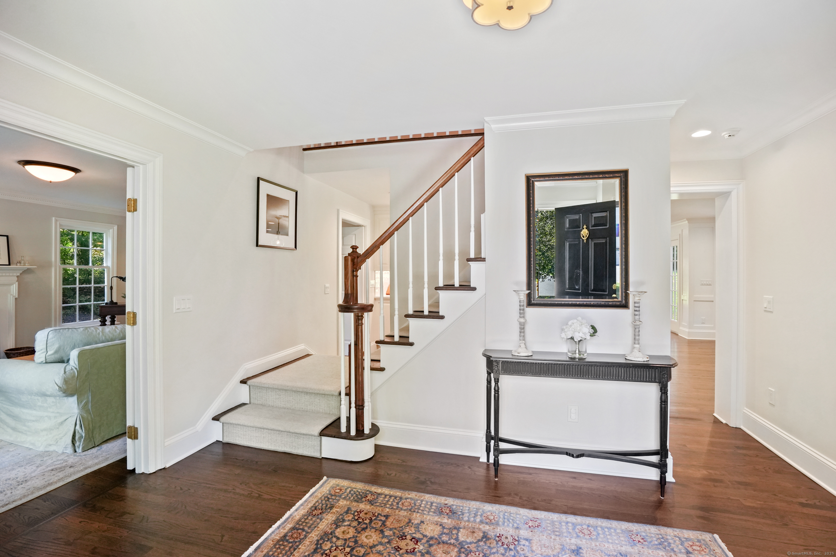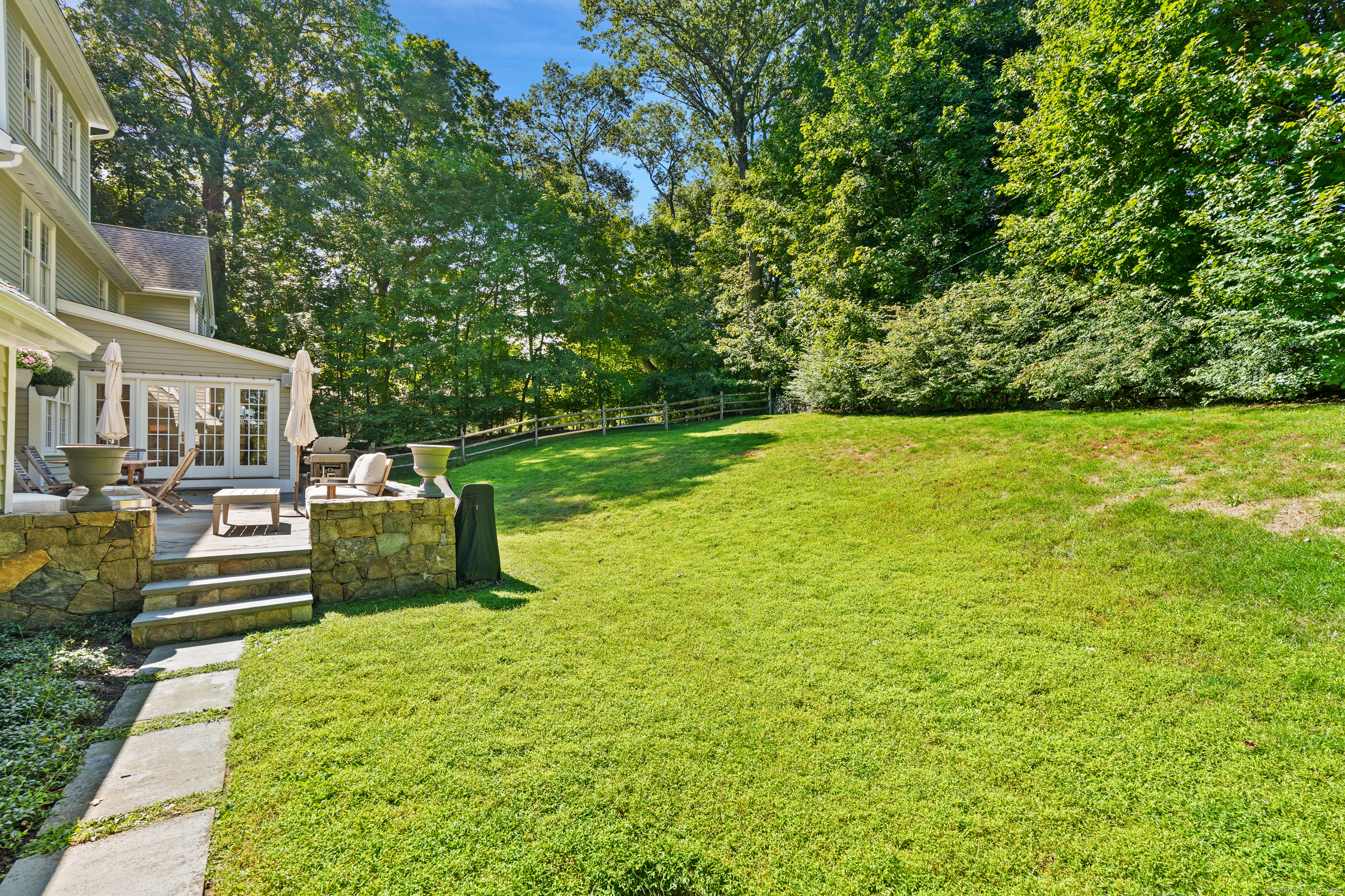 This sophisticated Colonial at 70 Branchville Road offers over 5,000 square feet of beautifully designed living space on 1.34 level acres in the heart of Ridgefield. The home features twelve main rooms across three levels, including formal living and dining rooms, a recently renovated kitchen with high-end appliances opening to a breakfast area and family room with vaulted ceiling and stone fireplace, plus four bedrooms (lives like a 5) and 5.1 bathrooms. Architectural details include extensive millwork, hardwood floors, French doors, and crown molding throughout. The property boasts mature landscaping with specimen plantings, stone walls, a rear terrace perfect for entertaining, and convenient access via two driveways. This exceptional estate combines the tranquility of country living with sophisticated design and modern amenities, creating an ideal sanctuary for both everyday comfort and elegant entertaining. Located within walking distance to Ridgefield's shops, restaurants, and schools, yet just minutes from major commuting routes and Metro-North rail service, it offers the perfect balance of serene privacy and convenient accessibility.