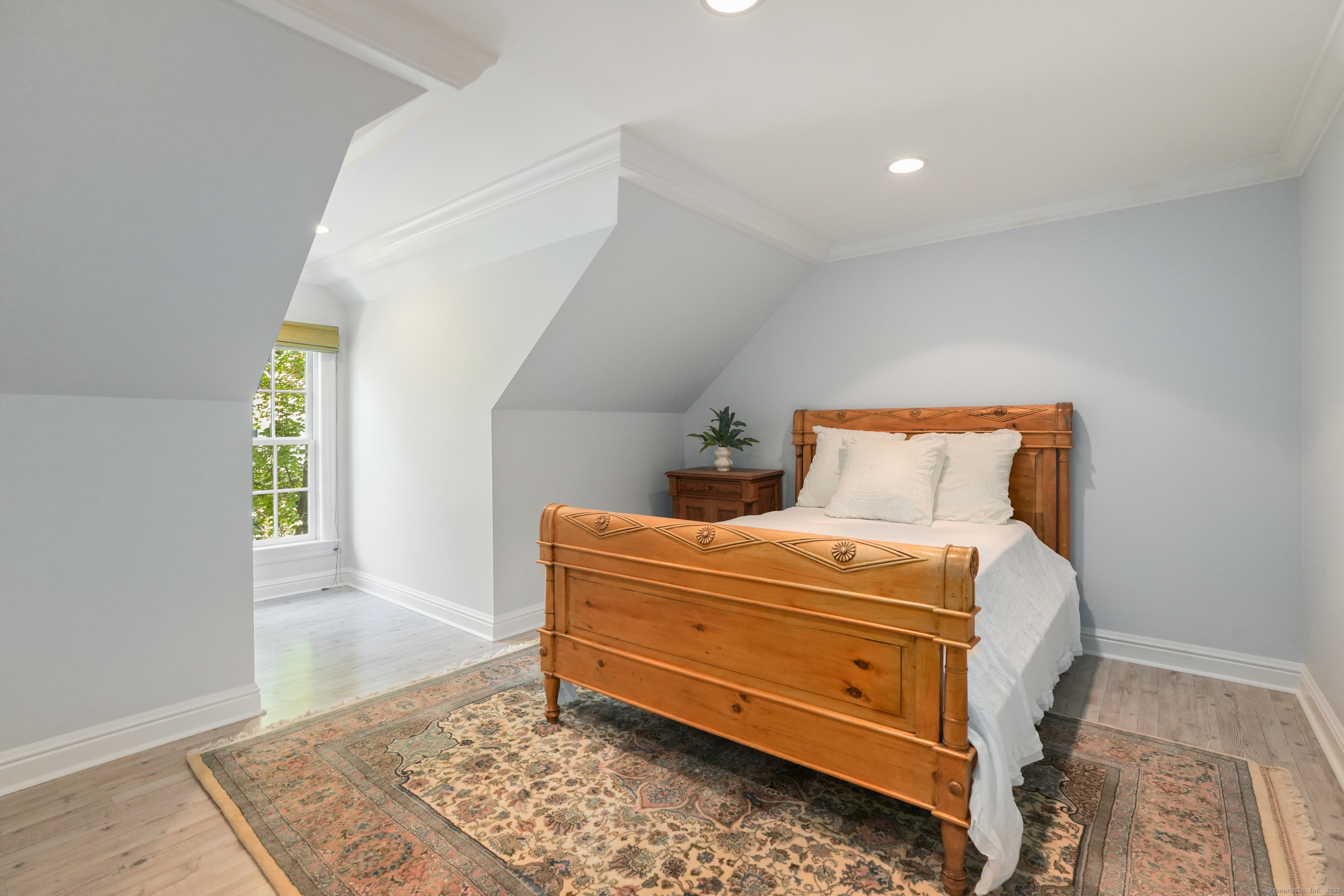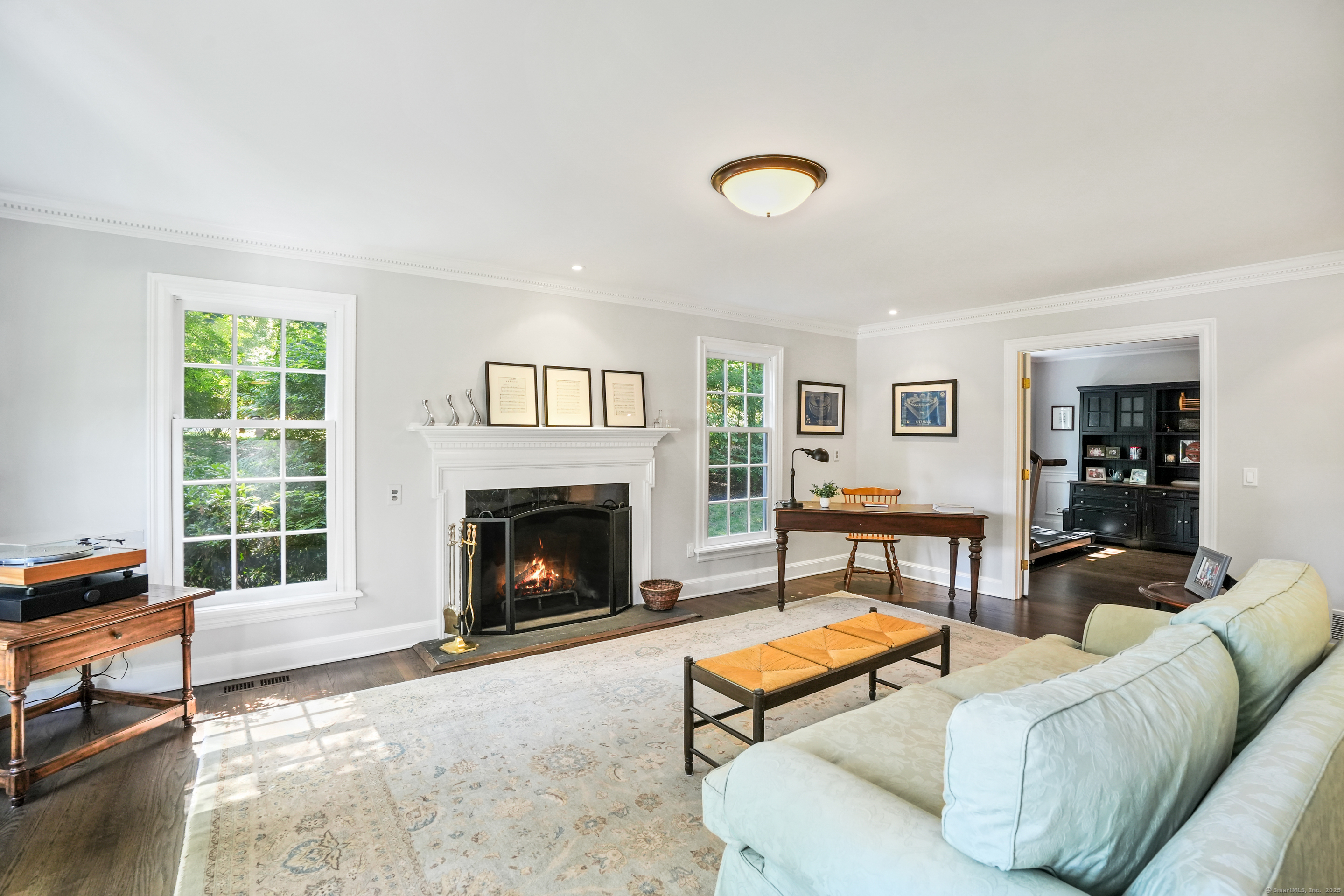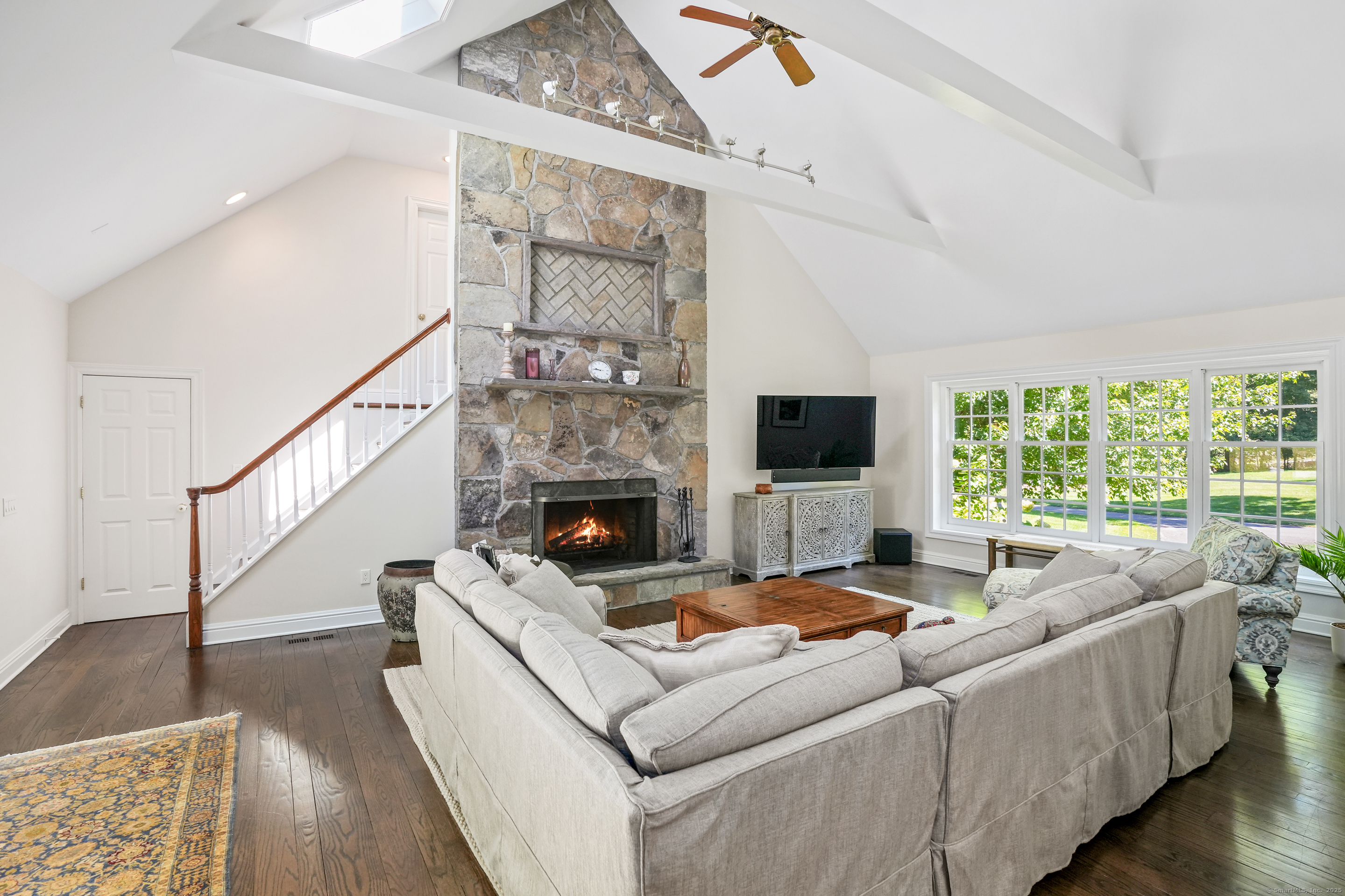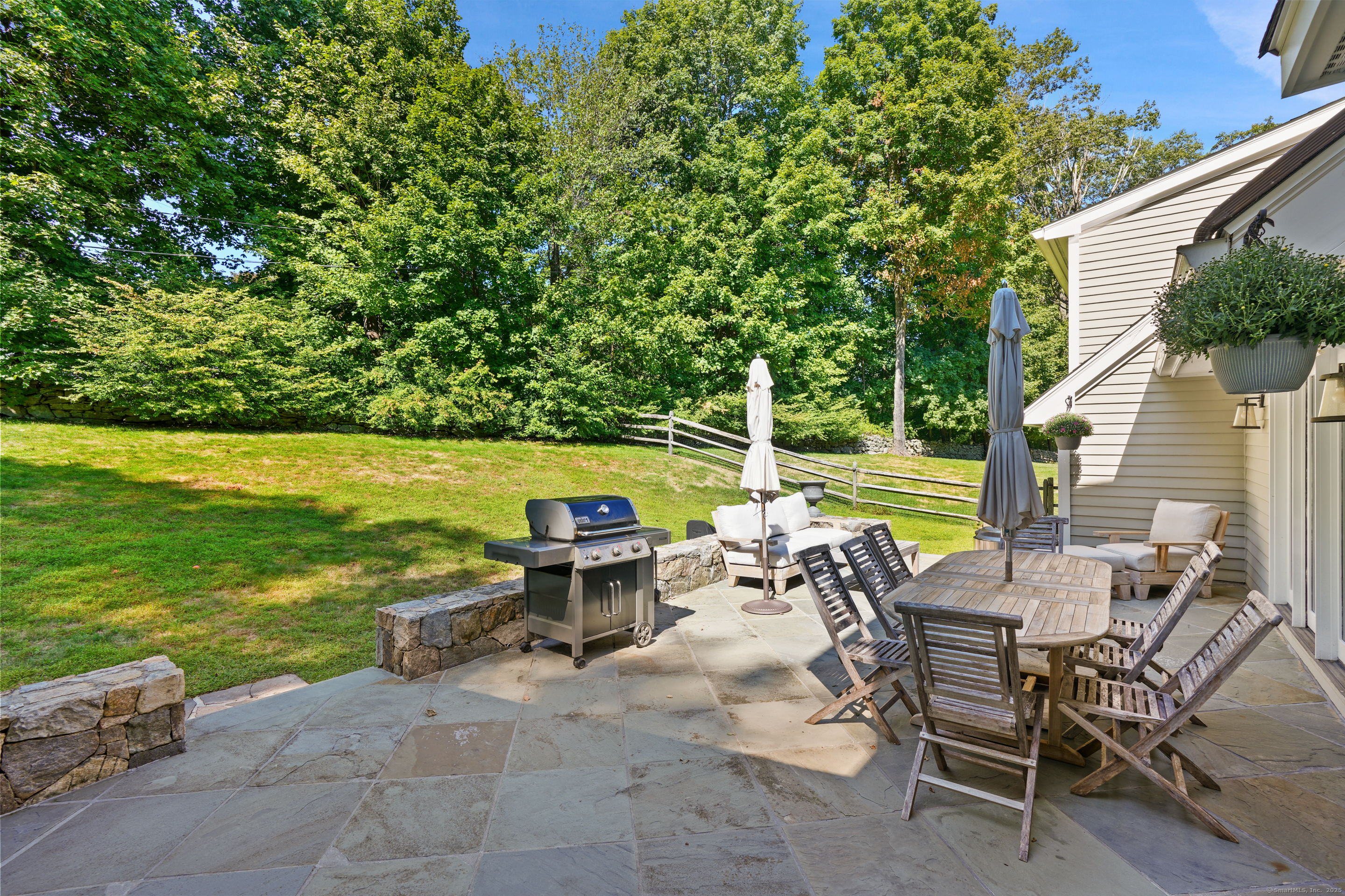 This sophisticated Colonial at 70 Branchville Road offers over 5,000 square feet of beautifully designed living space on 1.34 level acres in the heart of Ridgefield. The home features twelve main rooms across three levels, including formal living and dining rooms, a recently renovated kitchen with high-end appliances opening to a breakfast area and family room with vaulted ceiling and stone fireplace, plus four bedrooms (lives like a 5) and 5.1 bathrooms. Architectural details include extensive millwork, hardwood floors, French doors, and crown molding throughout. The property boasts mature landscaping with specimen plantings, stone walls, a rear terrace perfect for entertaining, and convenient access via two driveways. This exceptional estate combines the tranquility of country living with sophisticated design and modern amenities, creating an ideal sanctuary for both everyday comfort and elegant entertaining. Located within walking distance to Ridgefield's shops, restaurants, and schools, yet just minutes from major commuting routes and Metro-North rail service, it offers the perfect balance of serene privacy and convenient accessibility.
