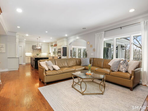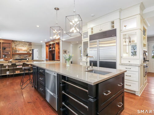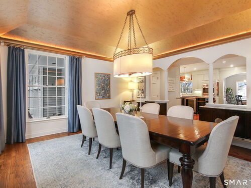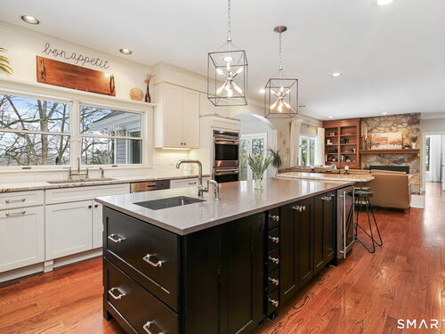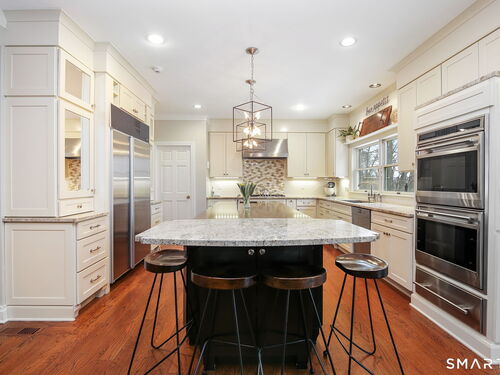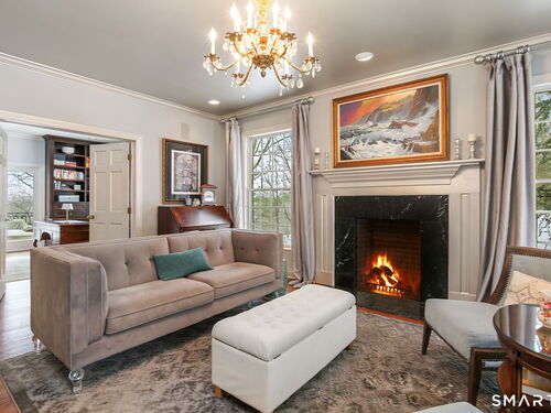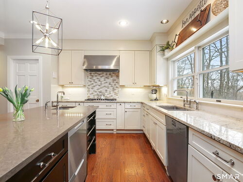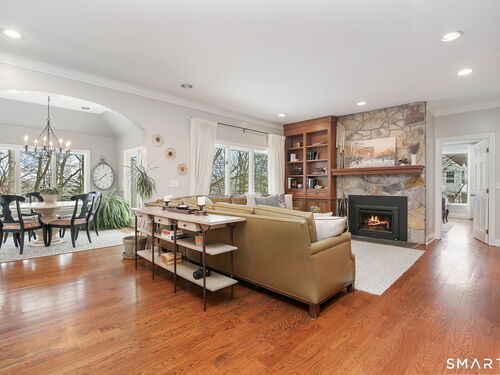 Heming Way is a premier North Stamford cul-de-sac with underground utilities and a quiet, refined setting. This custom-built Colonial offers exceptional space, craftsmanship, and flexibility for today's lifestyle. The chef's kitchen with stainless steel appliances and sun-filled breakfast room opens seamlessly to the expansive family room with stone fireplace, ideal for everyday living and effortless entertaining. A private office with custom built-ins and a full bath on the main level provides flexibility, including potential for a first-floor primary suite. Upstairs, the vaulted primary suite features a spa-inspired bath with heated marble floors and an oversized walk-in closet, plus three additional bedrooms and a private upper level retreat. The finished lower level with custom cherry cabinetry and wet bar extends the entertaining space and flows easily to the backyard. A statement property offering privacy, versatility, and timeless appeal in one of North Stamford's most desirable enclaves.