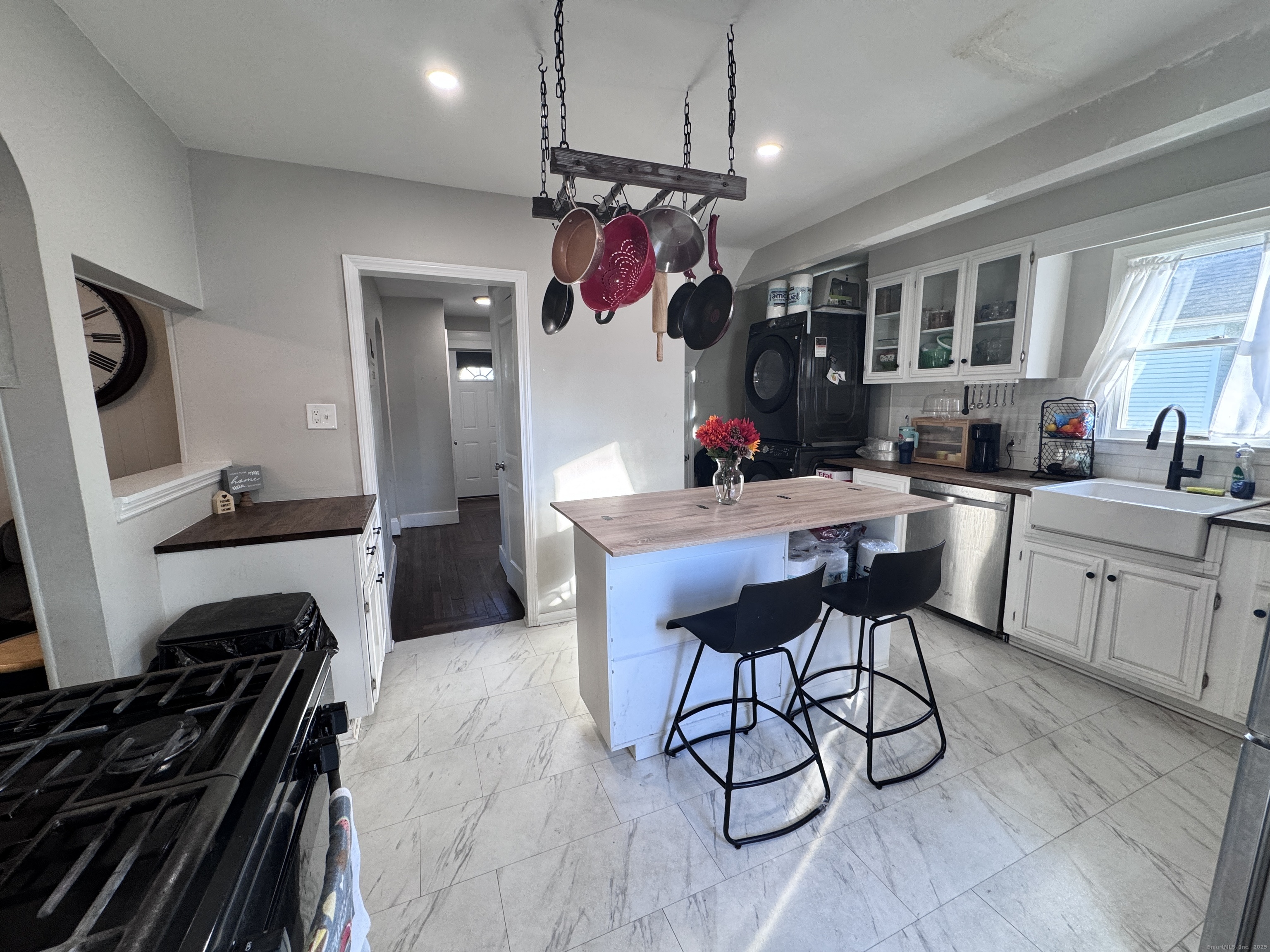 Welcome home to this charming, beautifully updated Colonial! From the moment you step inside, you'll be greeted by a bright, airy atmosphere-perfect for everyday living and effortless entertaining. This inviting 3-bedroom, 1.5-bath home features hardwood floors through-out, recessed lighting, and a stylishly updated kitchen complete with a farm sink, butcher block counters, and stainless steel appliances. Upstairs, you'll find three good sized bedrooms, an updated full bath, and a convenient pull-down attic for extra storage. There's also a full basement, offering even more storage or potential future use. Outside, the level fenced backyard is ideal for relaxing, playing, or hosting, it's all in a great location you're sure to love. Move right in and enjoy!