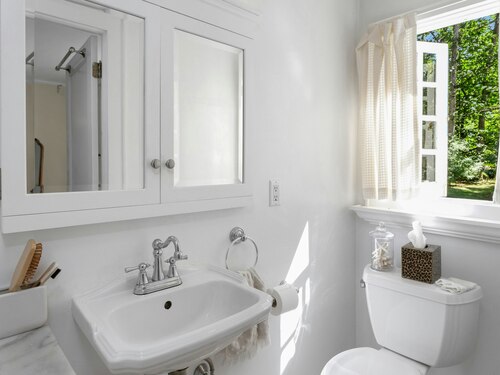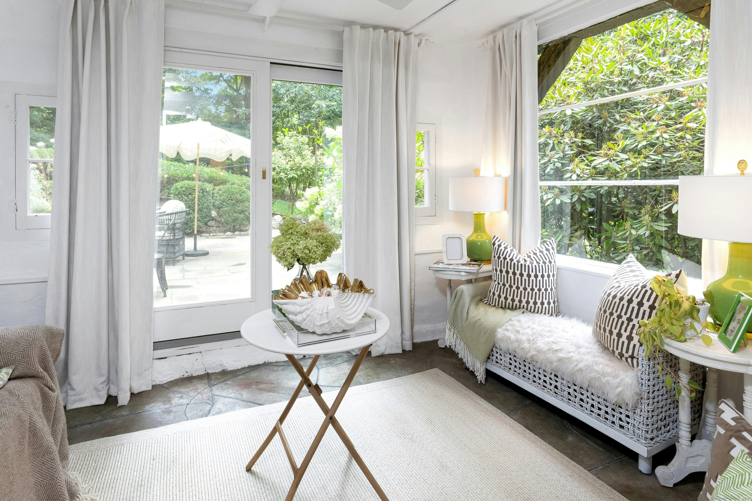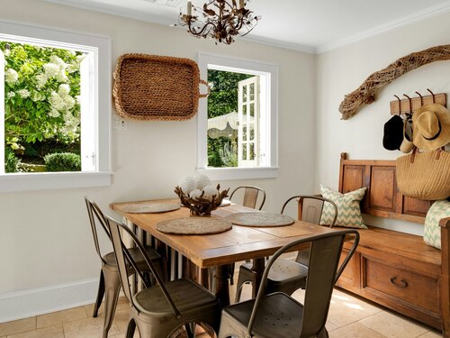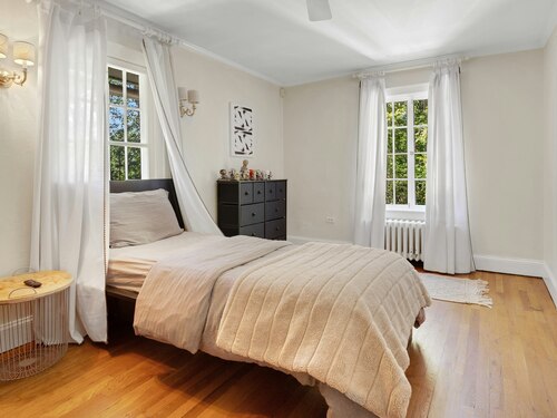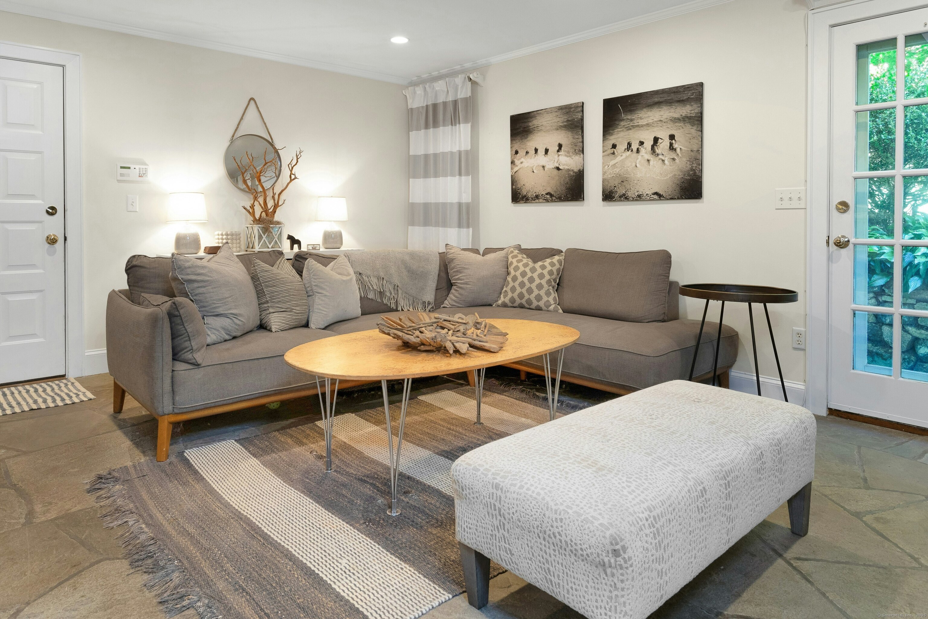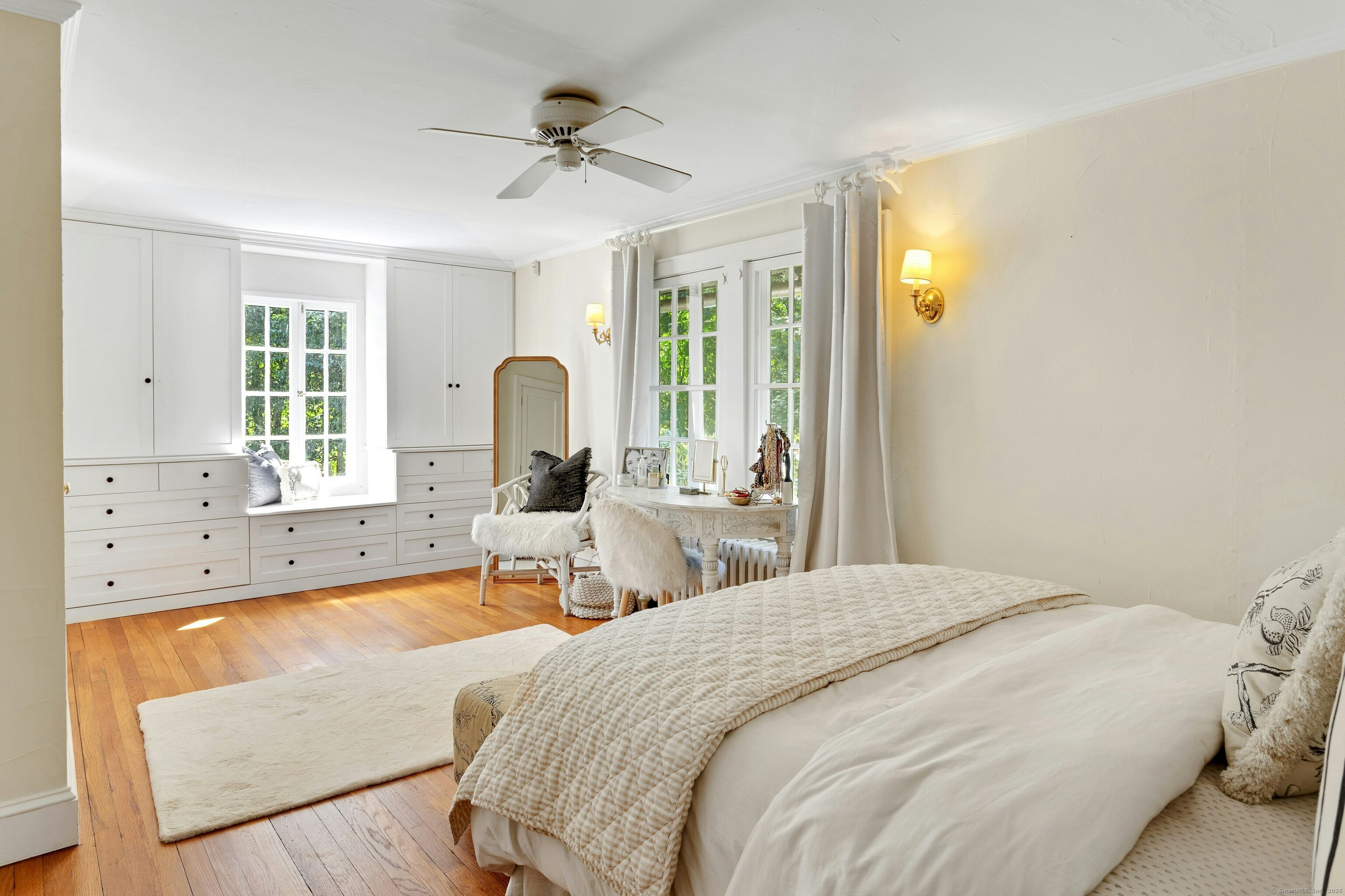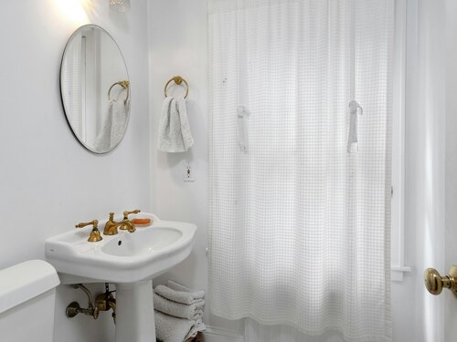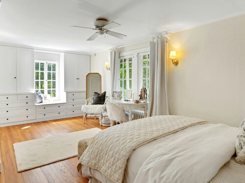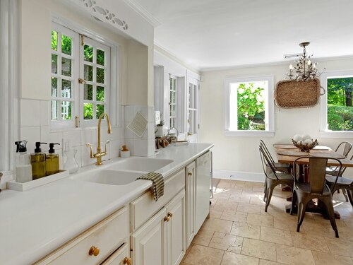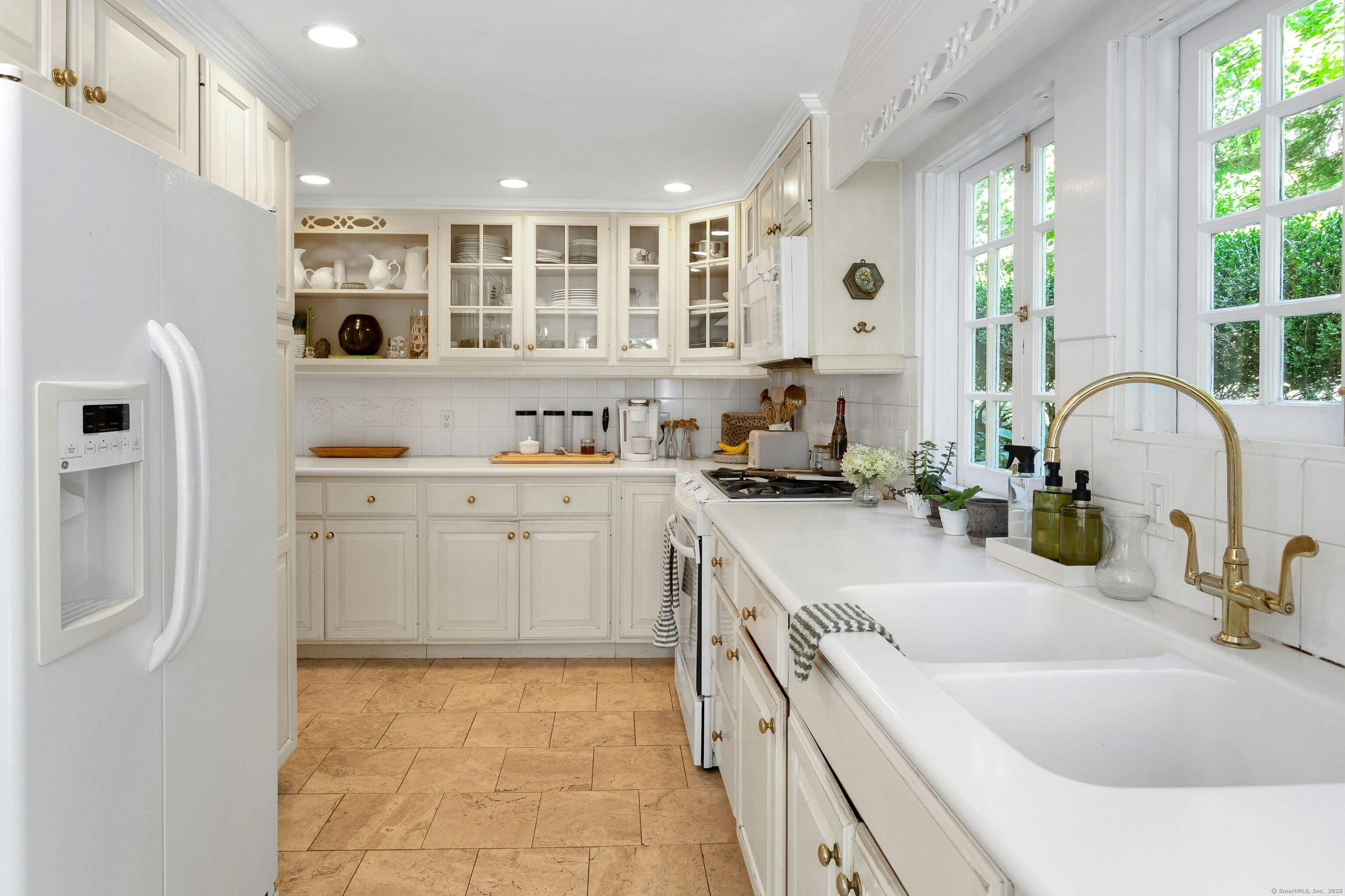 Darien Beach rights and New Canaan Schools make this a very special offering! Storybook charm greets you at this one-of-a-kind, vintage Tudor home, set back from the road on landscaped property with lovely private terrace and lawns. Natural gas and town water and sewer are a definite plus for easy maintenance. A parcel of acreage is in Darien, offering the unique option of full access to beaches and boat launch. Timbered beam construction is authentic to the original structure and creates a fairytale ambiance throughout. Thoughtful updates provide the comforts of today's living without sacrificing the essence of a Tudor style including wide plank hardwood floors and original hardware. The great room with vaulted ceiling, stone hearth and wraparound balcony is the captivating focal point w/open access to family and dining rooms and the delightful porch off the terrace. An office and four en-suite bedrooms, including one on the main floor and one with walk out access to a large deck over the garage allows for versatile options. Manicured lawns and gardens surround the bluestone terrace for gracious entertaining and cul de sac access from the side lawn is perfect for bike riding or pet walking. Minutes to New Canaan schools and village, Talmadge Hill train and Pkwy, as well as a short drive to the beaches in Darien. A truly wonderful location to call home!