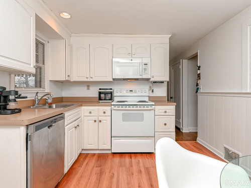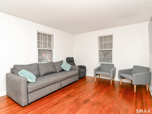 Welcome to 74 Hollywood Avenue, located in Bridgeport's desirable North End neighborhood. This well-maintained Cape-style home features a spacious living room, an eat-in kitchen, four bedrooms, one full bath, and a partially finished basement. The primary and secondary bedrooms are conveniently located on the main level with wall-to-wall carpeting, while two additional bedrooms on the upper level feature hardwood flooring. The living room also offers hardwood floors. The main-level full bathroom includes tiled flooring, a new vanity, and updated lighting. The basement provides additional potential and includes the laundry area. Parking is plentiful with an attached two-car garage equipped with electric openers, plus space for four additional vehicles in the driveway. The partial private fenced backyard offers added privacy and is perfect for summer enjoyment. The home is also located along the Greater Bridgeport public transportation bus route. Please review agent remarks before submitting an offer.