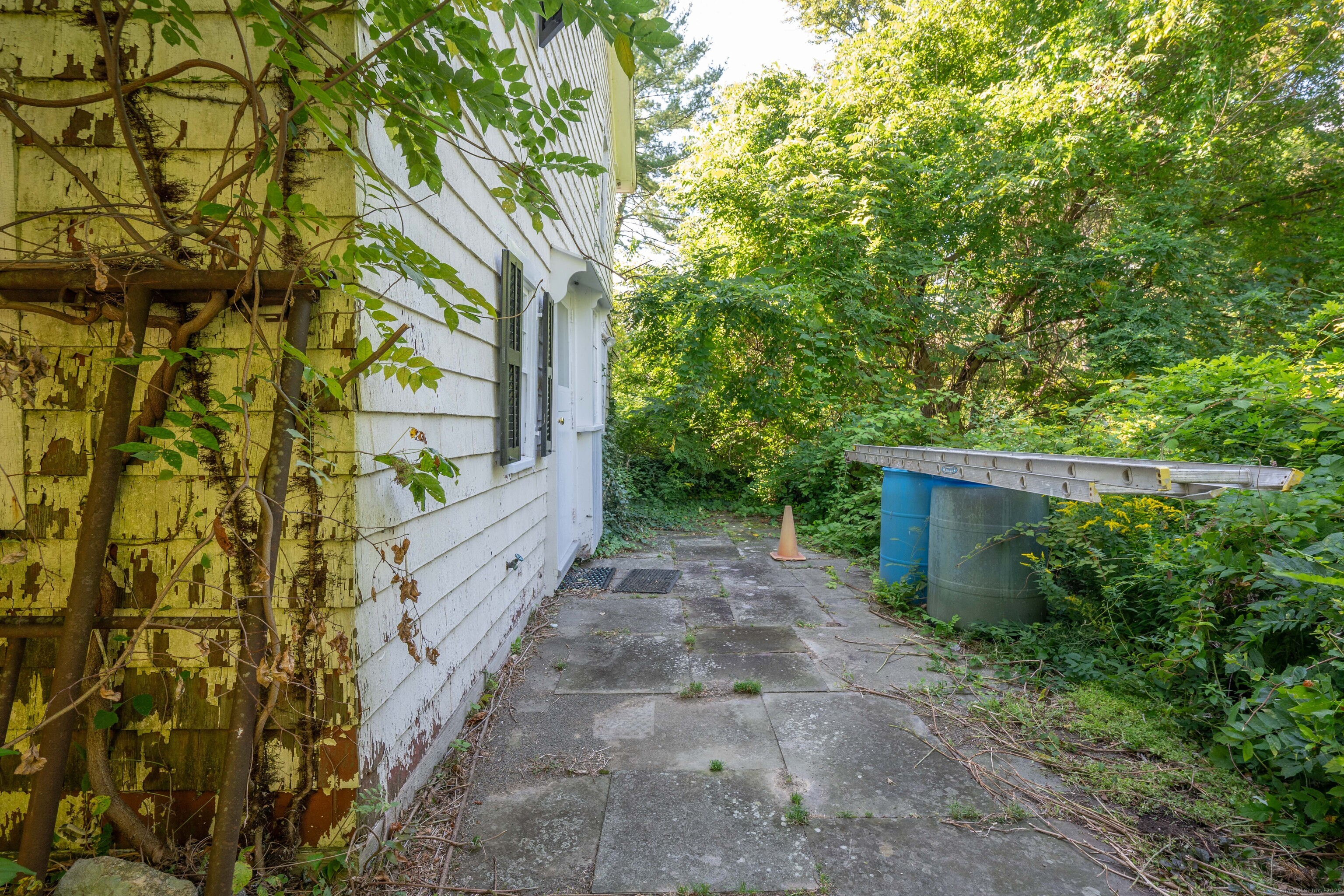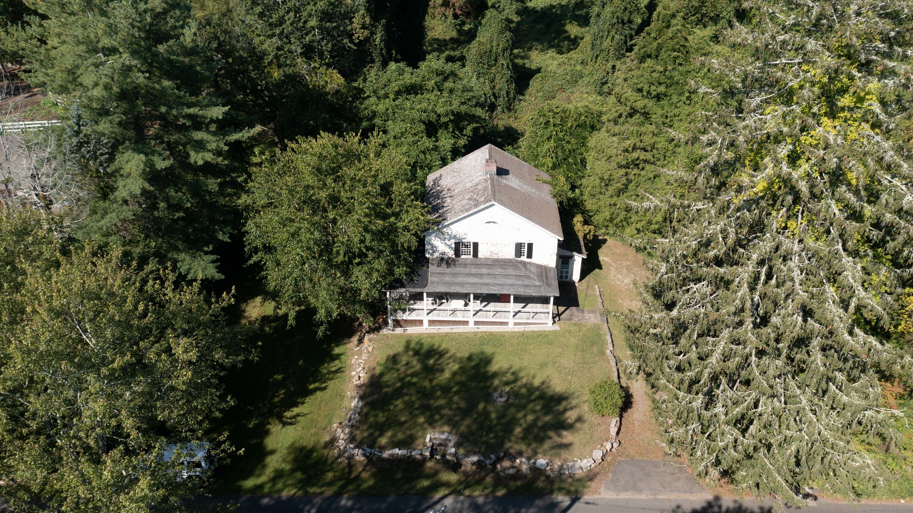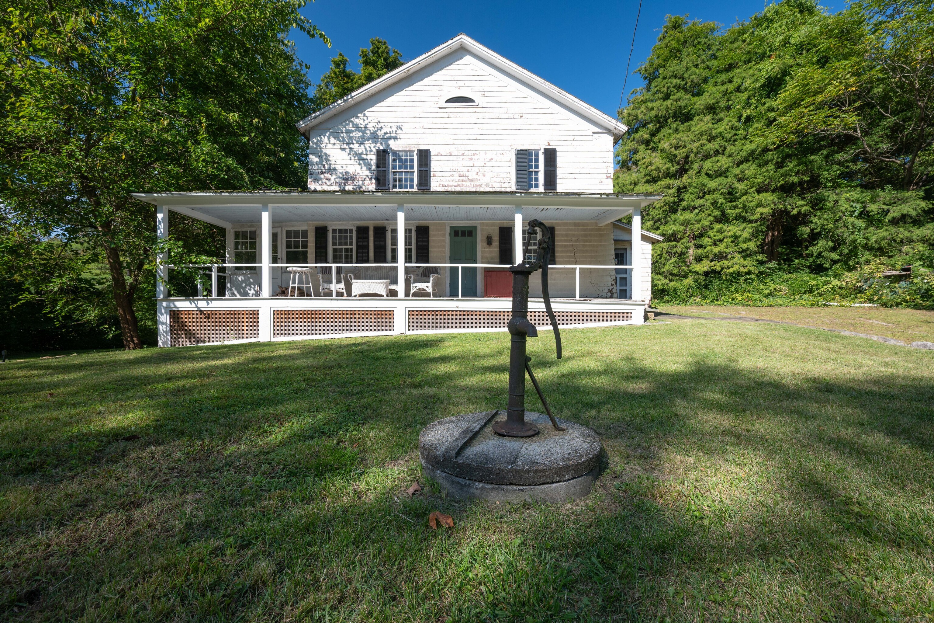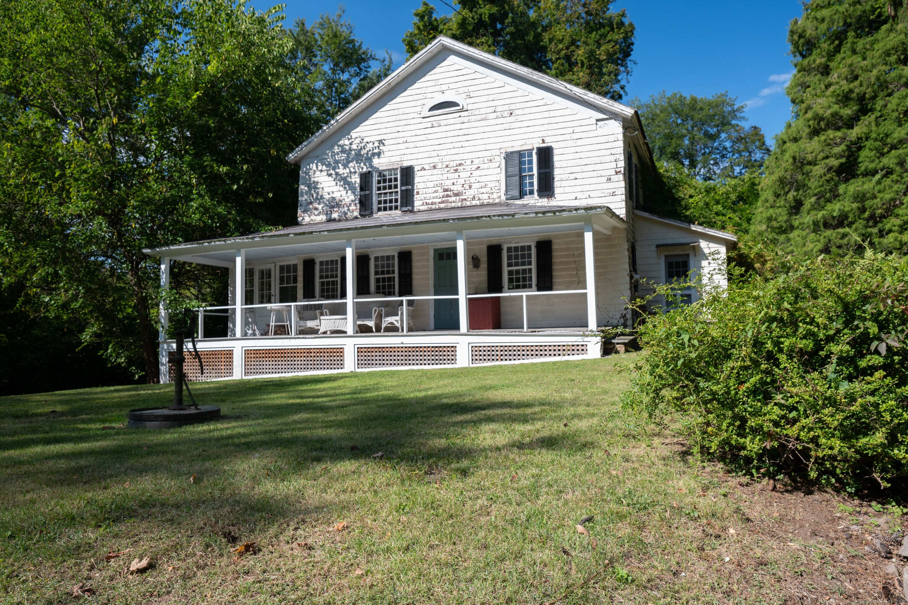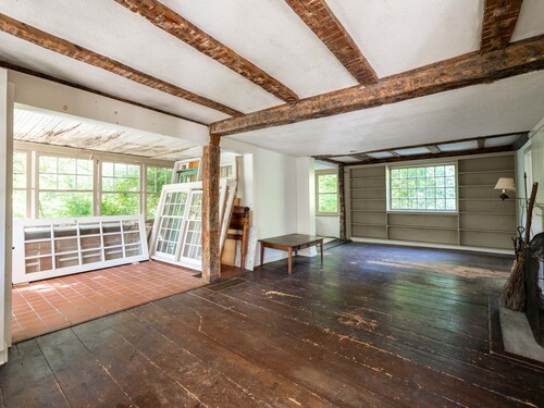 A unique chance to own a piece of history in an unbeatable location! Built in 1825, this special bicentennial gem offers nearly 2 acres of mature trees and hidden meadows, bordered by protected land and equestrian property. Endless potential for renovation or start fresh as a new build, with a 4 bedroom septic system and preserved antique features like original wide plank flooring, exposed wood beams, fireplaces, built-ins, trim and more. The main level has formal living and dining rooms, with two bonus sunrooms on the side, a galley kitchen with full pantry and mudroom entry off of the driveway. There are 3-4 bedrooms upstairs with a full bathroom and access to the 750 square foot walk-up attic, offering extra space for storage or future expansion. The full basement also offers additional space for storage. The large front porch overlooks the scenic front yard and the Bethel Land Trust Wolfpit Nature Preserve, for protected views and year-round privacy. Out back you'll find a stone patio and there is also a detached garage with plans for a finished space above. Ideally located close to numerous major routes for an easy down county commute and convenient to both the Bethel and Redding train stations. Only 90 minutes to NYC and just minutes to Downtown Bethel's quaint shops, restaurants and community activities. A very special property for the full time resident or as a weekend getaway!