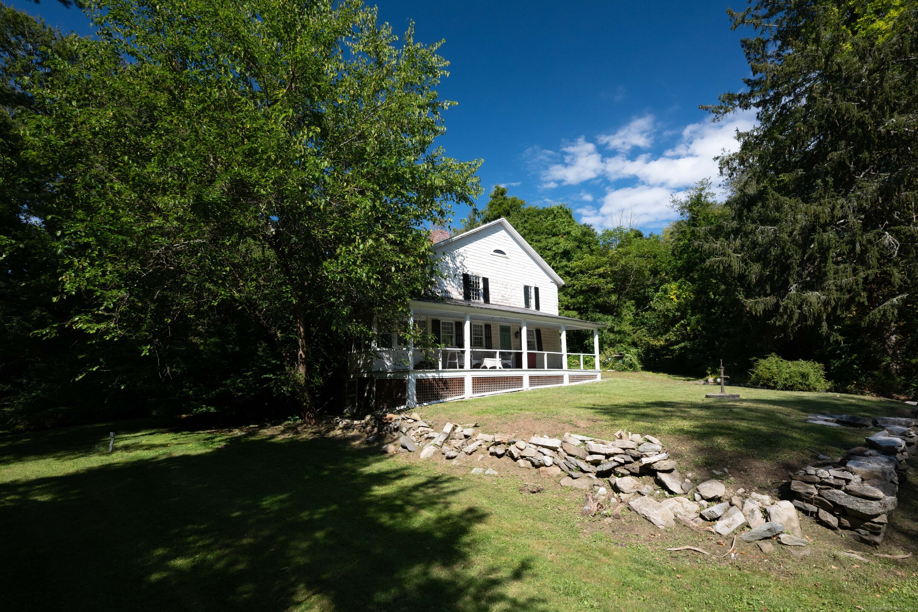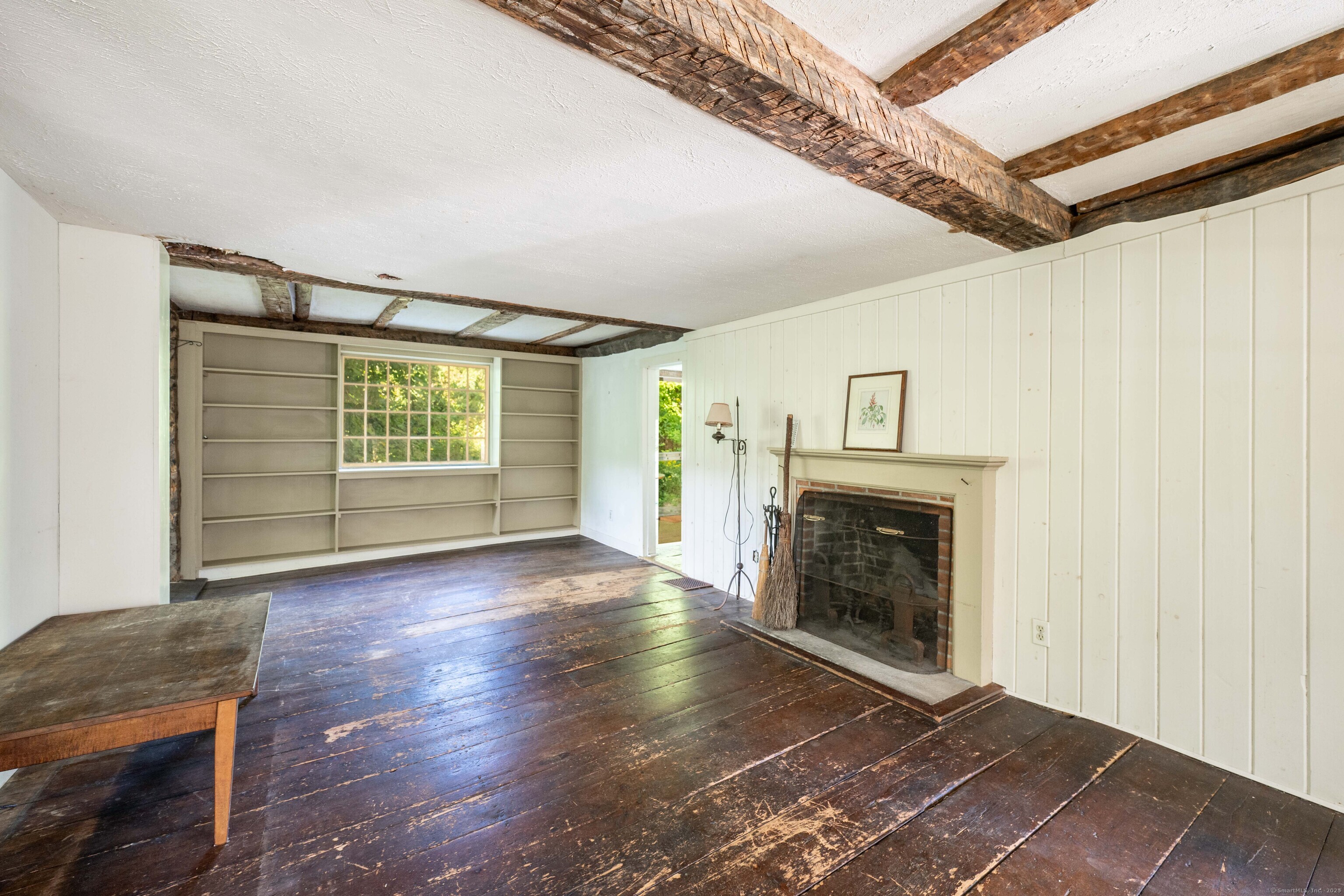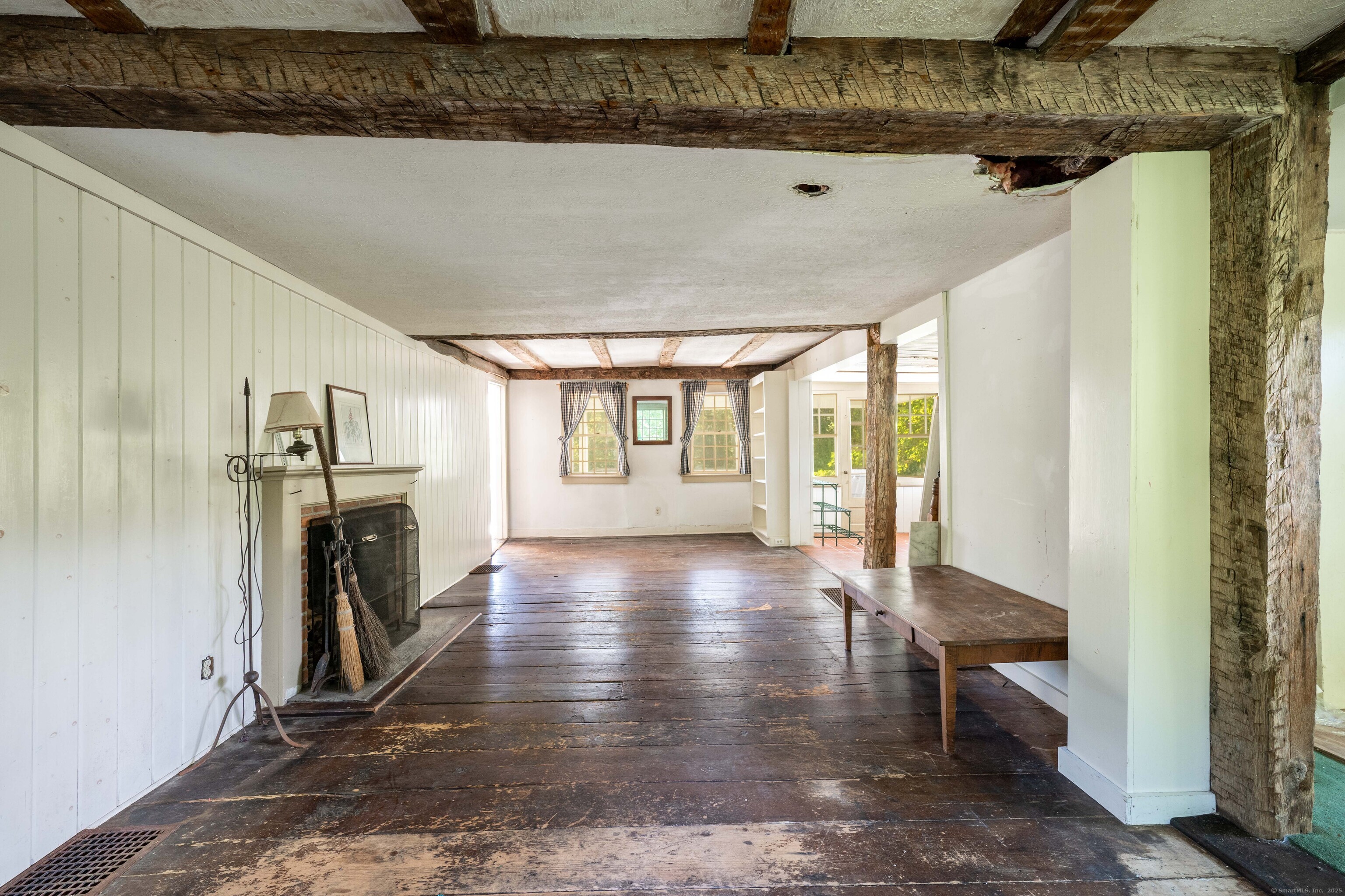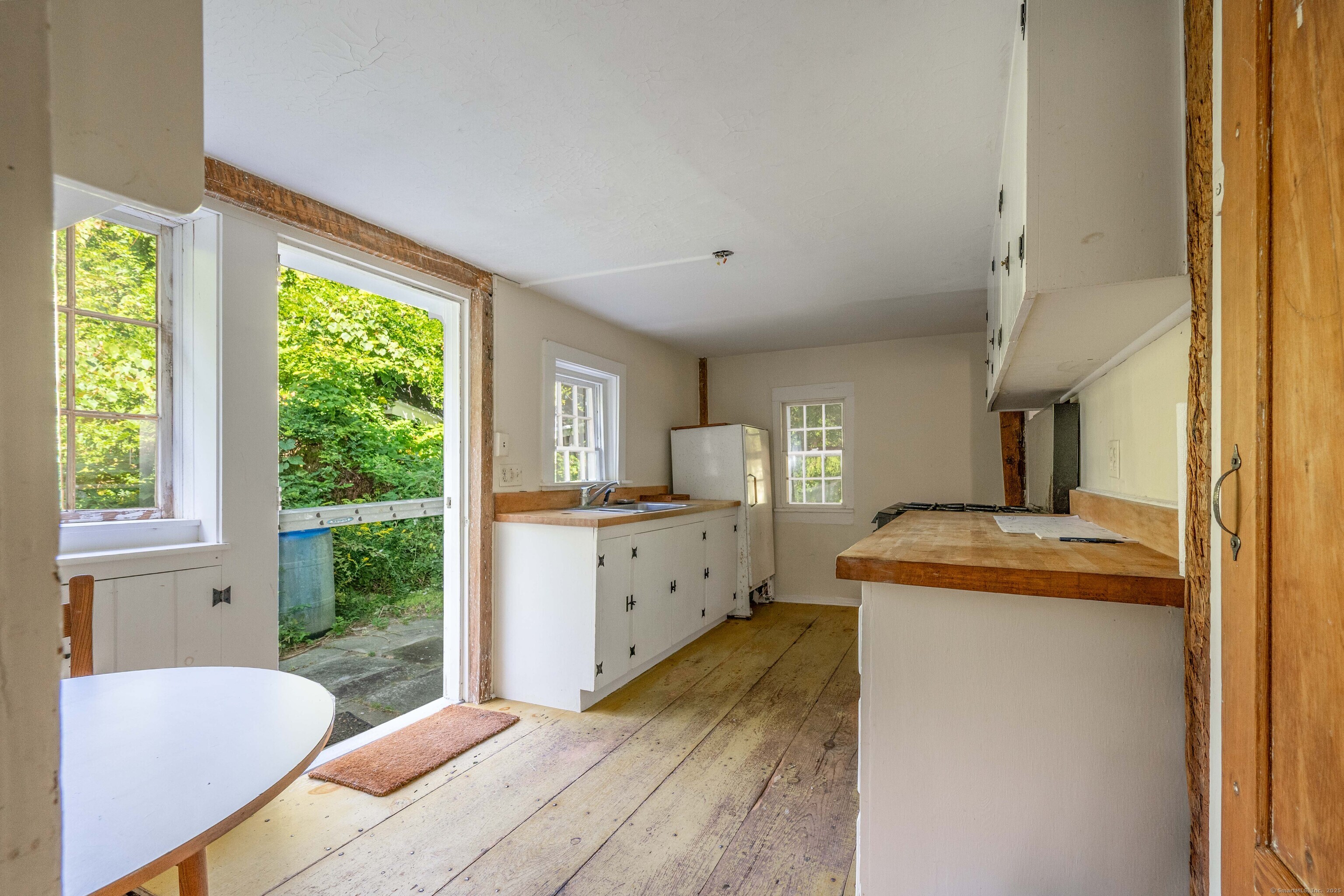 A unique chance to own a piece of history in an unbeatable location! Built in 1825, this special bicentennial gem offers nearly 2 acres of mature trees and hidden meadows, bordered by protected land and equestrian property. Endless potential for renovation or start fresh as a new build, with a 4 bedroom septic system and preserved antique features like original wide plank flooring, exposed wood beams, fireplaces, built-ins, trim and more. The main level has formal living and dining rooms, with two bonus sunrooms on the side, a galley kitchen with full pantry and mudroom entry off of the driveway. There are 3-4 bedrooms upstairs with a full bathroom and access to the 750 square foot walk-up attic, offering extra space for storage or future expansion. The full basement also offers additional space for storage. The large front porch overlooks the scenic front yard and the Bethel Land Trust Wolfpit Nature Preserve, for protected views and year-round privacy. Out back you'll find a stone patio and there is also a detached garage with plans for a finished space above. Ideally located close to numerous major routes for an easy down county commute and convenient to both the Bethel and Redding train stations. Only 90 minutes to NYC and just minutes to Downtown Bethel's quaint shops, restaurants and community activities. A very special property for the full time resident or as a weekend getaway!