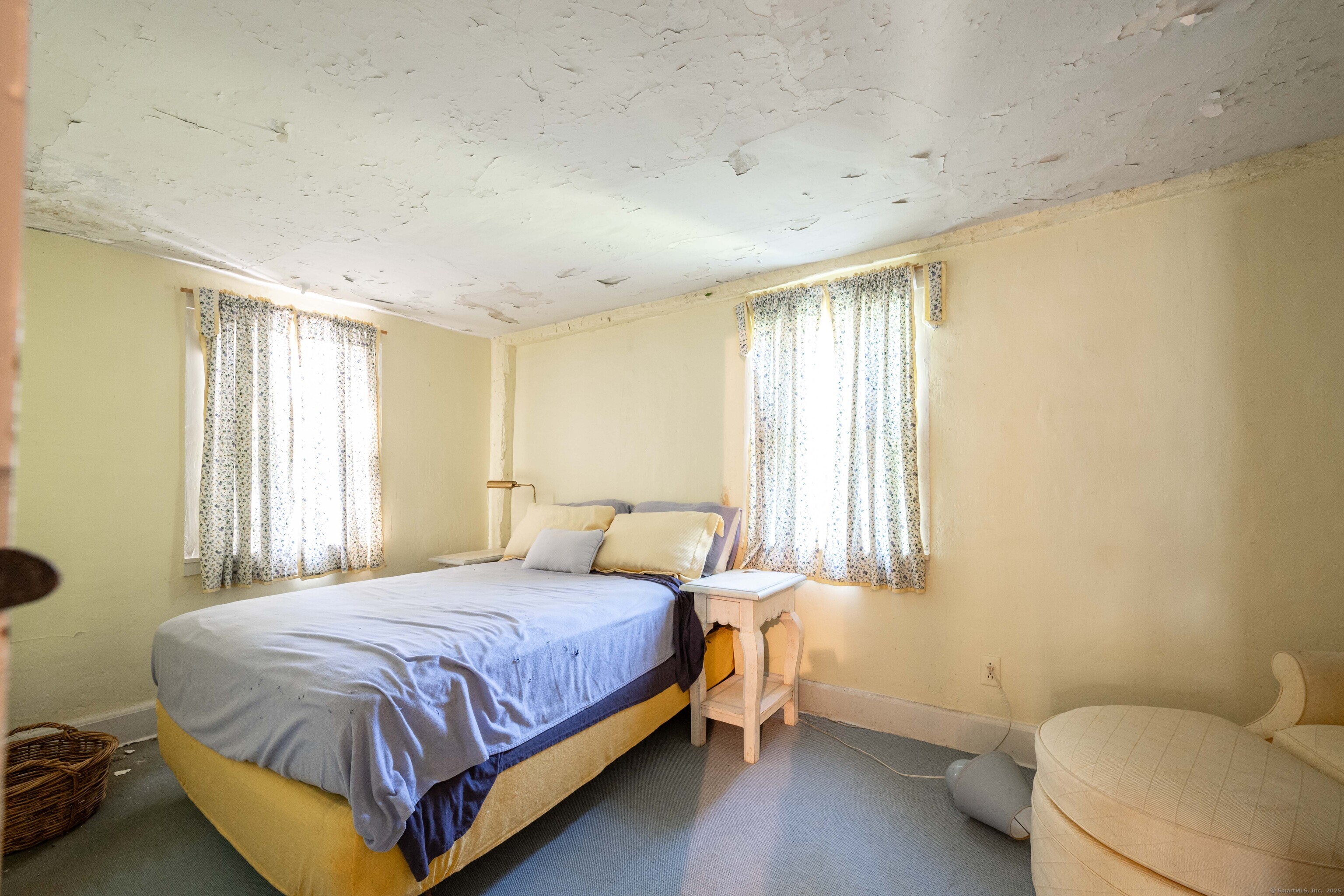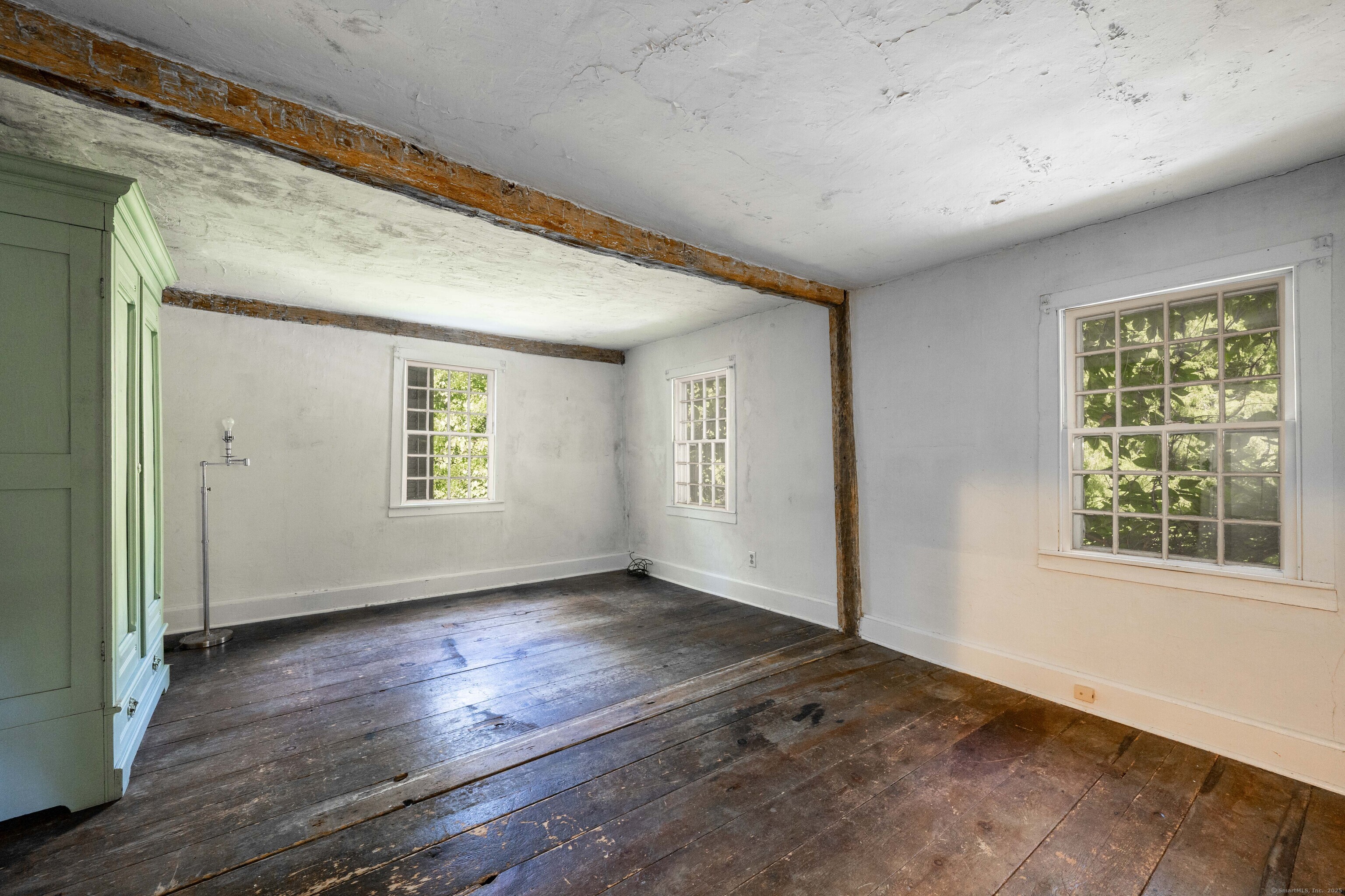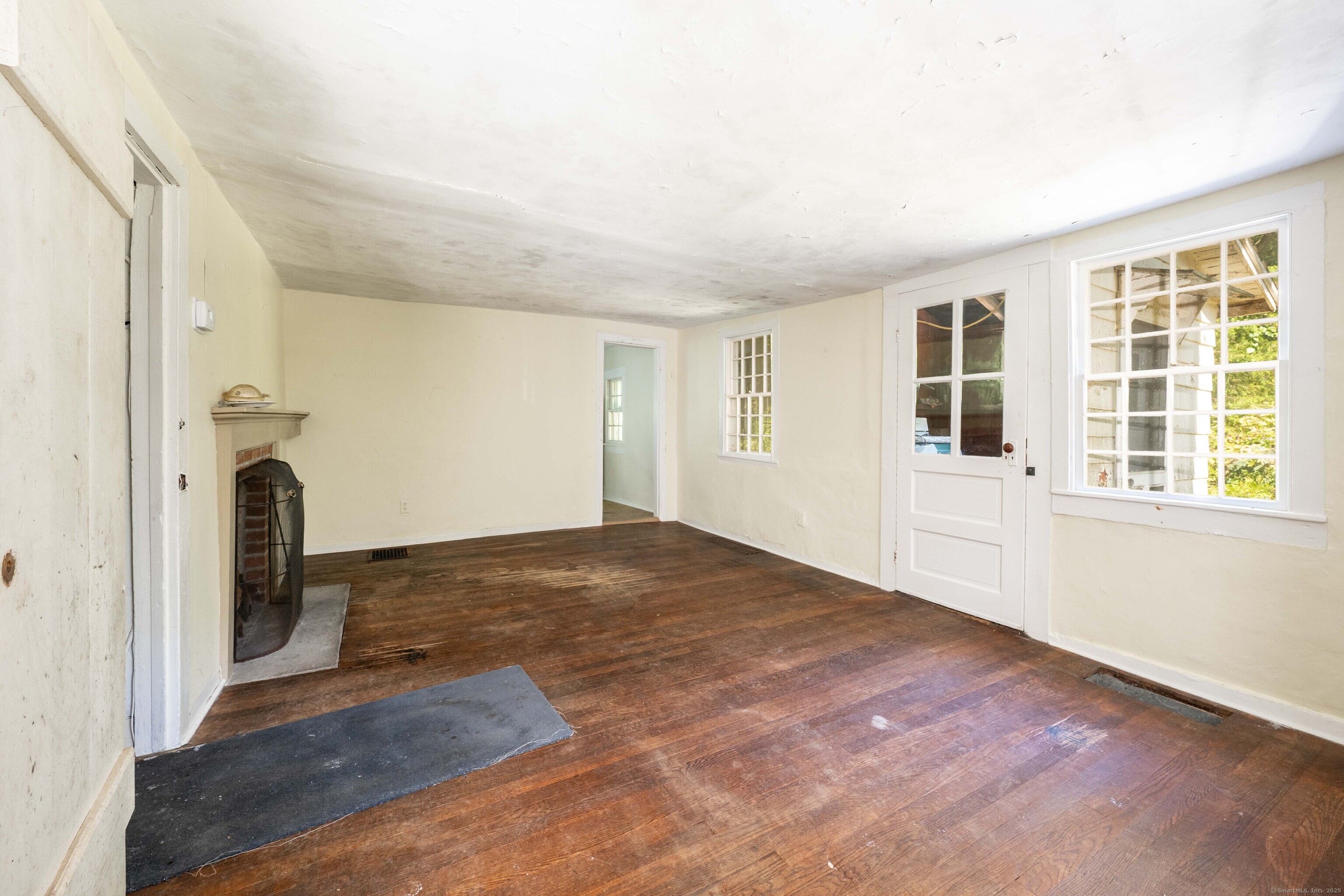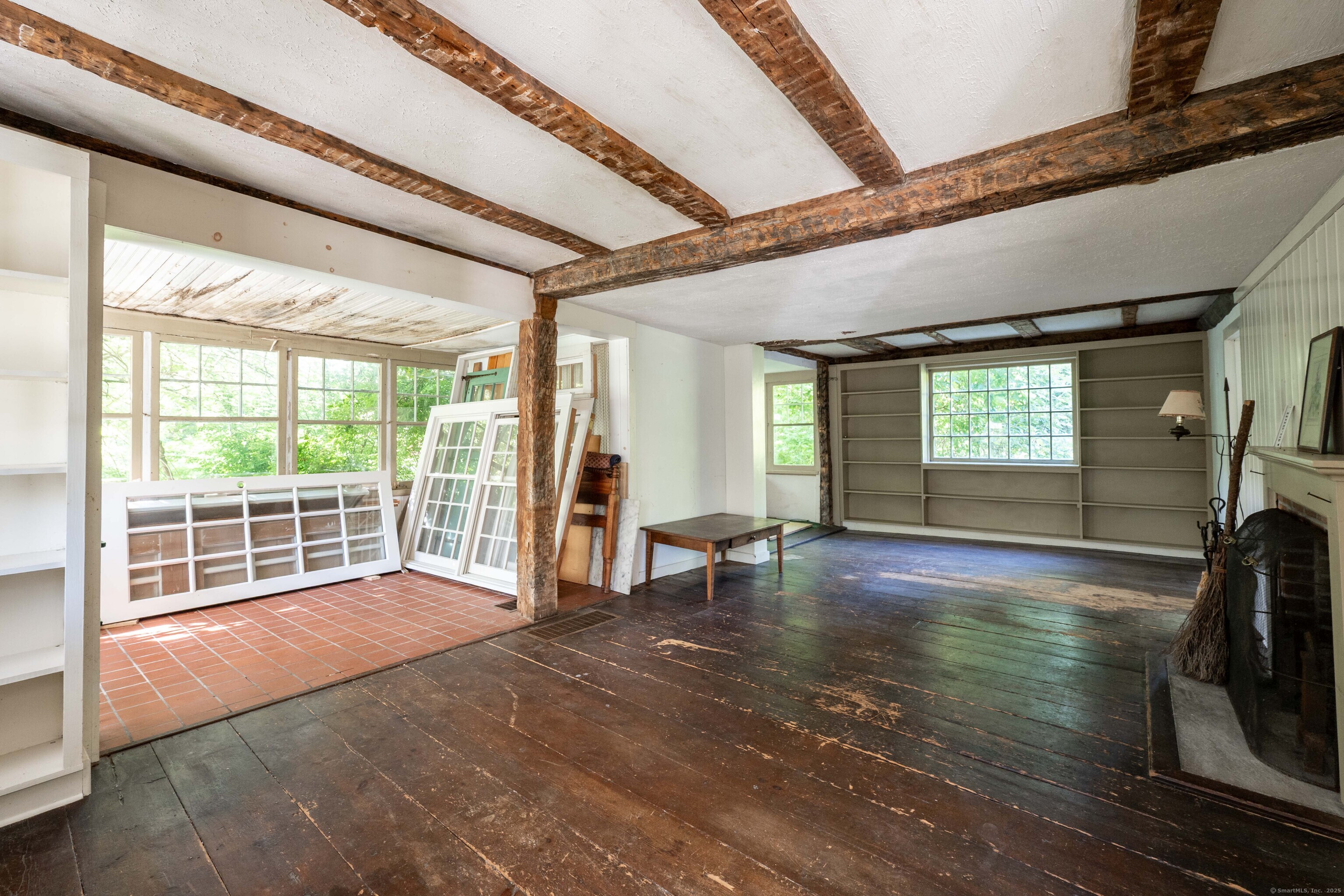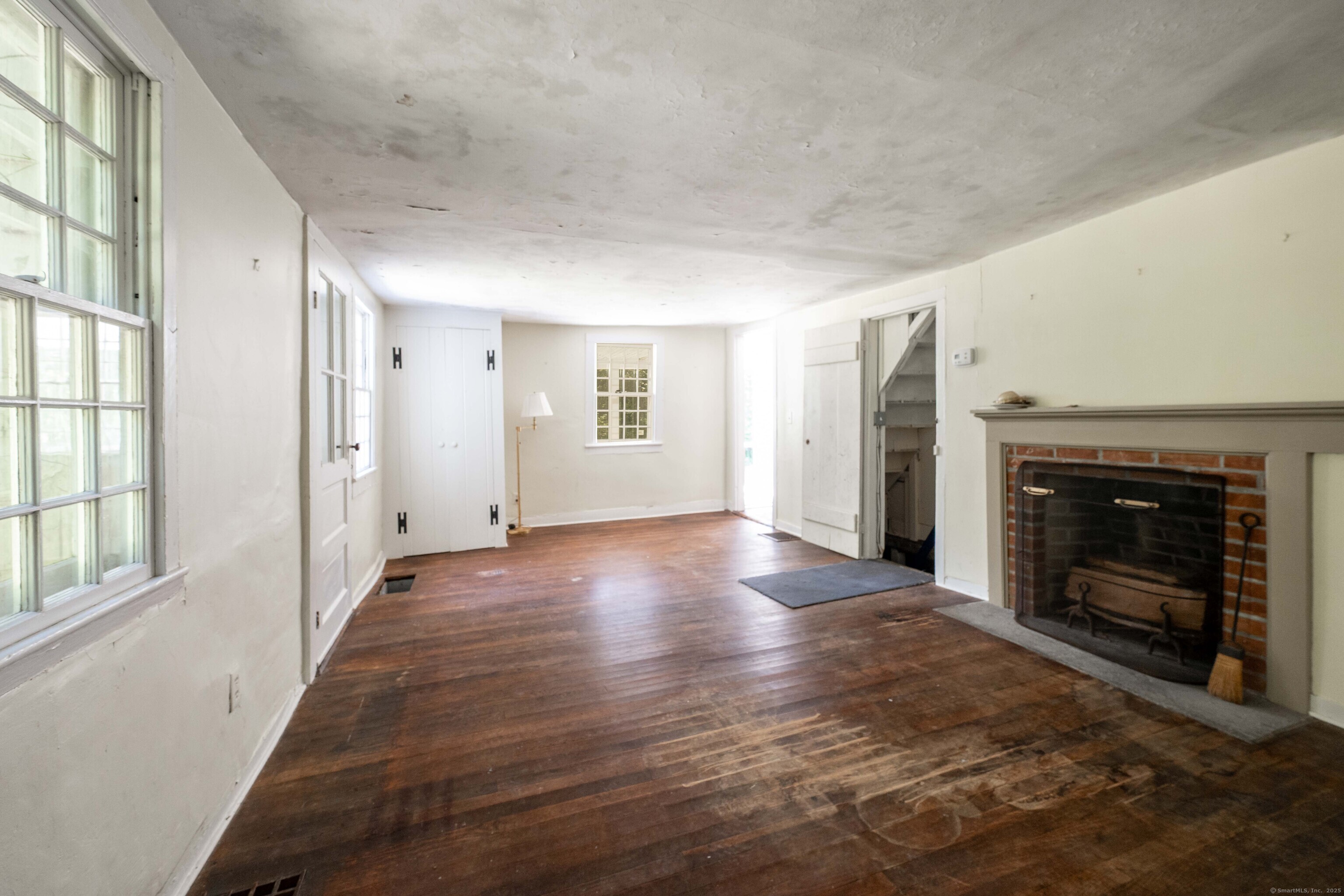 A unique chance to own a piece of history in an unbeatable location! Built in 1825, this special bicentennial gem offers nearly 2 acres of mature trees and hidden meadows, bordered by protected land and equestrian property. Endless potential for renovation or start fresh as a new build, with a 4 bedroom septic system and preserved antique features like original wide plank flooring, exposed wood beams, fireplaces, built-ins, trim and more. The main level has formal living and dining rooms, with two bonus sunrooms on the side, a galley kitchen with full pantry and mudroom entry off of the driveway. There are 3-4 bedrooms upstairs with a full bathroom and access to the 750 square foot walk-up attic, offering extra space for storage or future expansion. The full basement also offers additional space for storage. The large front porch overlooks the scenic front yard and the Bethel Land Trust Wolfpit Nature Preserve, for protected views and year-round privacy. Out back you'll find a stone patio and there is also a detached garage with plans for a finished space above. Ideally located close to numerous major routes for an easy down county commute and convenient to both the Bethel and Redding train stations. Only 90 minutes to NYC and just minutes to Downtown Bethel's quaint shops, restaurants and community activities. A very special property for the full time resident or as a weekend getaway!