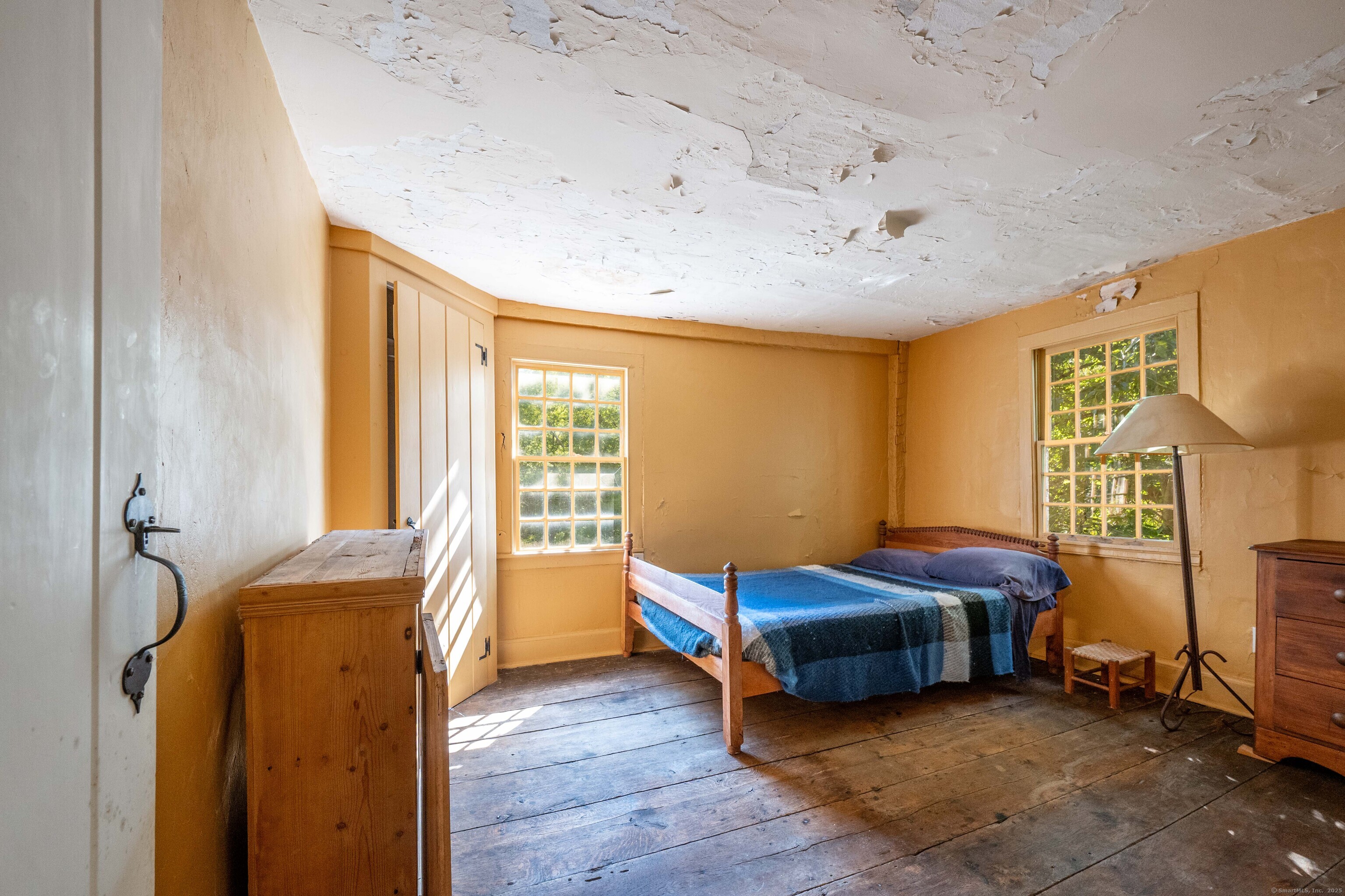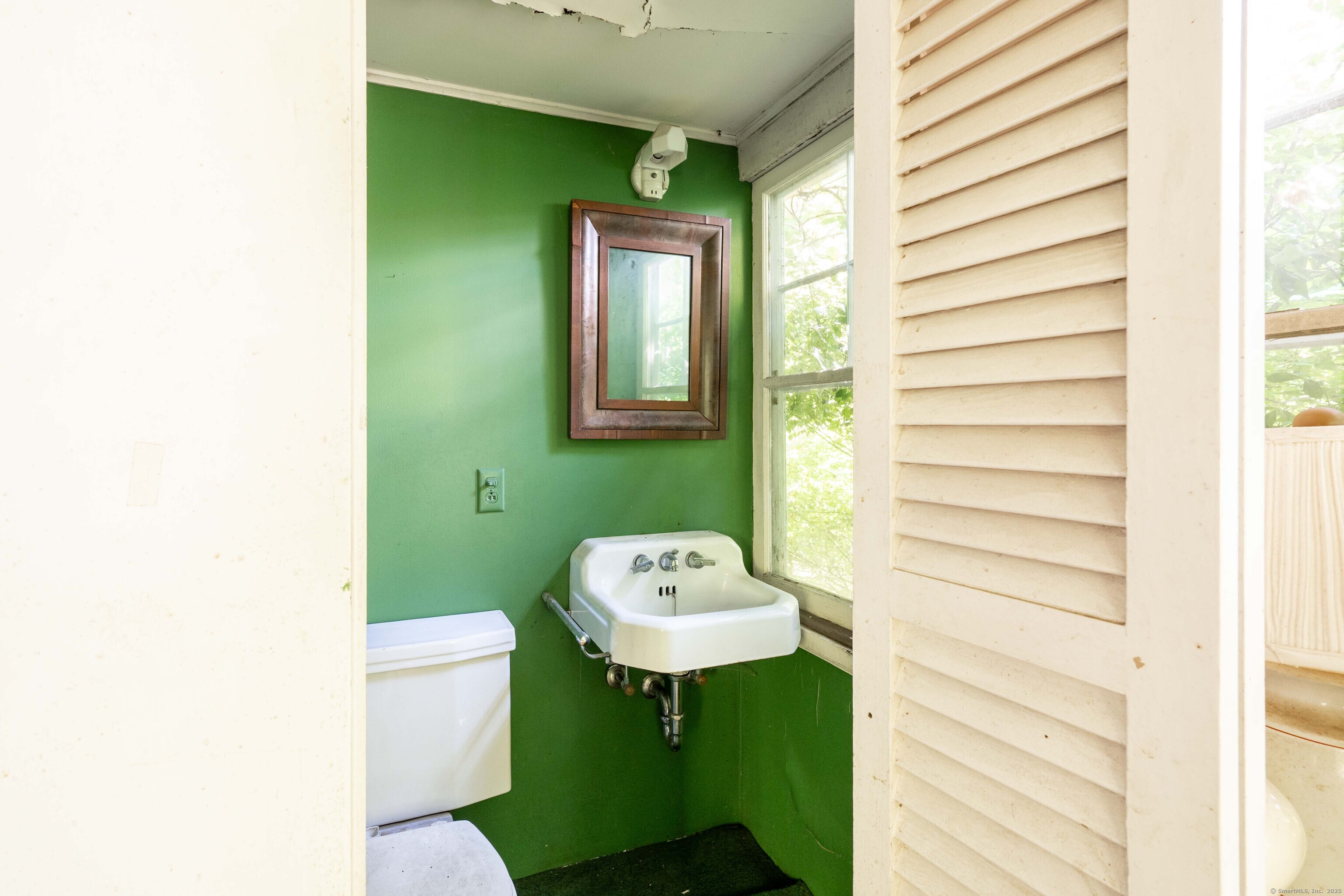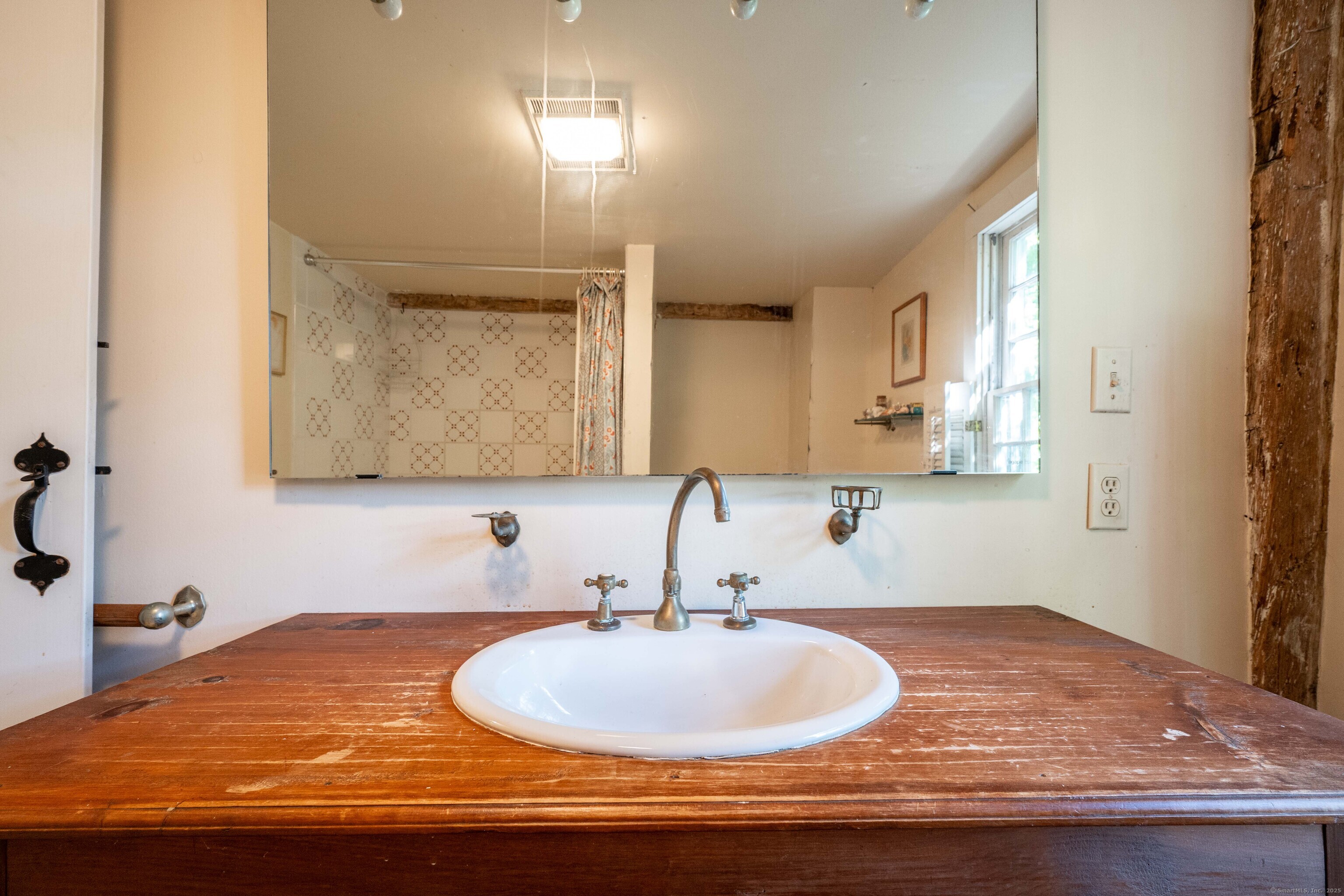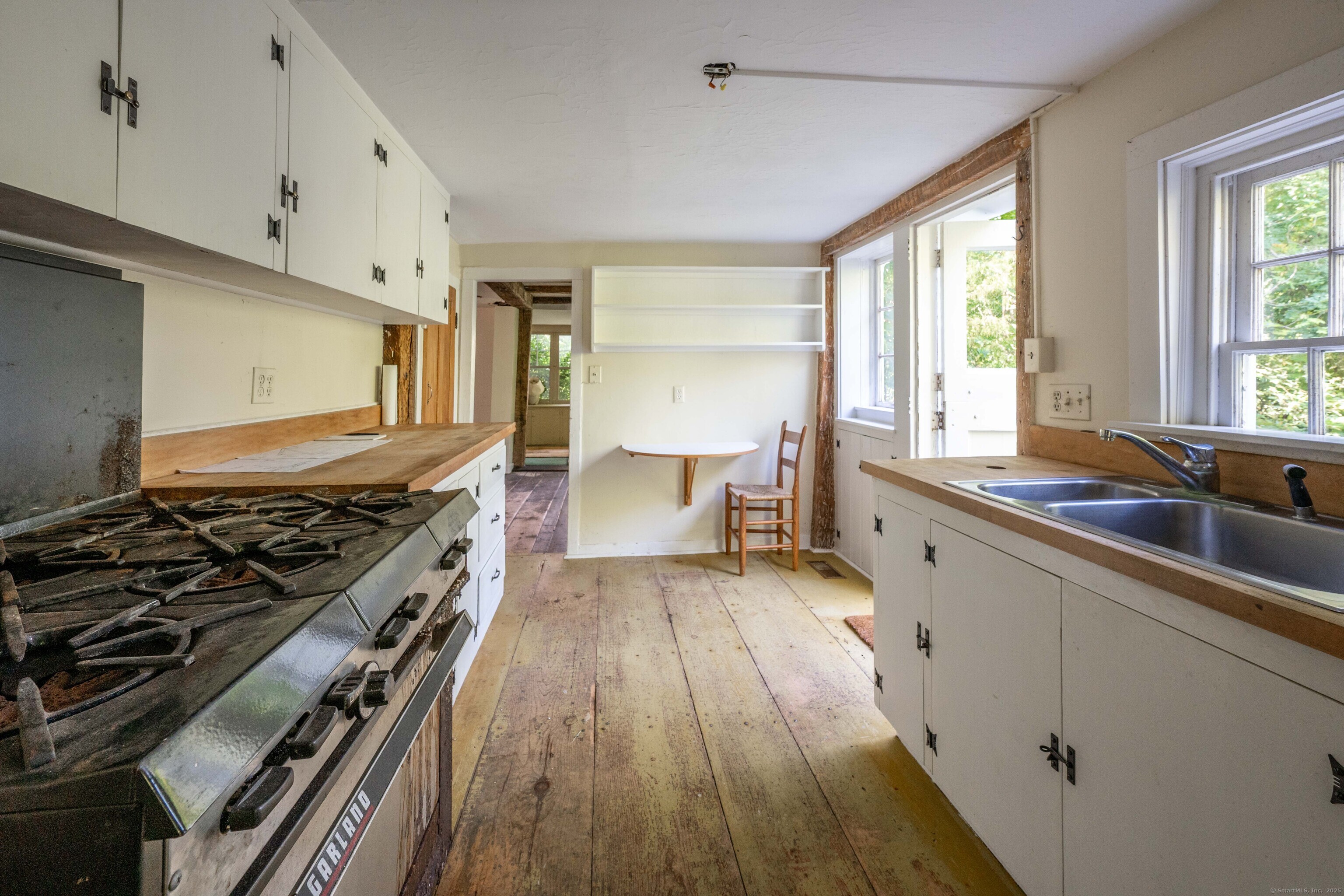 A unique chance to own a piece of history in an unbeatable location! Built in 1825, this special bicentennial gem offers nearly 2 acres of mature trees and hidden meadows, bordered by protected land and equestrian property. Endless potential for renovation or start fresh as a new build, with a 4 bedroom septic system and preserved antique features like original wide plank flooring, exposed wood beams, fireplaces, built-ins, trim and more. The main level has formal living and dining rooms, with two bonus sunrooms on the side, a galley kitchen with full pantry and mudroom entry off of the driveway. There are 3-4 bedrooms upstairs with a full bathroom and access to the 750 square foot walk-up attic, offering extra space for storage or future expansion. The full basement also offers additional space for storage. The large front porch overlooks the scenic front yard and the Bethel Land Trust Wolfpit Nature Preserve, for protected views and year-round privacy. Out back you'll find a stone patio and there is also a detached garage with plans for a finished space above. Ideally located close to numerous major routes for an easy down county commute and convenient to both the Bethel and Redding train stations. Only 90 minutes to NYC and just minutes to Downtown Bethel's quaint shops, restaurants and community activities. A very special property for the full time resident or as a weekend getaway!