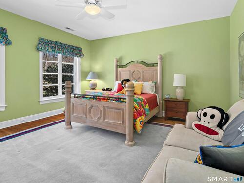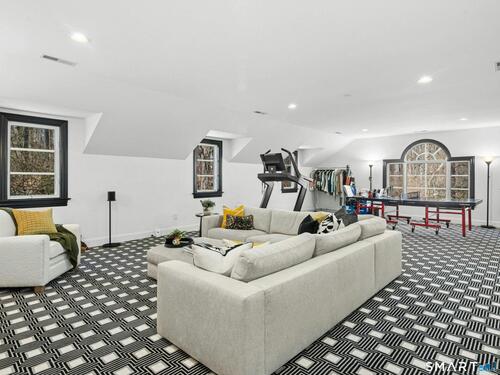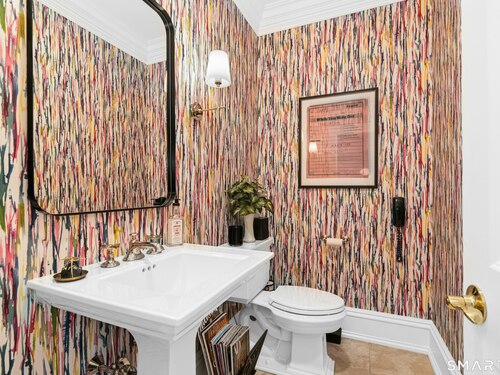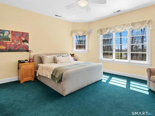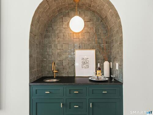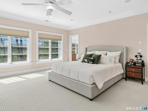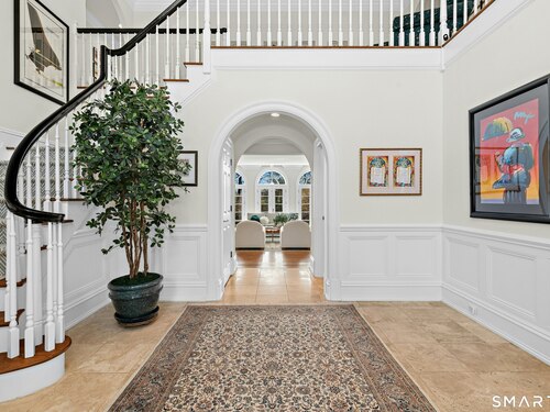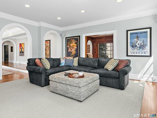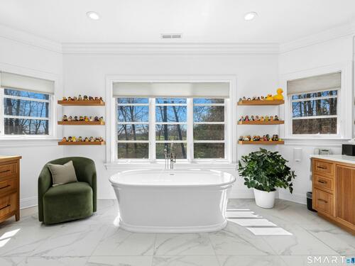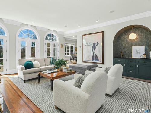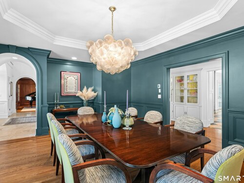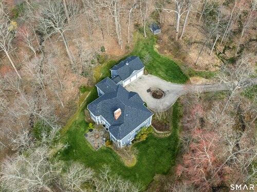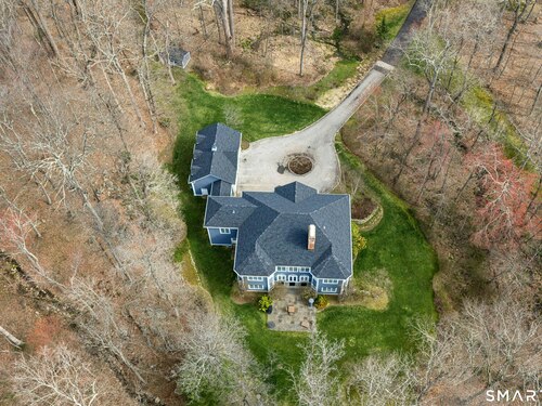 5.13-Acre Estate Bordering New Canaan Country Club. Discover ultimate privacy on Smith Ridge Road. This impeccably maintained home features a sun-drenched floor plan with southern exposure and high-end updates throughout. Highlights include a 2023 Fiona Leonard kitchen with walnut cabinetry, a 2024 primary bath renovation, and a spacious living room with a custom wet bar. The main level offers a paneled music room, a cozy family room with a fireplace, and a large dining room with custom display cabinetry. 4 bedrooms on the second level include a grand primary suite and a dedicated home office. Exceptional expansion potential in the walk-up attic and the high-ceilinged walk-out lower level. Exterior features include a 2025 roof and paint, new lanterns, and a private drive. Whole-house generator, wired for smart home tech, and just minutes to New Canaan's village center and the Merritt Parkway.
