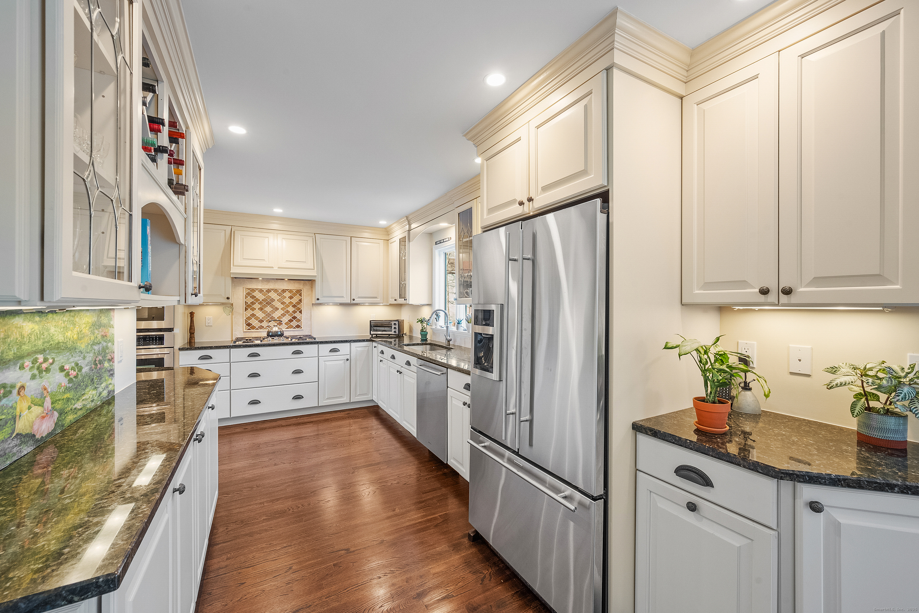 Welcome to 77 Aspen Lane, a tranquil North Stamford retreat situated on a quiet, tree-lined cul-de-sac. This well-maintained home offers bright and comfortable living spaces with an easy flow, surrounded by nature and privacy. The main level features a spacious living room with abundant natural light, dining room, and renovated kitchen. Generously sized bedrooms and additional living spaces offer room for a home office, family room, or playroom. Outdoors, enjoy the peaceful setting with mature trees, and over an acre of flat yard space. Conveniently located near parks, hiking trails, schools, and Stamford's shopping and dining destinations, this home blends quiet suburban living with excellent access to local amenities.