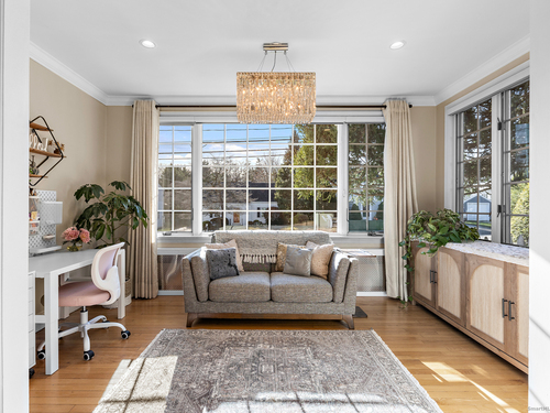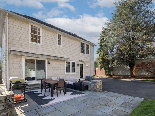 This classic colonial offers spacious, light-filled living and dining areas anchored by a recently renovated eat-in kitchen. A comprehensive renovation and expansion in 2007 brought modern systems, updated finishes, and a more functional layout, giving the home the fresh feel of a much newer build. With four bedrooms-three upstairs plus a generous first-floor guest room-and an optional fifth bedroom ideal for a nursery or home office, the home provides remarkable flexibility. A full unfinished basement offers abundant storage and future potential. Outside, enjoy perennial plantings, a private level backyard with a vegetable garden, and a roomy two-car garage. Just minutes from the Noroton Heights train station, Darien Commons, and Hindley Elementary, and close enough to bike to Weed Beach on warm weekends.