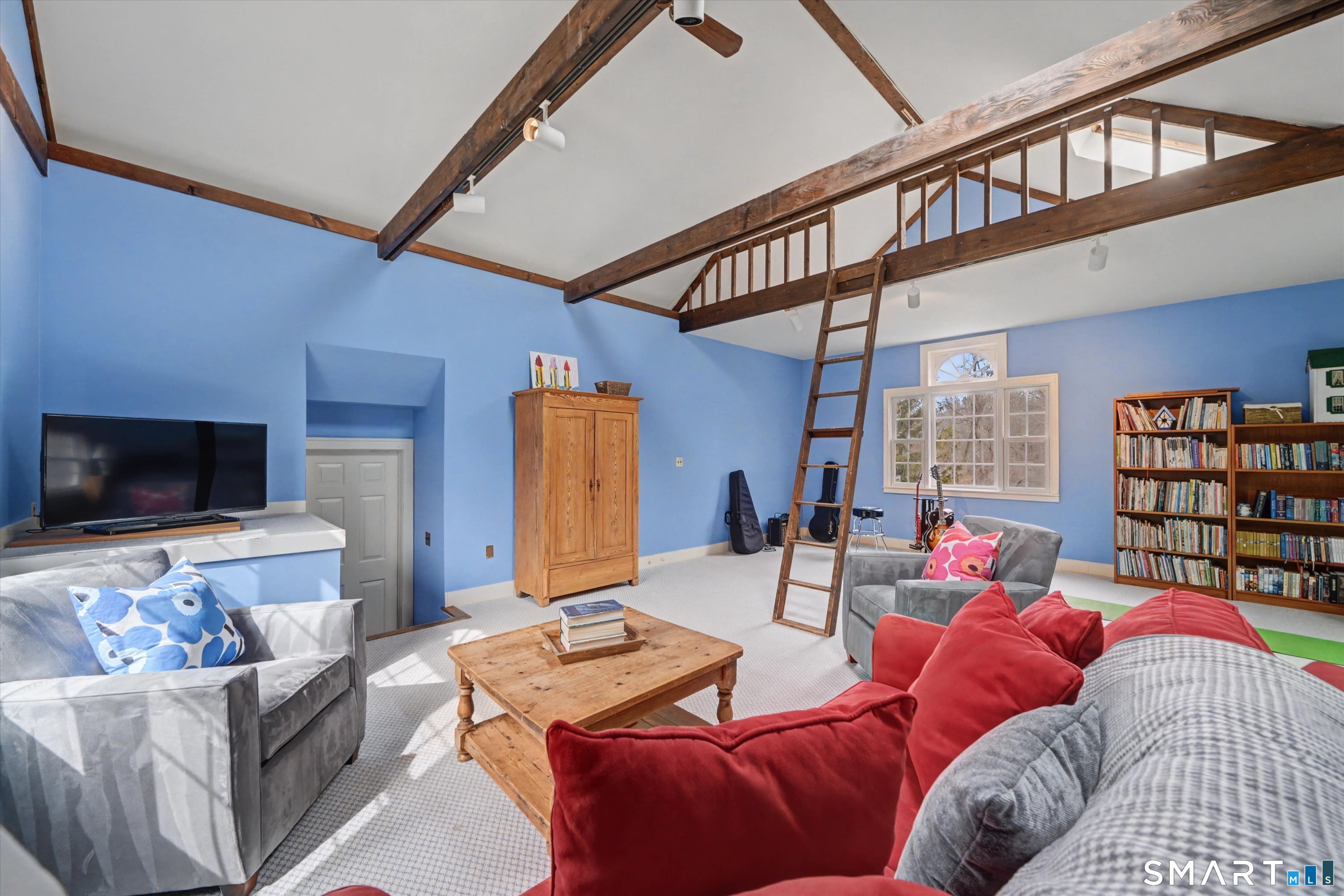This is the one you've been waiting for! Warm, inviting and lovingly maintained classic Colonial on Keelers Ridge, a quiet, walkable neighborhood. Custom built by Kellogg Brothers with exceptional craftsmanship, this home features crown moldings, paneling, built-ins, and soaring ceilings. Graciously sized main rooms are ideal for everyday living and entertaining. The bright sunroom offers cathedral ceilings, skylights, and views of the large deck, stone fire-pit and level backyard. The spacious eat-in kitchen complete with a large center island, gas cooktop, wall ovens, abundant cabinetry serves as the heart of the home. It opens to a lovely family room with cathedral ceilings, beams, floor-to-ceiling fireplace, built-ins and a charming window seat. There's a cozy study/library for those work from home days. An expansive great room with loft provides flexible space for recreation, media, or play. Upstairs, the primary suite features high ceilings, fireplace, walk-in closet, and an updated bath. Three additional bedrooms with hardwood floors share an updated hall bath with double sinks. Enjoy 2 private acres abutting the 60 acre Quarry Head Park with scenic hiking trails. A beautifully crafted home offering timeless elegance, privacy and exceptional space in a premier neighborhood.