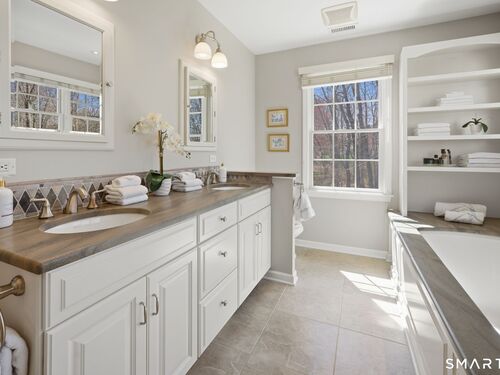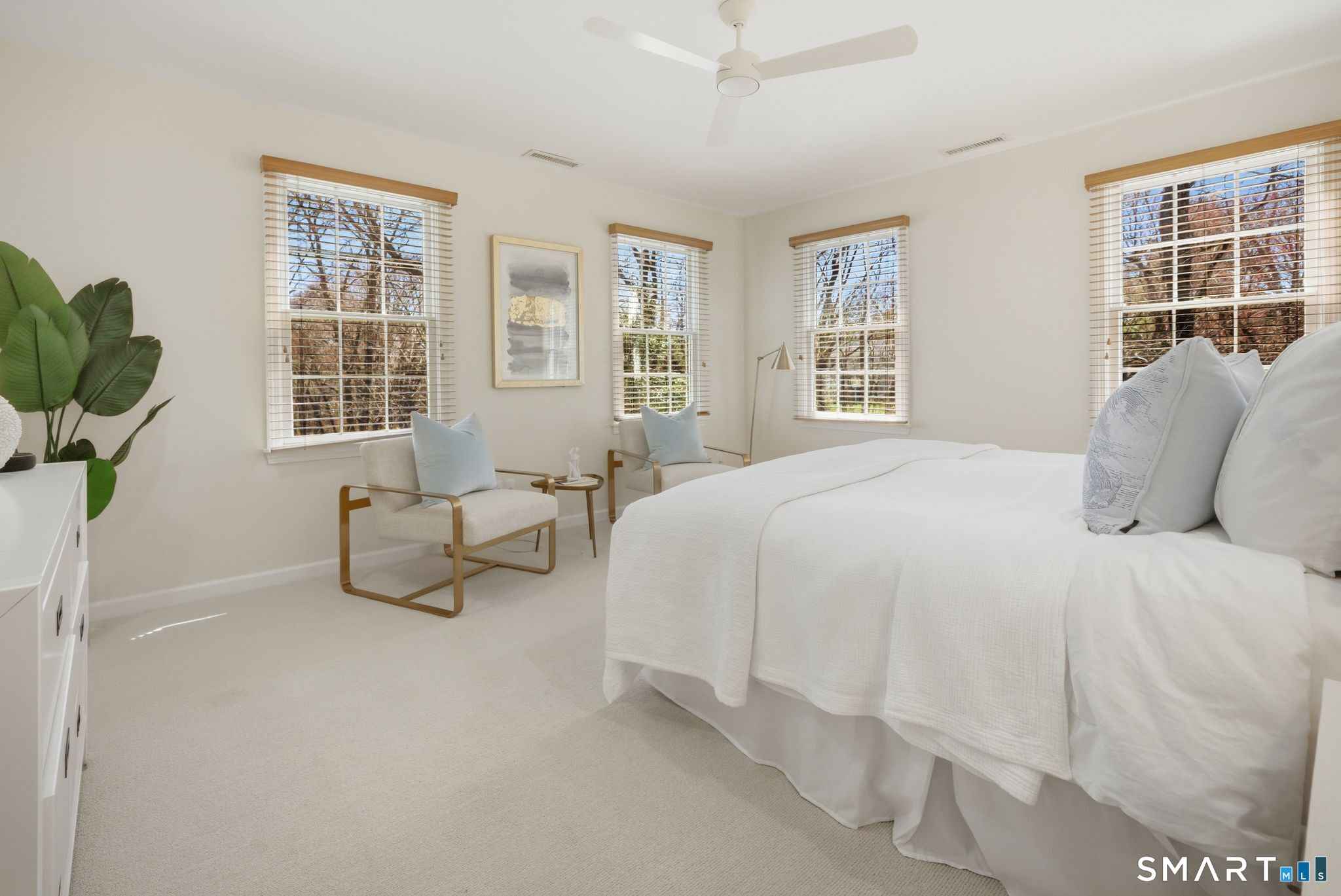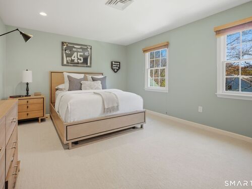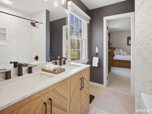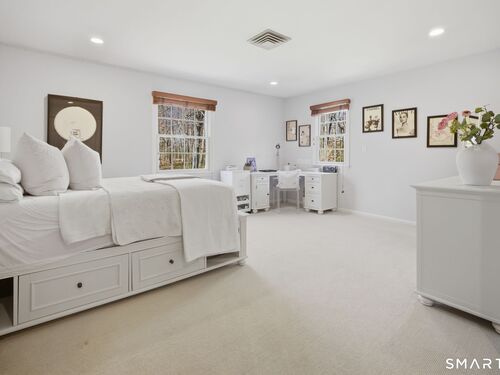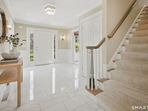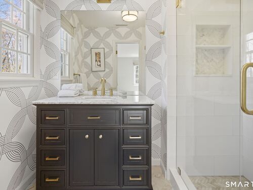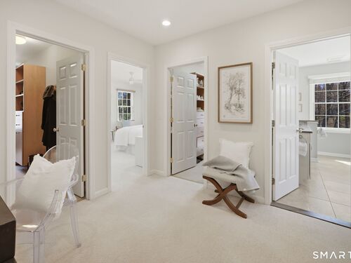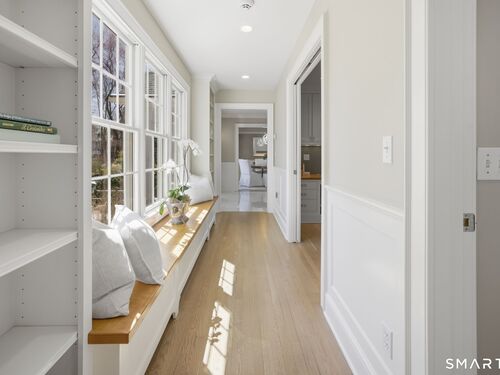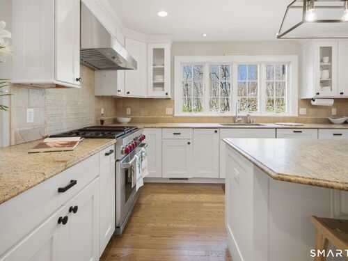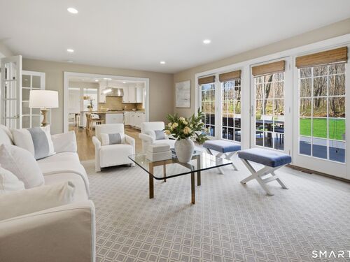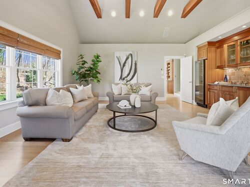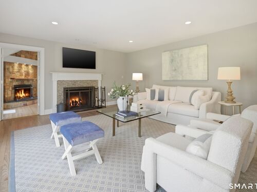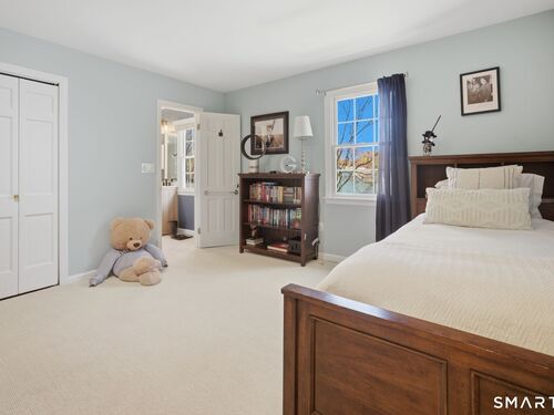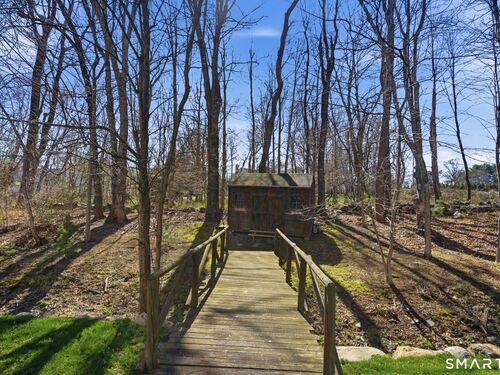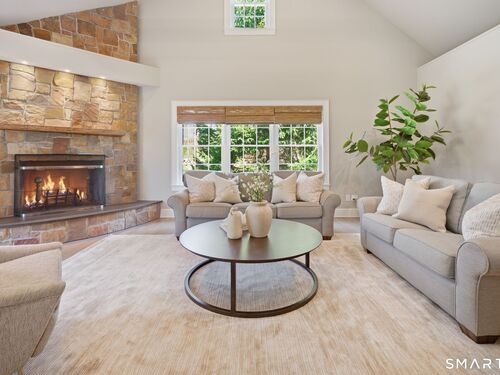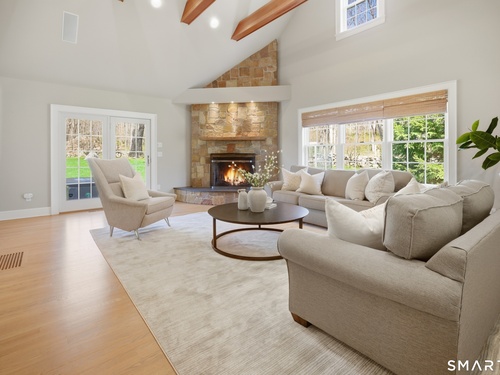 Set along a storybook private drive, where a gently winding brook passes beneath charming stone bridges, this is a home defined as much by its setting as by the way it lives. There's a quiet magic here-a sense of privacy and calm that feels rare, yet a warmth that makes it easy to imagine putting down roots and staying awhile. Inside, the home unfolds with an easy, natural flow. The spaces are generous without excess, designed for real living and the moments that shape it. The kitchen and great room come together as the heart of the home-open, inviting, and filled with light-where everyday routines and gatherings blend seamlessly. Cathedral ceilings and a wood-burning fireplace add both scale and comfort, creating a place that feels equally suited for slow mornings and full evenings. Thoughtful flexibility is woven throughout, with spaces to work, create, and grow, along with a finished lower level that adapts as life evolves. Upstairs, the primary suite offers a sense of retreat, set apart for quiet and privacy, while several additional bedrooms provide room to expand, host, and settle in. Outdoors, the property invites a slower pace. Dining on the deck, tending to a garden, or simply enjoying the open yard feels effortless, with the soft sound of the brook never far away. Here, privacy and connection coexist-tucked away in a setting that feels like its own small world, yet just minutes from town, train, and shoreline. A place to grow into, and a place to stay.