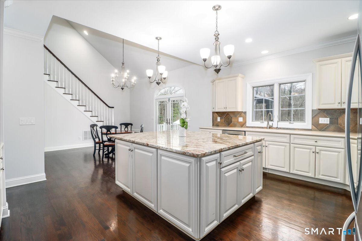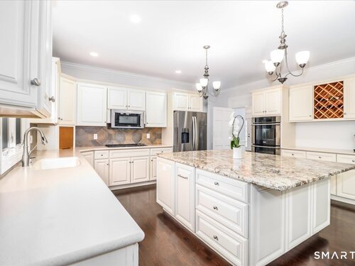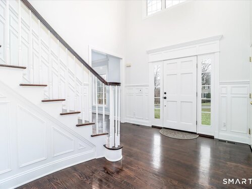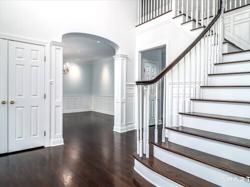 Set within the highly desirable Stone Ridge Estates and surrounded by meticulously landscaped grounds, this stately colonial embodies refined luxury, exceptional scale, and effortless indoor-outdoor living. A dramatic two-story foyer with sweeping staircase and exquisite millwork introduces elegant formal living and dining rooms, highlighted by bay windows, rich hardwood floors, and timeless architectural detail. At the heart of the home, a beautifully appointed eat-in kitchen features a granite center island, custom cabinetry, premium stainless appliances, and a sunlit breakfast area with French doors opening to an expansive deck. The spacious family room offers a gas fireplace with marble hearth, while a sun-drenched bonus room beyond double French doors provides a versatile space for a media room, office, or private retreat. The main level is complete with a bedroom and full bath, along with a thoughtfully designed mudroom and laundry area. Upstairs, the luxurious primary suite features a tray ceiling, private sitting room, dual walk-in closets, and a spa-inspired bath with soaking jetted tub, separate shower, and vaulted ceiling. Two additional bedrooms share a Jack-and-Jill bath. While a private suite with full bath and walk-in closet is ideal for guests/in-law/nanny, or office use. Finished lower level offers multiple recreation spaces and a full bath. Outdoors, a heated in-ground pool, expansive patio, composite deck with pergola. Whole house generator. 3 car garage.