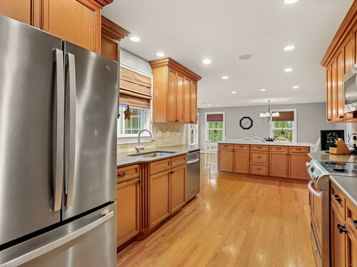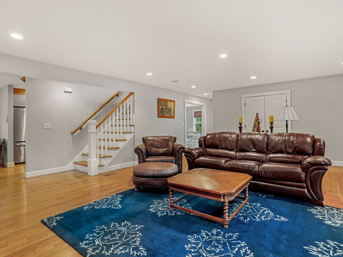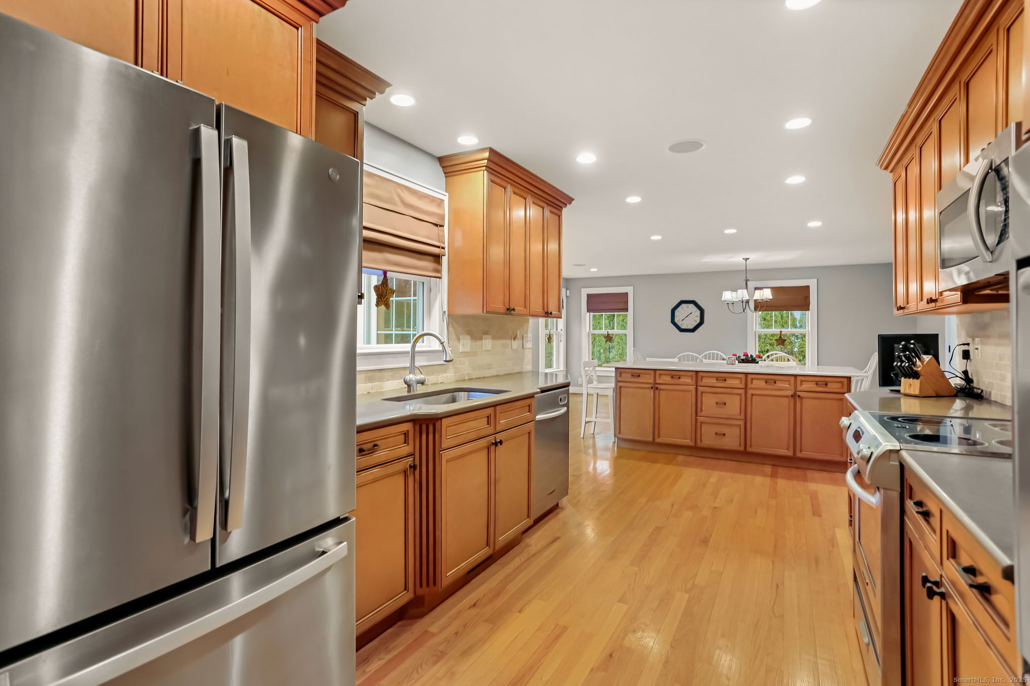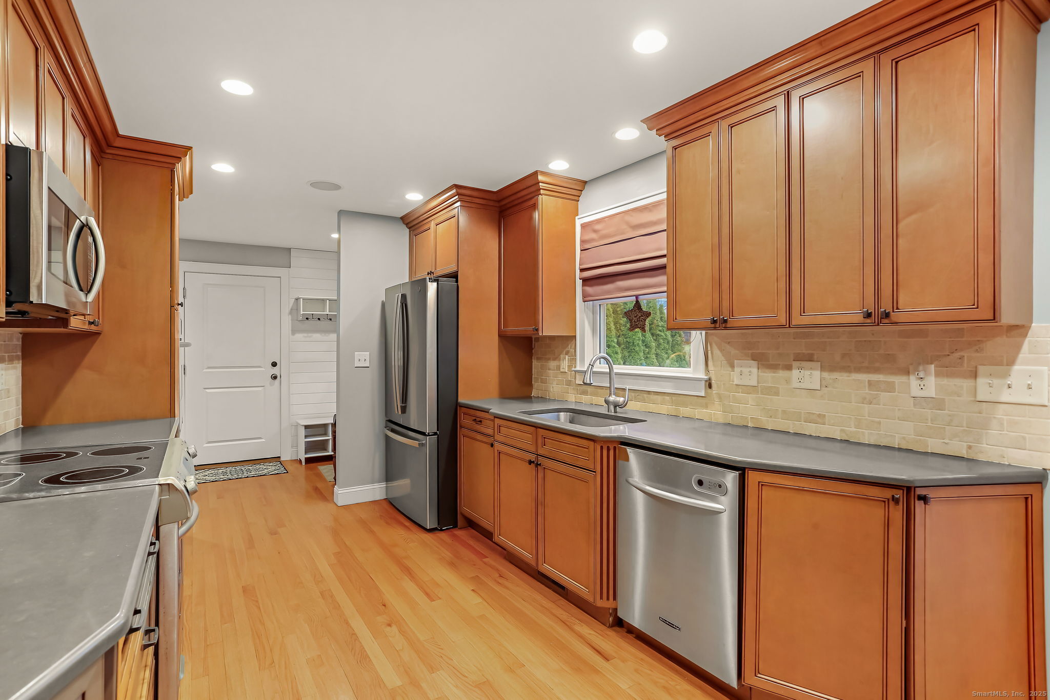 Welcome to 8 Moorland Rd! A beautiful covered porch with mahogany flooring and beadboard finishes introduces this exceptional 4 bedroom, 4 bath home, where timeless charm meets refined modern living. The beautifully remodelled kitchen with stainless steel appliances, double oven and center island with marble counter tops opens to a sun-filled dining area, overlooking a private level backyard. The kitchen flows nicely into an inviting living room, with gleaming hardwood floors and wood-burning fireplace, a perfect place for relaxing or entertaining. The first floor also features a nicely sized bedroom with full bathroom, as well as a mudroom area and access to a 2 car attached garage. The pristine second floors offers 3 well-appointed bedrooms, including a large primary bedroom, with ensuite and walk-in closet as well as an expansive bonus room, an ideal space for a home gym, rec room or movie theatre. The lower level includes an additional 600 square feet of living space, including brand new wall to wall carpet, wet bar and full bathroom. Hardwood floors, new roof, central A/C, 4 zone heating, 200 amp service and generator hook-up! Approx 50 miles from New York City, and just 1/2 mile from the fabulous Pequonnock River biking/walking trail. This home is conveniently located near, playgrounds, popular restaurants, shopping areas and highways. As a Trumbull resident, you have access to 2 community pools, a golf course and top-rated schools. Truly, a special opportunity!