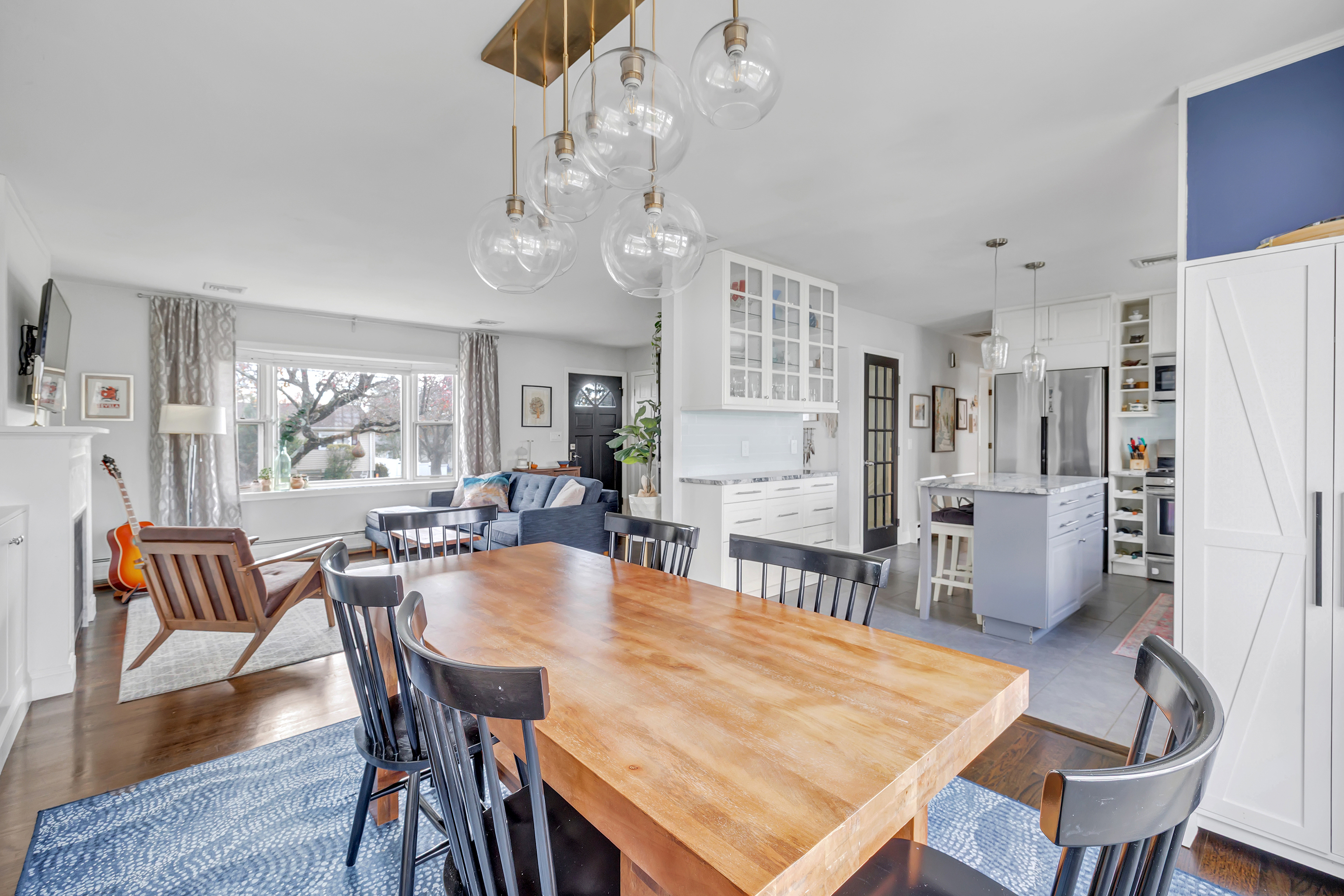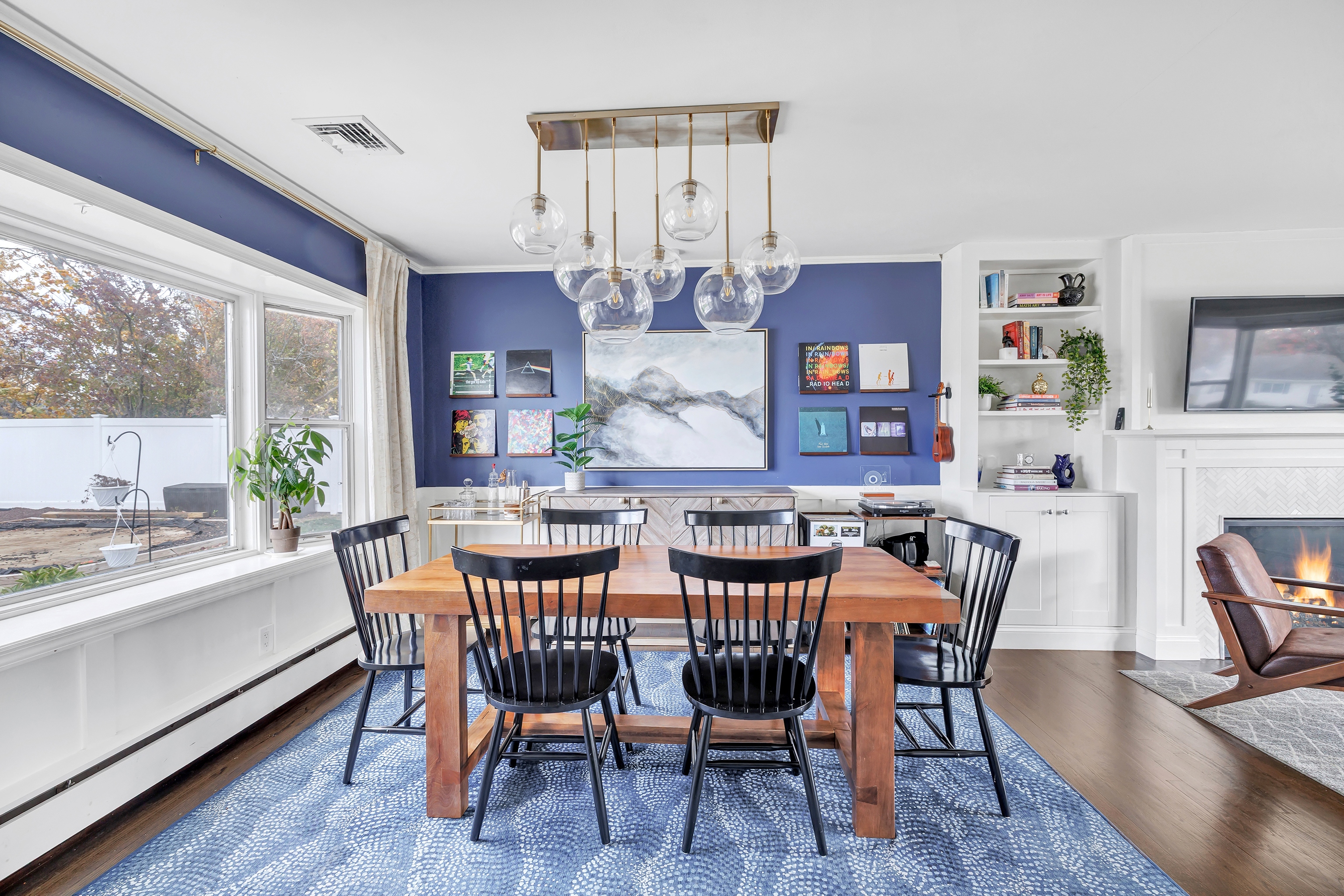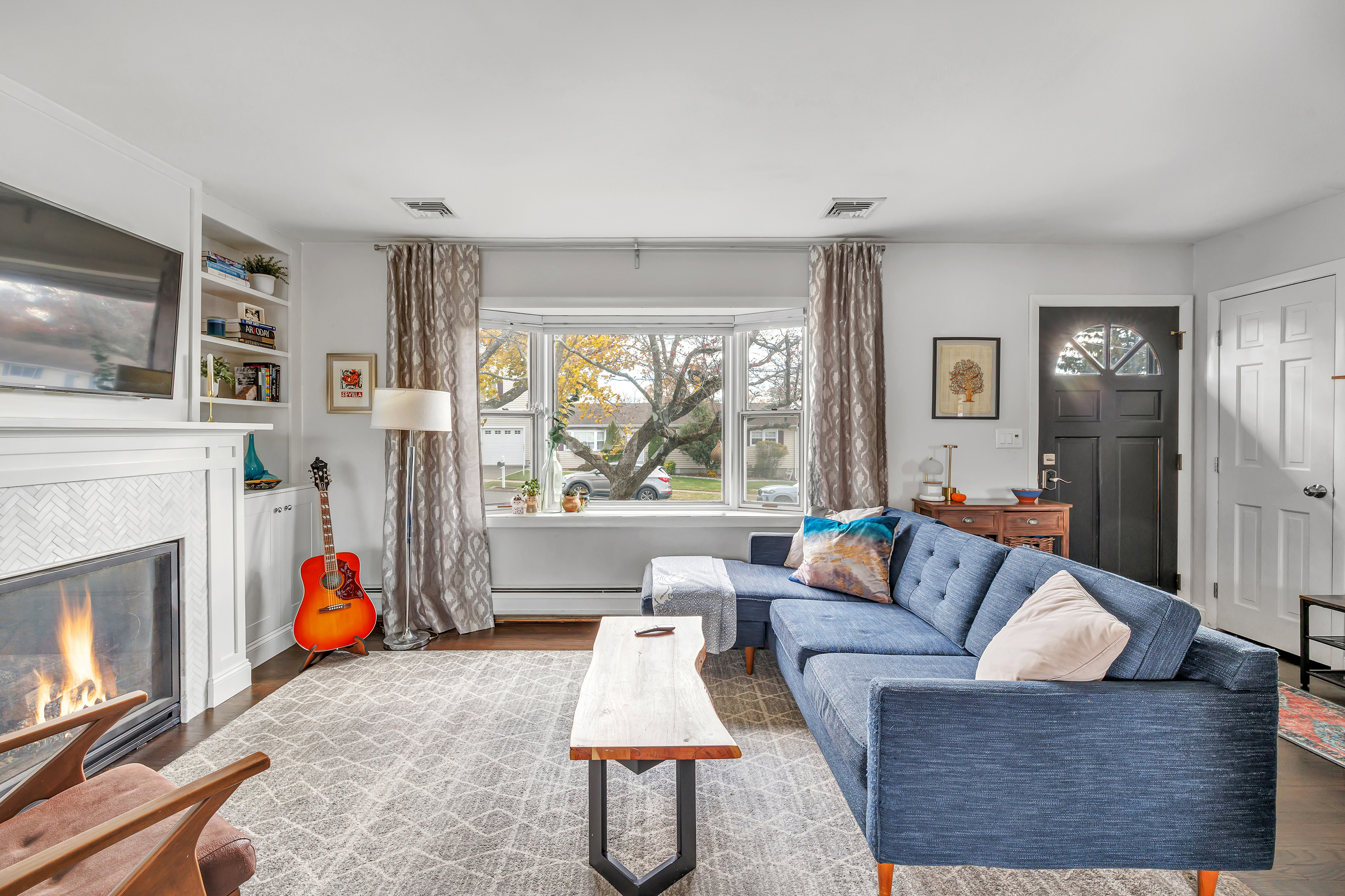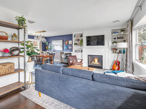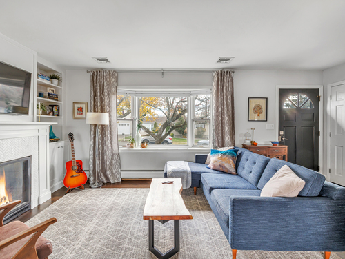 Bay/Bow Window, Built-Ins, Combination Liv/Din Rm, Fireplace, Hardwood Floor