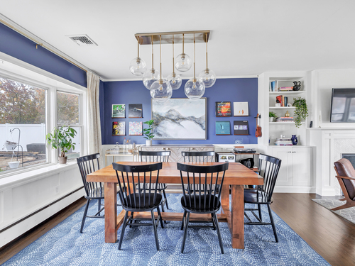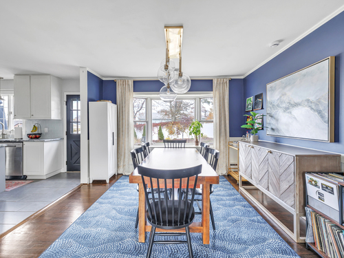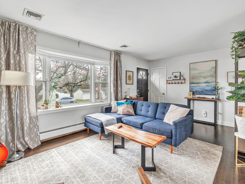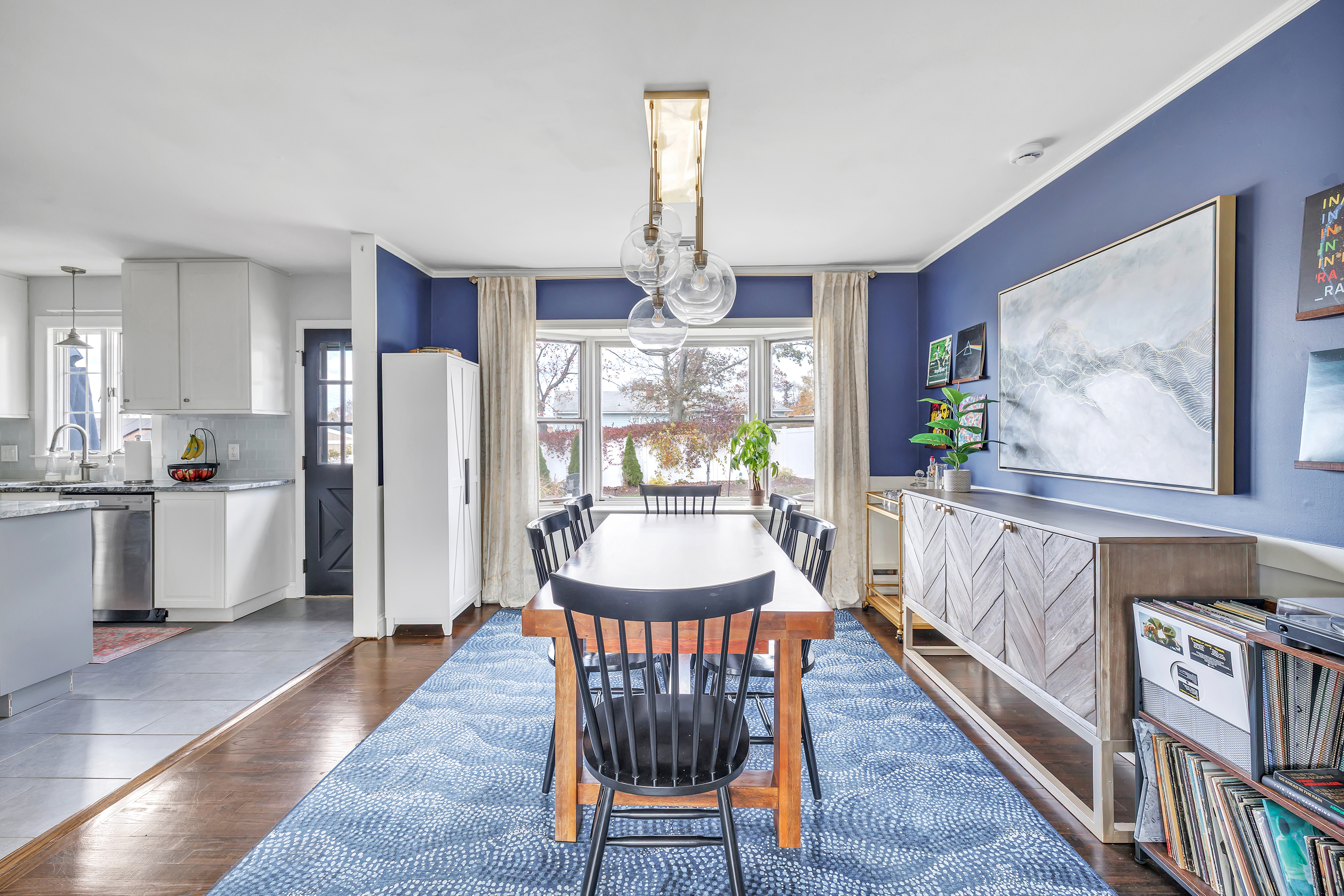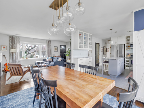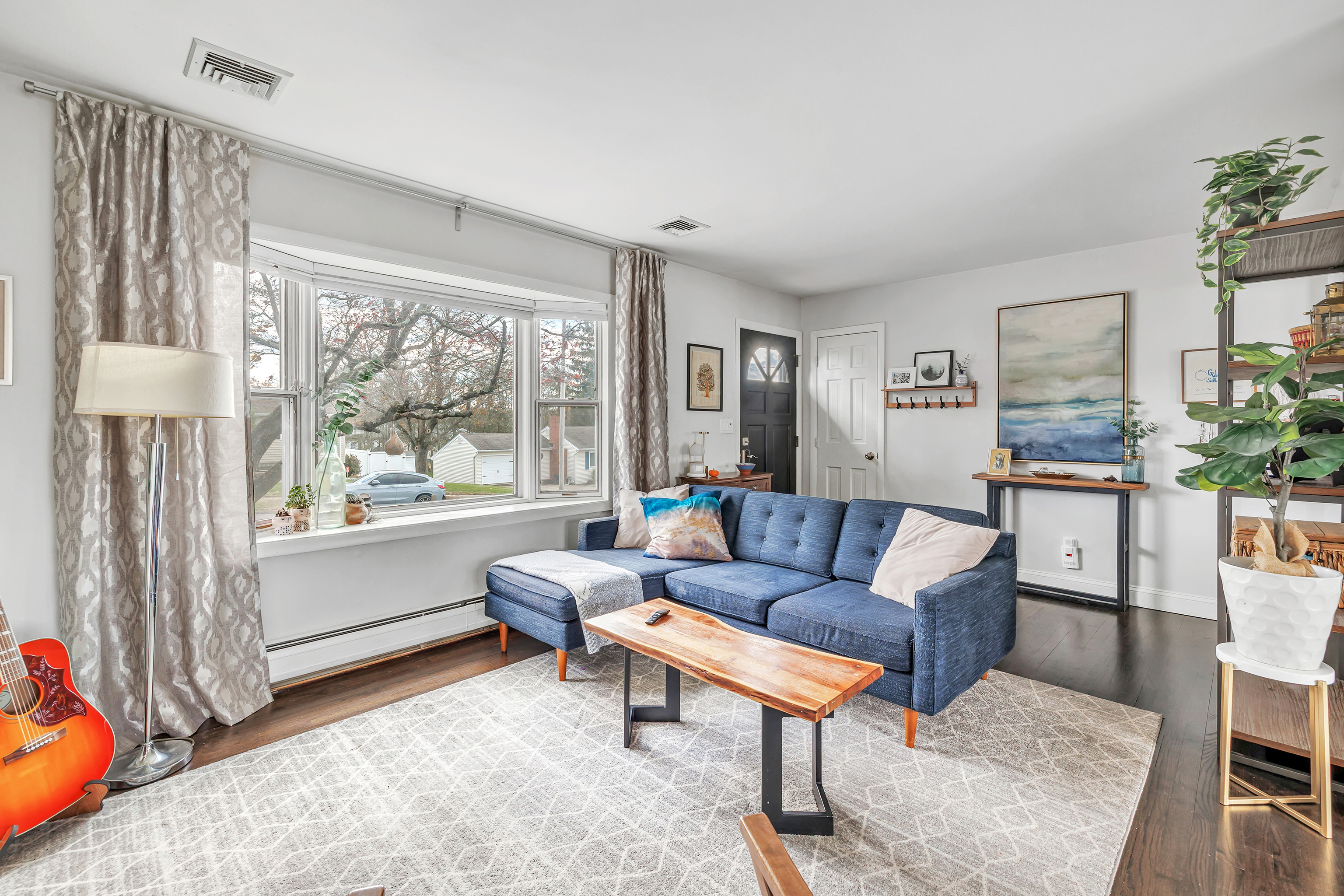 Bay/Bow Window, Built-Ins, Combination Liv/Din Rm, Fireplace, Hardwood Floor