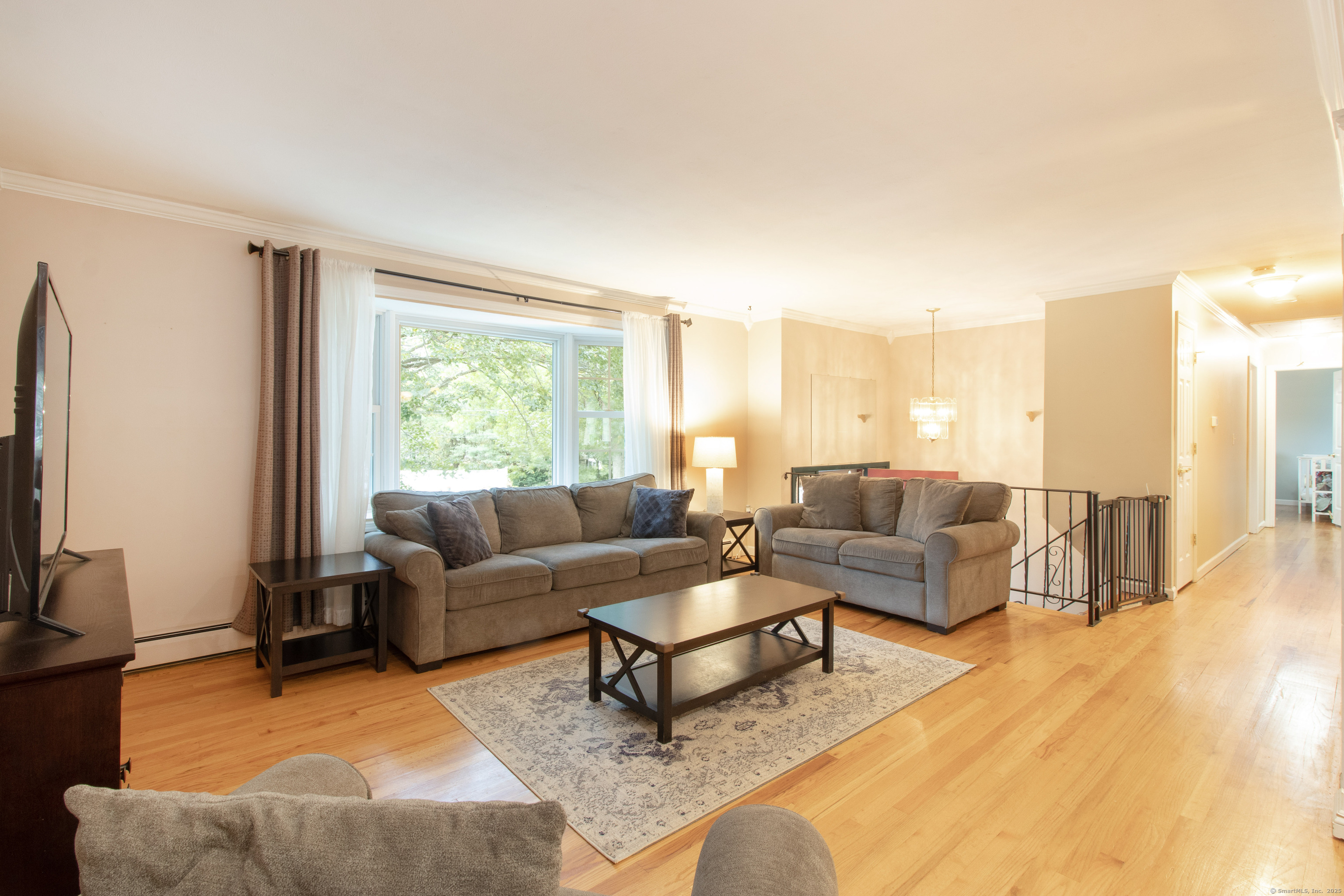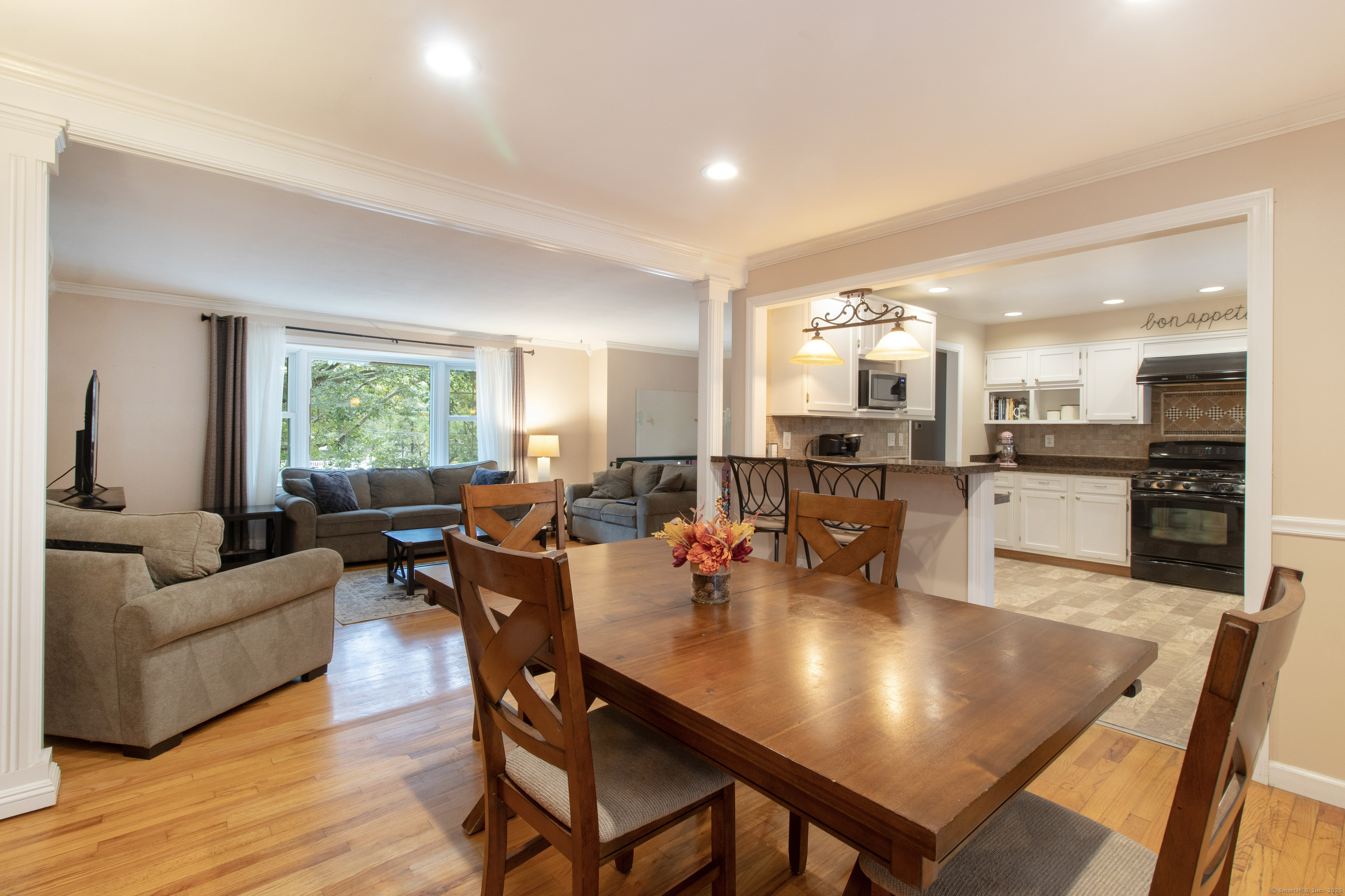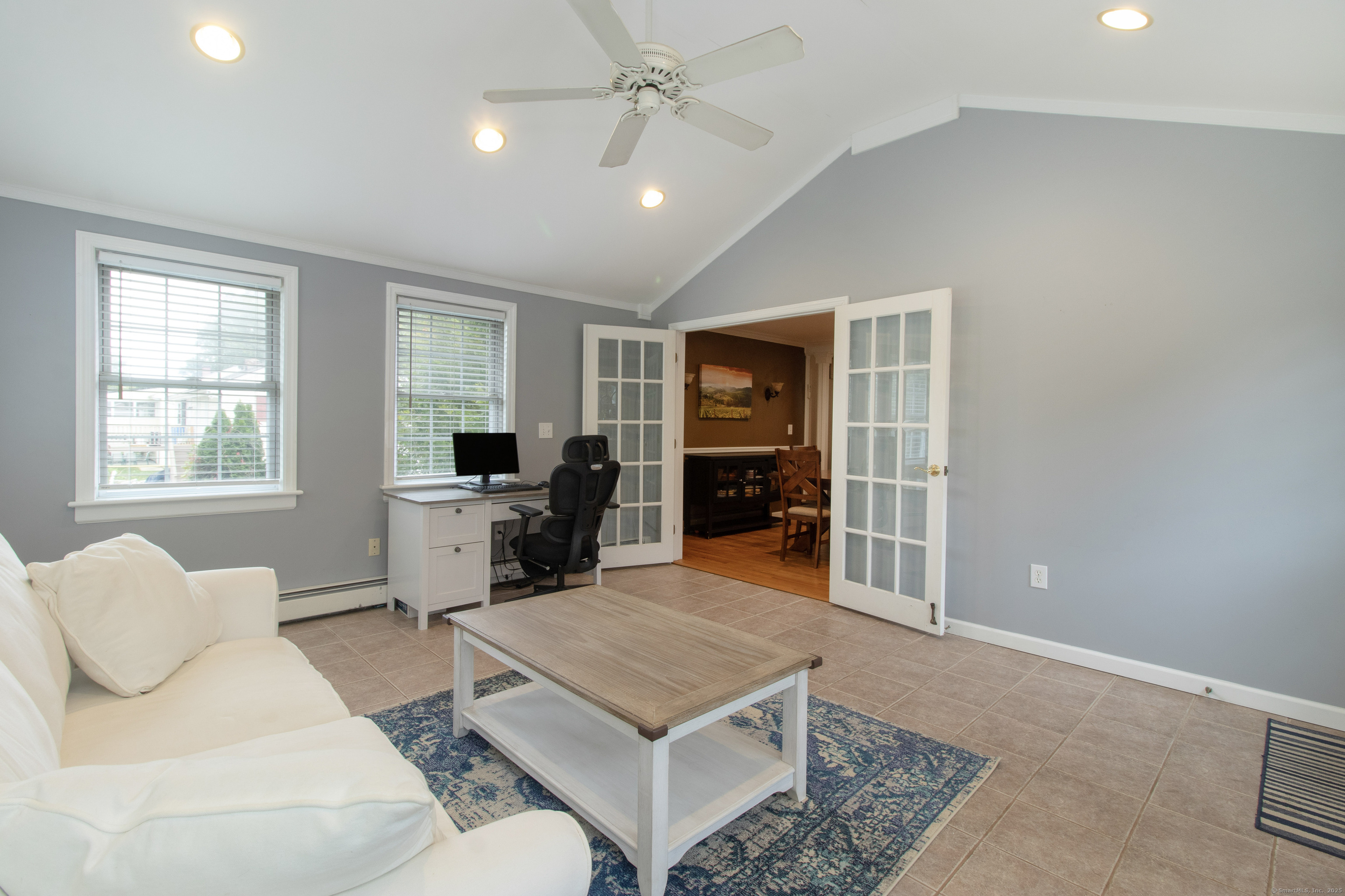 Welcome to this well maintained 3-bedroom, 2 full bath raised ranch nestled in one of Stratford's most desirable Bunnell neighborhood! The open-concept main level features a spacious living room with a large new bay window that floods the space with natural light, seamlessly connecting to the eat-in kitchen with white cabinetry, breakfast bar & tile floor and a formal dining room - perfect for entertaining or family gatherings. From the dining room, French doors open to a stunning four-season sunroom boasting a cathedral ceiling, tile floors, and walls of windows that bring the outdoors in. Step outside to the oversized deck overlooking a private, level backyard. The king-sized primary bedroom offers direct access to the full hallway bath with a tub/shower combination, while two additional queen-sized bedrooms complete the main floor. The fully finished lower level provides versatile living space on separate heating zone, featuring a large family room with double hung windows, walnut laminate flooring, a cozy gas fireplace, a full bath with a stall shower, and a convenient laundry area and walks out to a covered patio extending the living area outdoors. Other sought after features include hardwood floors, deep two car garage, exterior shed, maintenance free vinyl siding, natural gas & city water/sewers. Located close to top-rated schools, parks, shopping, train station, and major highways, this home offers exceptional value and comfort in a quiet, sought-after location.