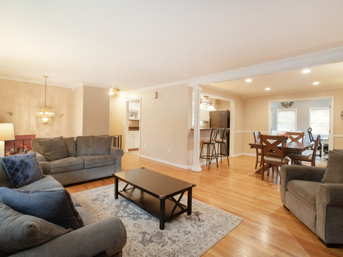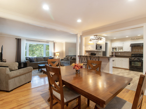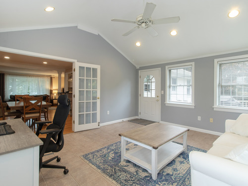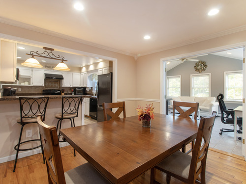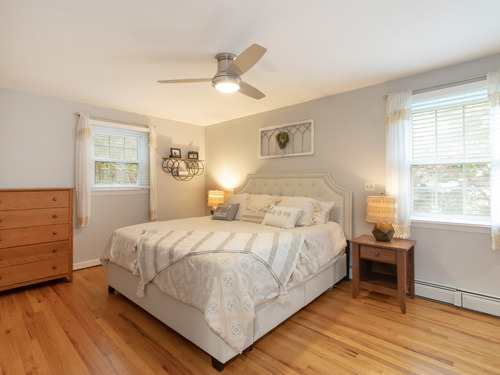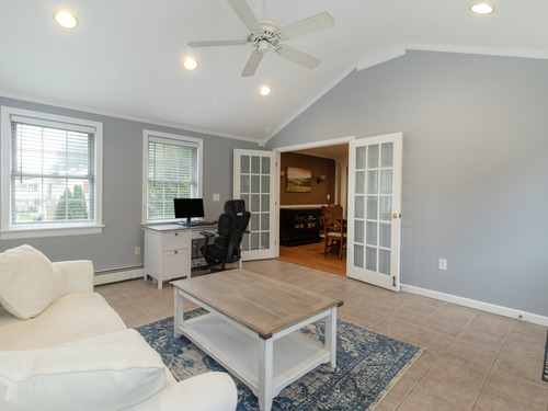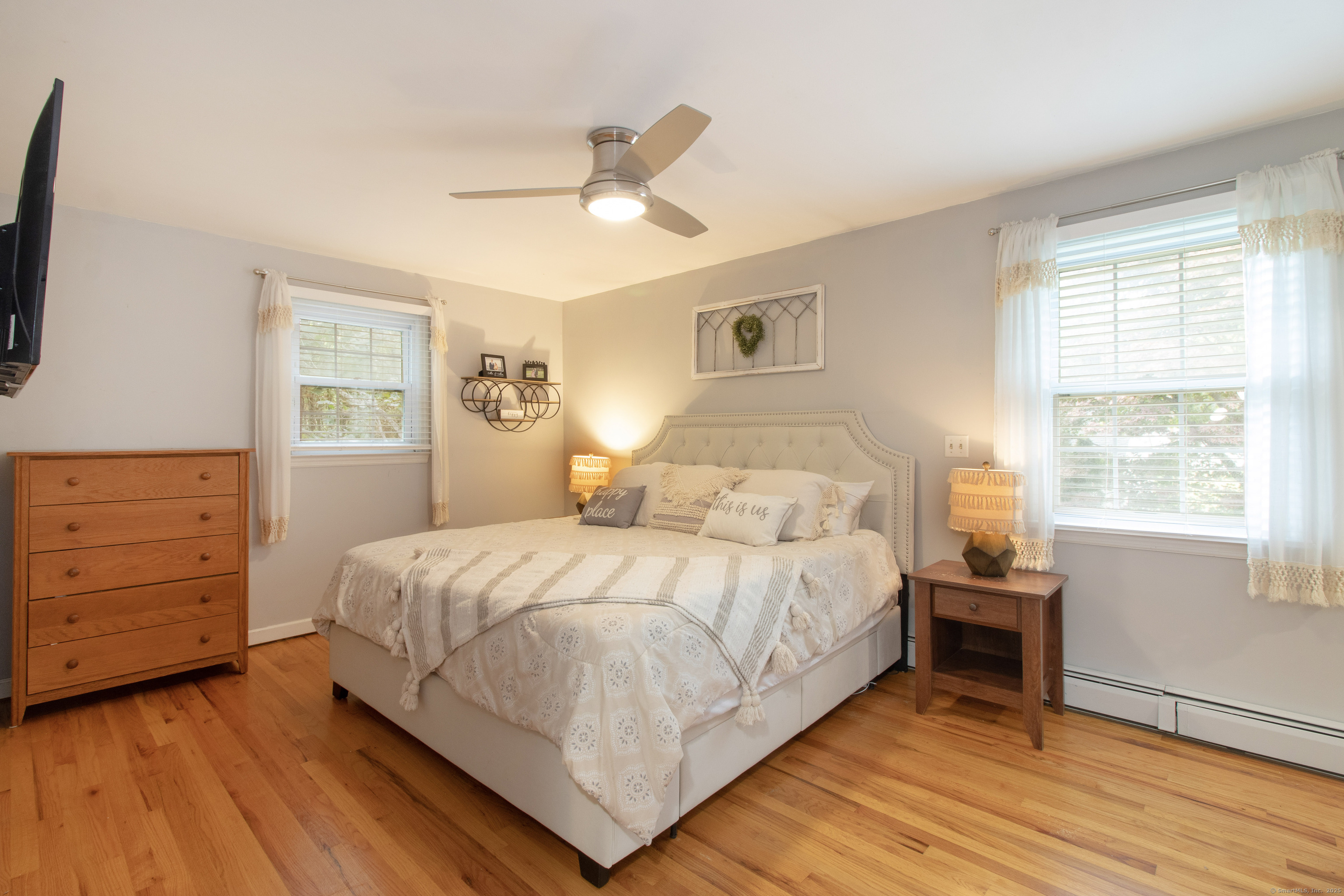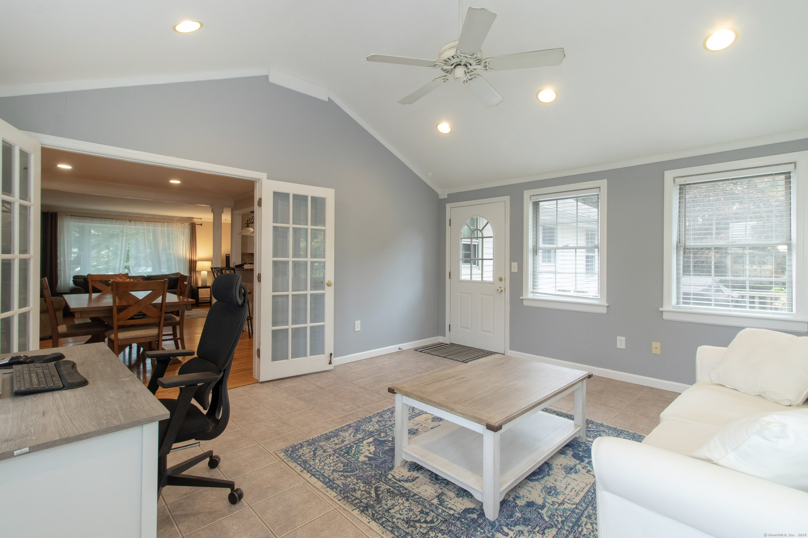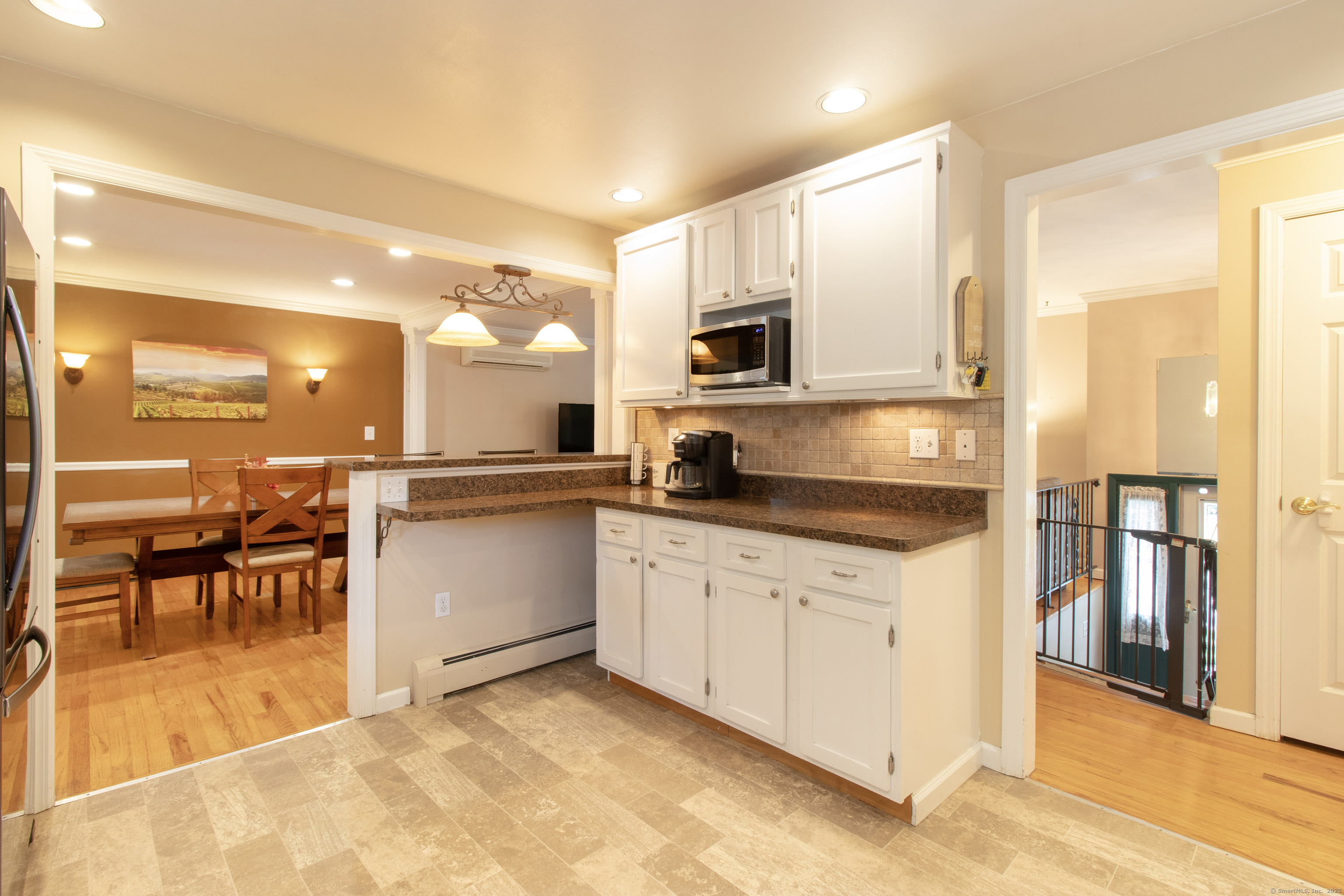 Welcome to this well maintained 3-bedroom, 2 full bath raised ranch nestled in one of Stratford's most desirable Bunnell neighborhood! The open-concept main level features a spacious living room with a large new bay window that floods the space with natural light, seamlessly connecting to the eat-in kitchen with white cabinetry, breakfast bar & tile floor and a formal dining room - perfect for entertaining or family gatherings. From the dining room, French doors open to a stunning four-season sunroom boasting a cathedral ceiling, tile floors, and walls of windows that bring the outdoors in. Step outside to the oversized deck overlooking a private, level backyard. The king-sized primary bedroom offers direct access to the full hallway bath with a tub/shower combination, while two additional queen-sized bedrooms complete the main floor. The fully finished lower level provides versatile living space on separate heating zone, featuring a large family room with double hung windows, walnut laminate flooring, a cozy gas fireplace, a full bath with a stall shower, and a convenient laundry area and walks out to a covered patio extending the living area outdoors. Other sought after features include hardwood floors, deep two car garage, exterior shed, maintenance free vinyl siding, natural gas & city water/sewers. Located close to top-rated schools, parks, shopping, train station, and major highways, this home offers exceptional value and comfort in a quiet, sought-after location.