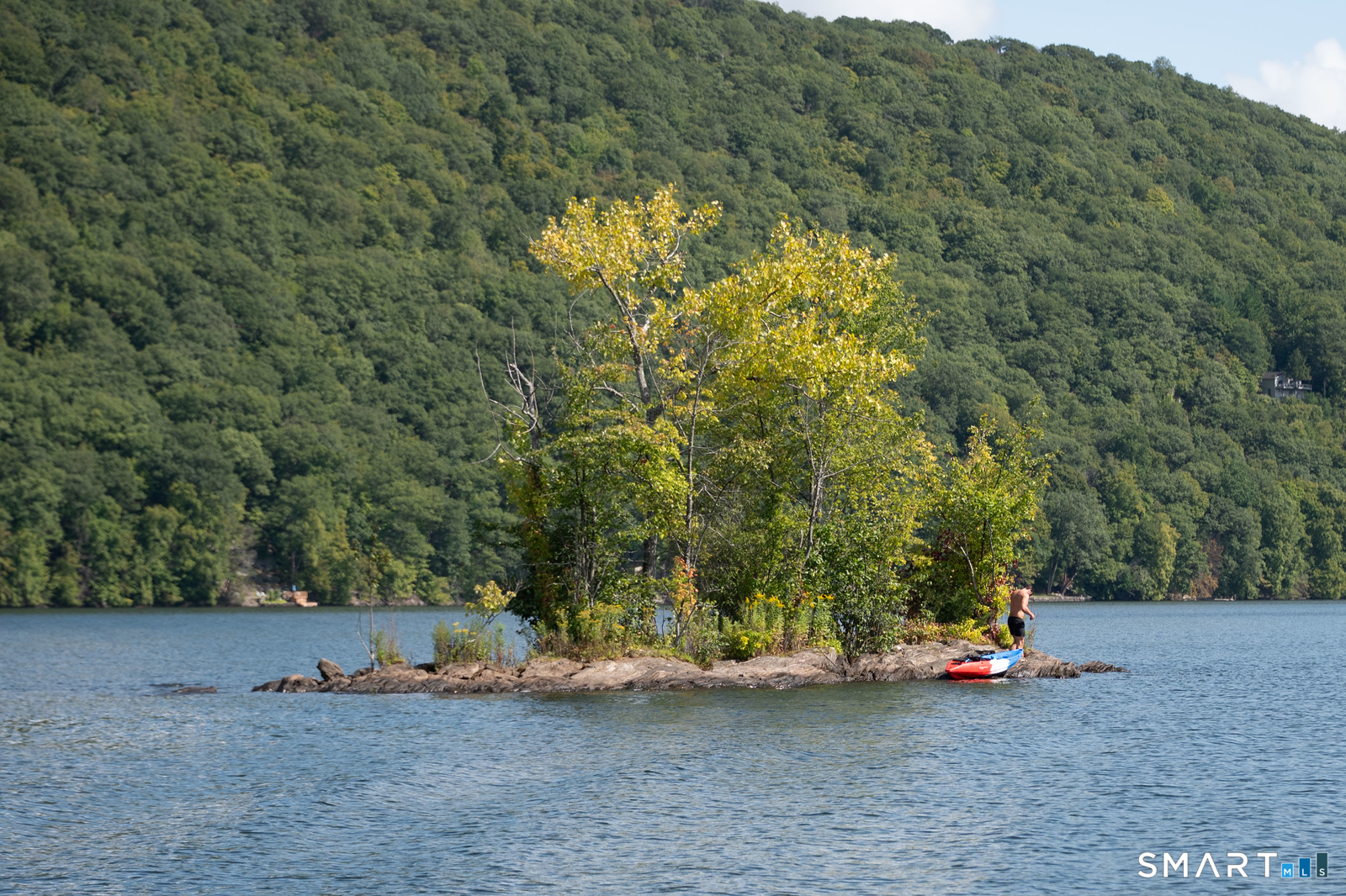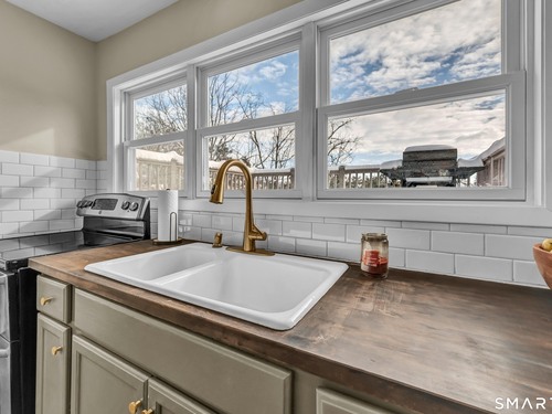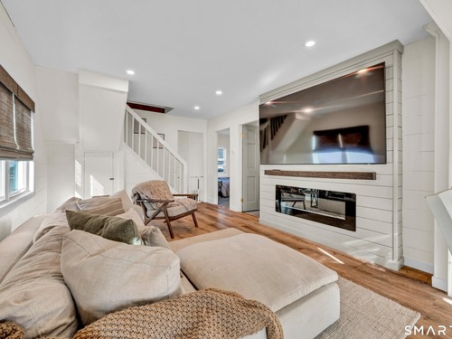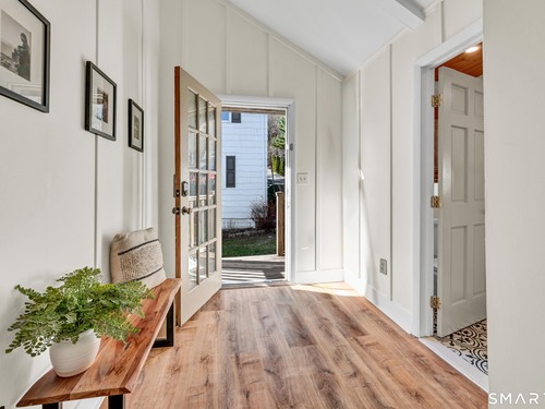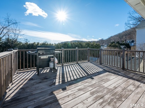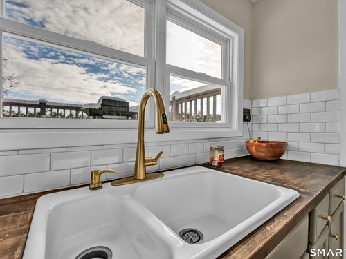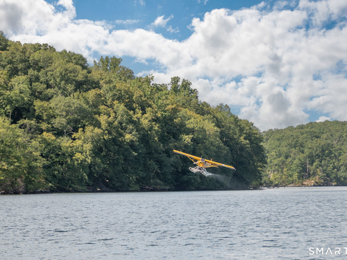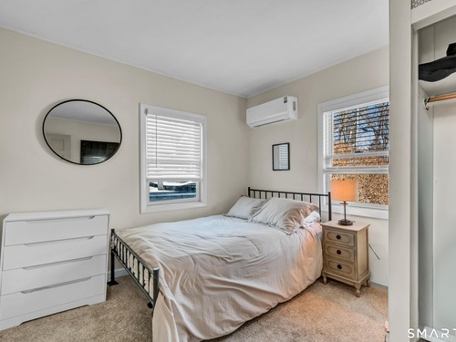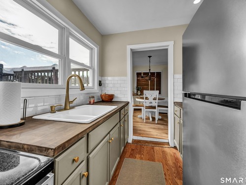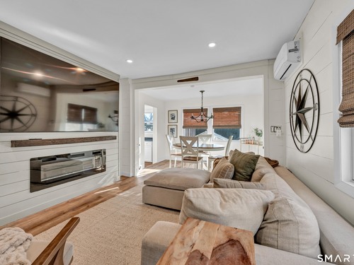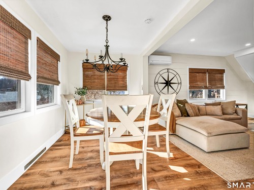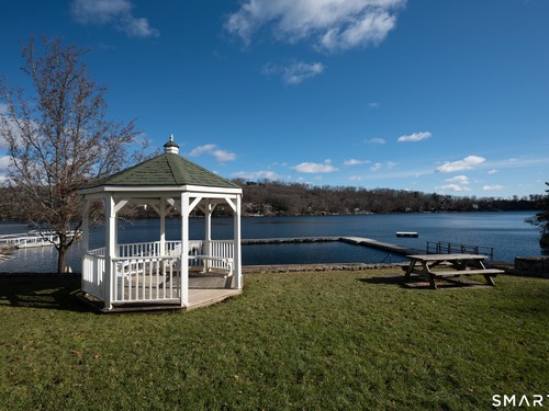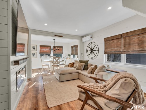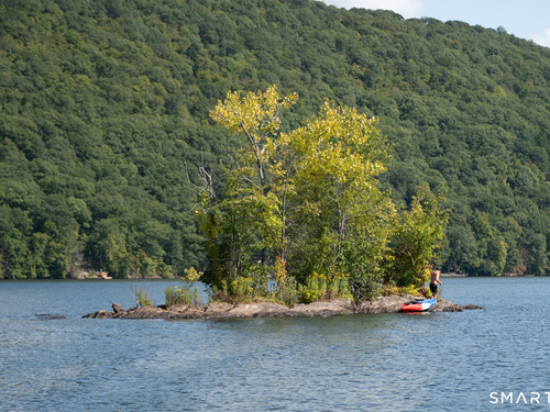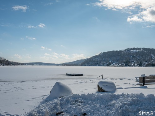 Beautifully updated and charming home in the coveted Candlewood Knolls community on Candlewood Lake. As you enter this special home you're greeted by a convenient mudroom with laundry, new trim work and vaulted ceilings. There is also access to the gorgeous full bathroom with new tile, shower and vanity. Around the corner you'll find a large living room with recessed lighting, new flooring and a cozy, built-in heated electric fireplace. The living room opens to the dining room and newly updated kitchen with new refrigerator, tile backsplash and butcher block countertop, plus two bedrooms. Upstairs offers a lovely primary bedroom with a stunning panoramic window with distant views of Candlewood and the surrounding mountains and islands. There is a back deck and level grassy yard for outdoor entertaining, plus off street parking in front and storage under the deck. Individual heating/ac mini splits in each room for customized temperature control. Located just 10 minutes to I-84/684 and the NY line for an easy commute and 75 minutes to Manhattan. Candlewood Knolls is a one of the only gated communities on the lake, with private boat docks and slips for residents and access to numerous community activities and events, including a summer camp, tennis courts, baseball field, basketball court, playground, three sandy beaches and a clubhouse overlooking the lake for private events. A perfect home for year-round living or as a vacation getaway!