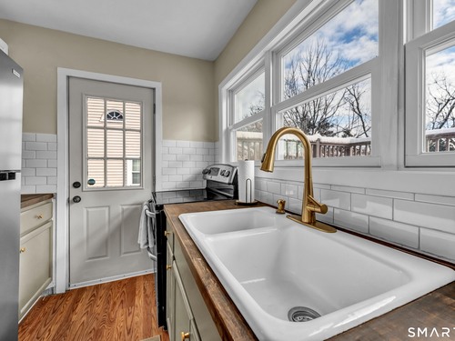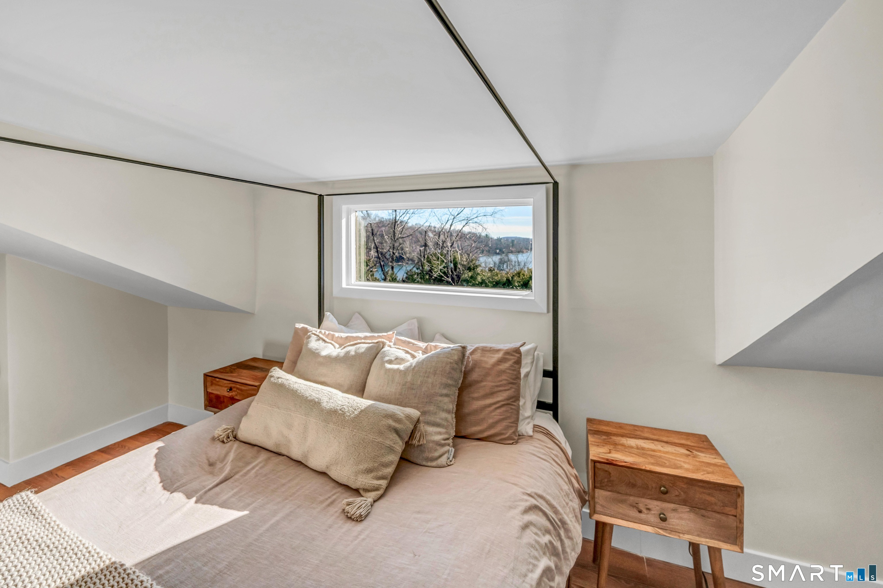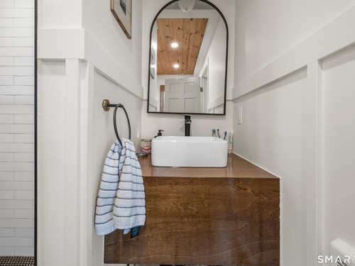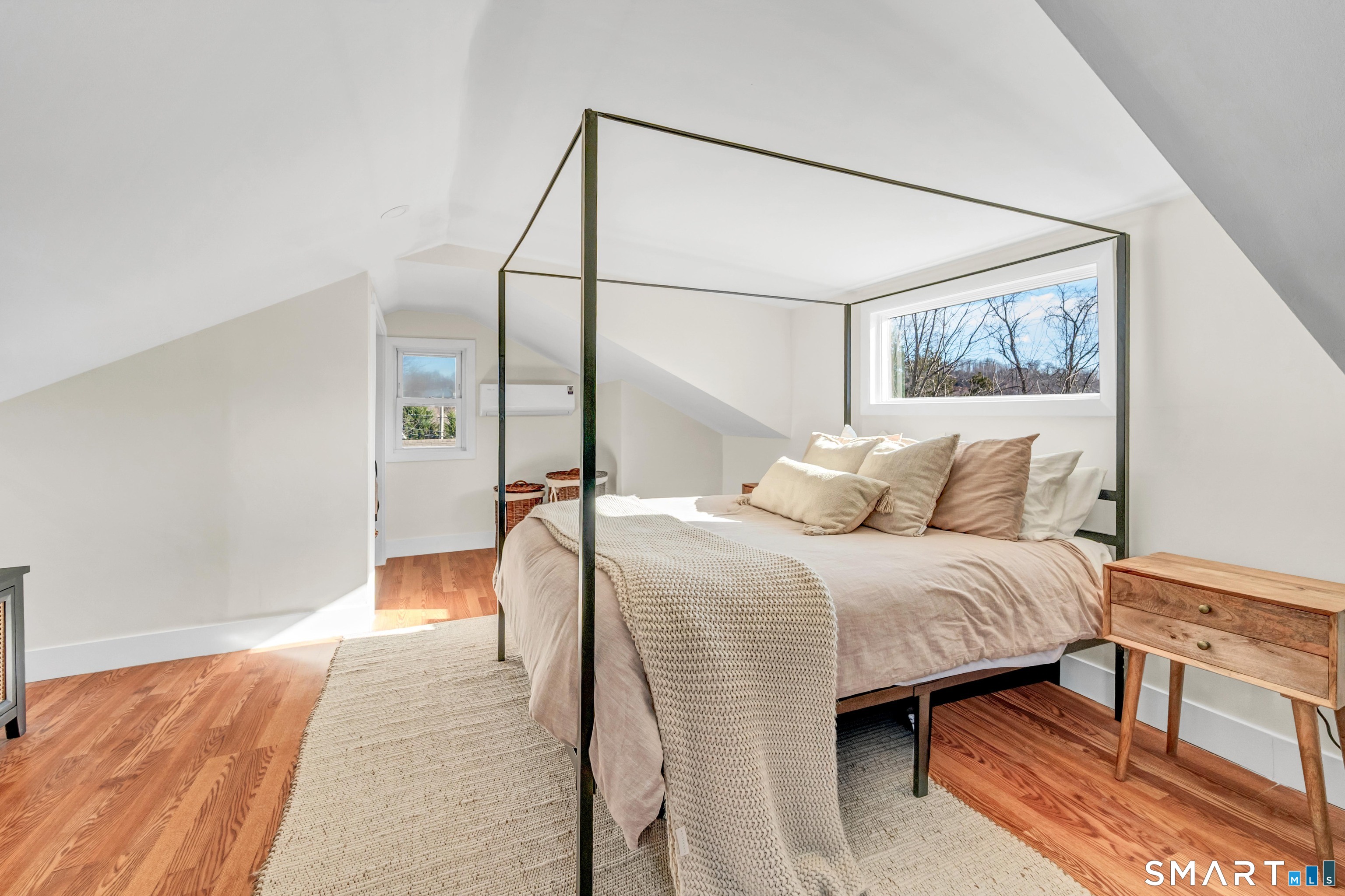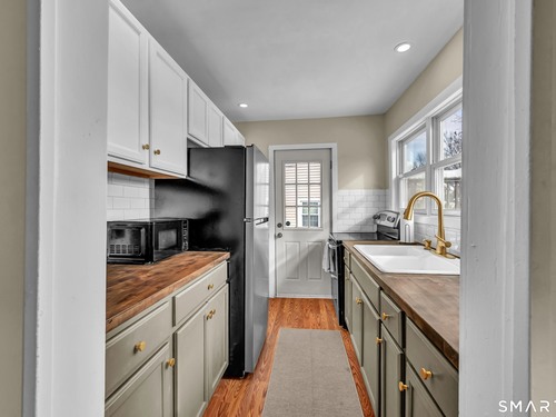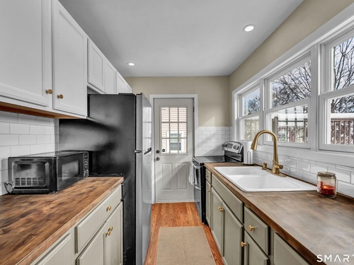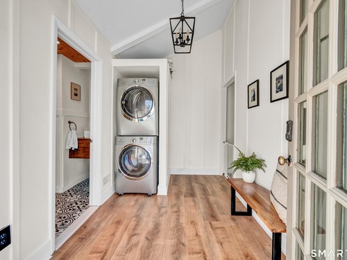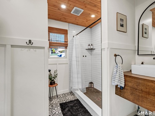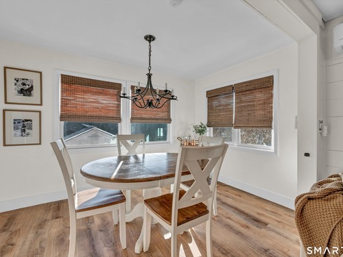 Beautifully updated and charming home in the coveted Candlewood Knolls community on Candlewood Lake. As you enter this special home you're greeted by a convenient mudroom with laundry, new trim work and vaulted ceilings. There is also access to the gorgeous full bathroom with new tile, shower and vanity. Around the corner you'll find a large living room with recessed lighting, new flooring and a cozy, built-in heated electric fireplace. The living room opens to the dining room and newly updated kitchen with new refrigerator, tile backsplash and butcher block countertop, plus two bedrooms. Upstairs offers a lovely primary bedroom with a stunning panoramic window with distant views of Candlewood and the surrounding mountains and islands. There is a back deck and level grassy yard for outdoor entertaining, plus off street parking in front and storage under the deck. Individual heating/ac mini splits in each room for customized temperature control. Located just 10 minutes to I-84/684 and the NY line for an easy commute and 75 minutes to Manhattan. Candlewood Knolls is a one of the only gated communities on the lake, with private boat docks and slips for residents and access to numerous community activities and events, including a summer camp, tennis courts, baseball field, basketball court, playground, three sandy beaches and a clubhouse overlooking the lake for private events. A perfect home for year-round living or as a vacation getaway!