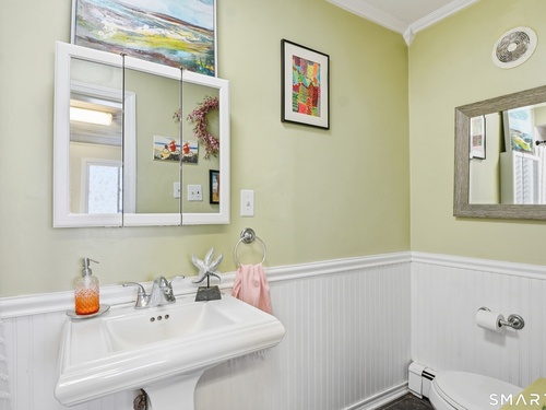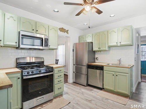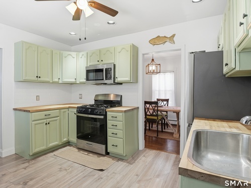 Welcome to Paradise Green! This beautifully updated Colonial offers a perfect blend of classic charm and modern improvements. The sun-filled kitchen features brand-new butcher block countertops, new appliances, and a bow window that fills the space with natural light. Just off the kitchen is a convenient laundry/mudroom with electric heat, along with a full bathroom. The second floor includes two bedrooms, one boasting two walk-in closets, and a shared full bathroom with tub and shower. The finished third-floor attic provides two rooms with vaulted ceilings-ideal for home offices, guest space, or hobbies. Recent updates include a new furnace, water heater, chimney, radon mitigation system, and a solar system for added efficiency. Outside, enjoy a fully fenced backyard perfect for relaxing or entertaining. Conveniently located within walking distance to the train station for easy commuting. A move-in-ready home with space, updates, and location all in one.