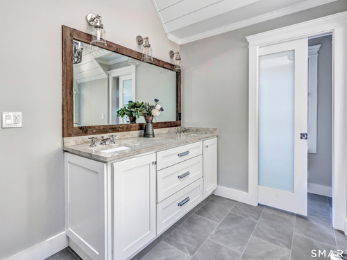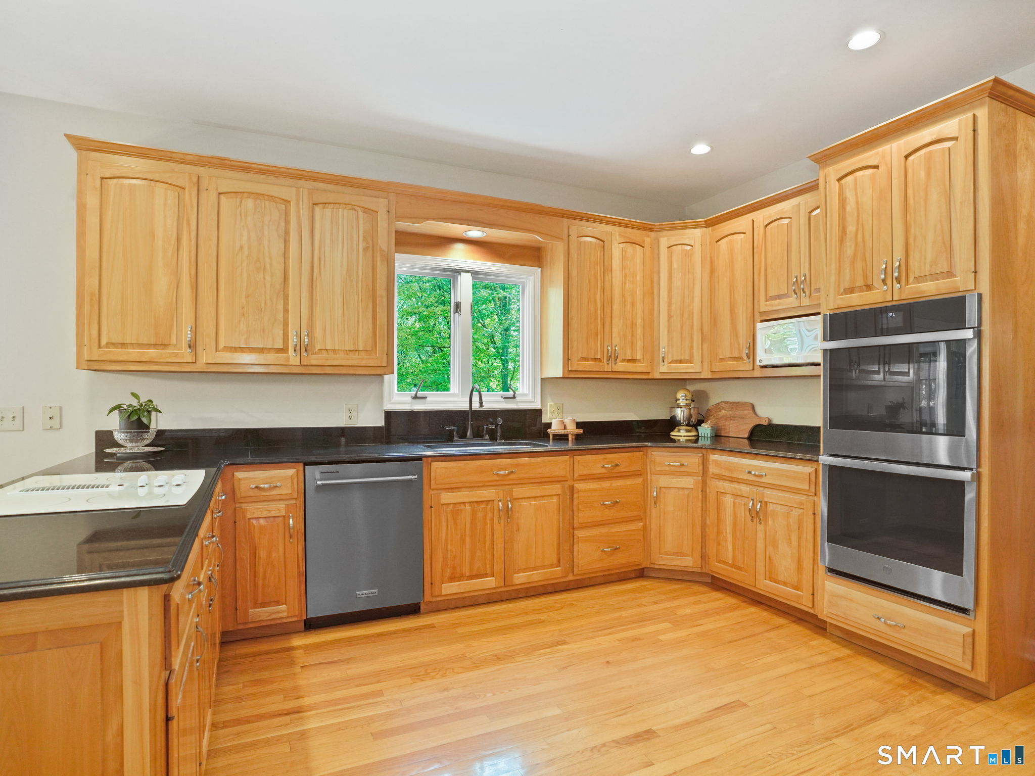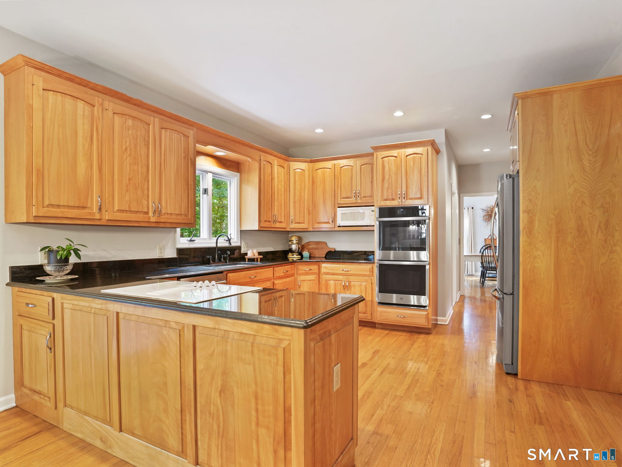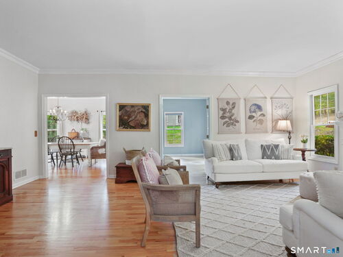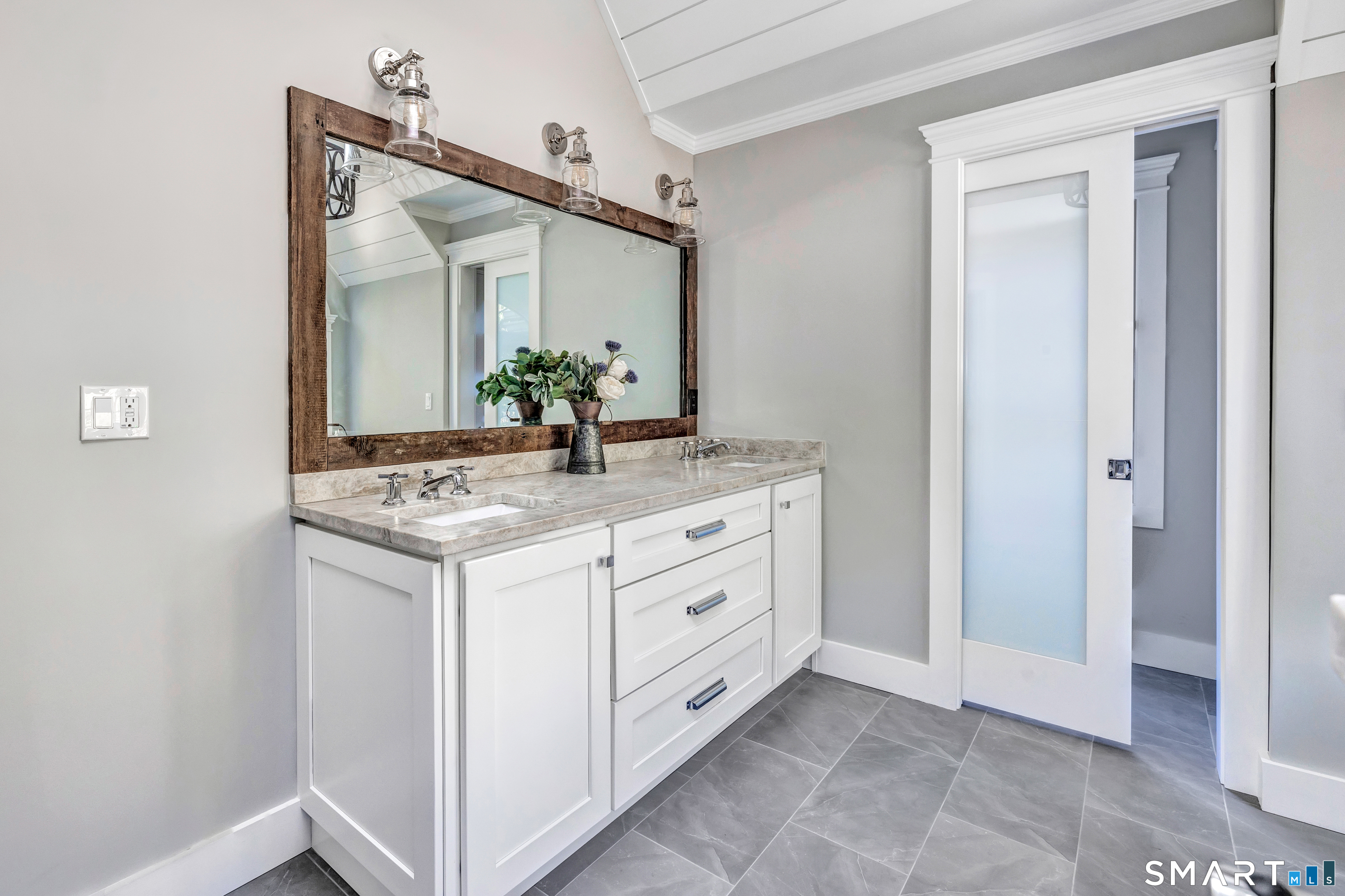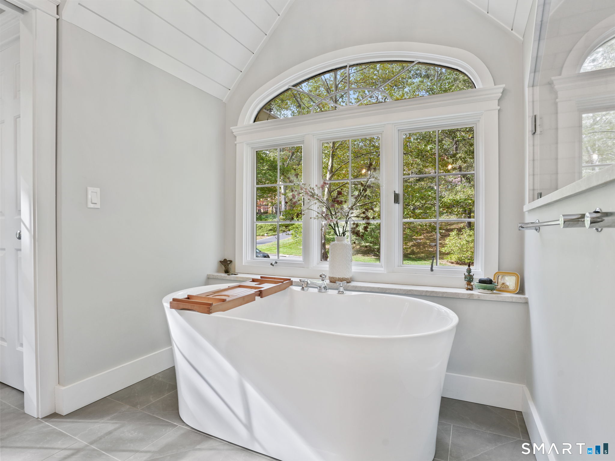 Coventry Lane, a cul-de-sac setting in Trumbull's coveted Tashua neighborhood, known for its estate-style homes and just moments to golf, pool, tennis, pickleball, and more. From the curb, the architectural presence stands out w/ intricate rooflines & detail that set the tone. A dramatic two-story foyer w/ sweeping staircase opens to an inviting, well-designed layout. The living room is anchored by a fireplace, offering a comfortable yet refined space. The kitchen is built for everyday living and entertaining, featuring extensive cabinetry, a full corridor of cabinet/counter space, double ovens, and an eat-in area centered on a triple-panel slider to the deck. Just a few steps up, the vaulted family room steals the show with a bold brick fireplace and custom wet bar with glass cabinetry and wine storage. Private main level office behind French doors. Upstairs offers 4 bedrooms, including a fully remodeled hall bath w/ double vanity & modern finishes. The primary suite is impressive beyond measure- vaulted ceilings, architectural windows & a custom walk-in closet- built w/ cabinetry and countertop space. The primary bath is exceptional, completely renovated w/ a soaking tub set beneath a statement window, frameless glass shower, heated floors & high-end finishes throughout, a true retreat. Set on a private, tree-lined acre w/ multi-tiered deck & expansive paver patio built for entertaining. Where elevated design, refined space, and effortless flow come together. Welcome home!