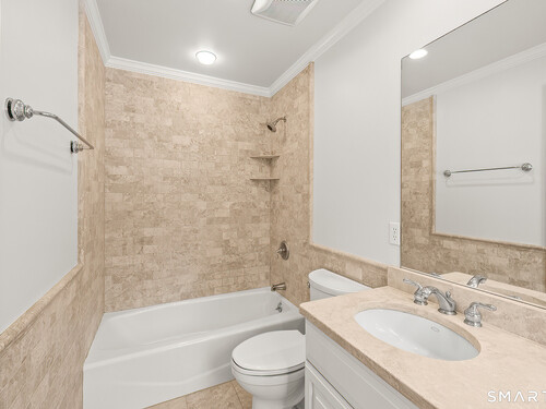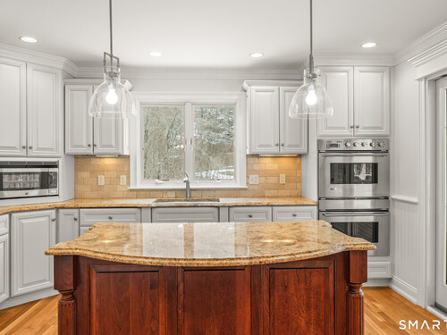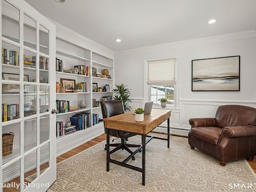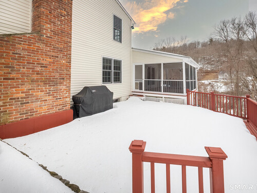 Tucked at the end of a cul-de-sac, this impeccably maintained Colonial offers a seamless blend of privacy, sophistication, and effortless indoor-outdoor living. With four bedrooms, two-and-a-half baths, and a private home office, the layout is both refined and highly functional, designed for the way we live today. Thoughtful custom millwork showcased throughout the home creates a sense of timeless elegance from room to room. The formal living room features architectural detail, including crown and chair rail molding, a gas fireplace, and a wet bar with direct access to the expansive wraparound deck perfect for entertaining on any scale. The beautifully appointed kitchen offers granite countertops, a center island, and an open flow into the dining and family rooms, creating an inviting space for both everyday living and special gatherings. The family room is anchored by a striking stone wood-burning fireplace, adding warmth and character. Sliding glass doors in multiple rooms provide a graceful transition to the screened porch, ideal for alfresco dining and relaxed evenings. Outdoors, the terraced deck overlooks a backyard retreat. A heated pool, framed by dramatic stone walls and cypress trees, evokes a resort-inspired setting designed for relaxation and unforgettable summers. A finished basement adds valuable flexibility, offering additional space for recreation, fitness, media, or whatever your lifestyle requires.