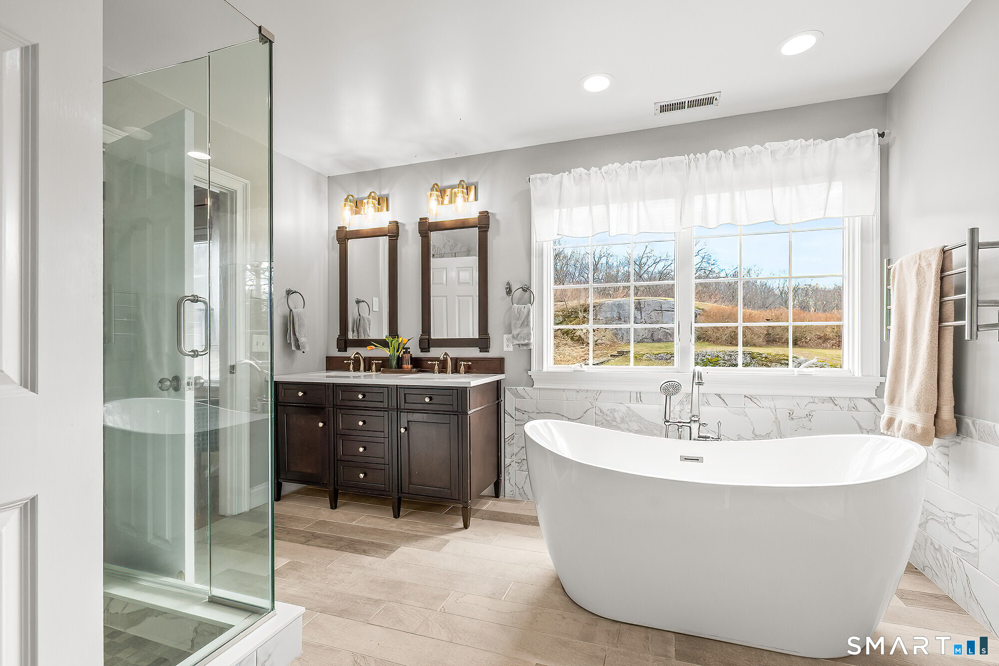 Custom-built in 2004 and meticulously maintained, this 2.18-acre home offers a true escape from the everyday. Surrounded by perennial gardens, stone walls, and specimen trees, the grounds are anchored by a stunning stone patio-your own private sanctuary for quiet mornings or lively entertaining. Inside, discover 3,669 square feet of sun-drenched living space featuring 11 rooms, 4 bedrooms, and 2.5 baths. The first floor boasts an effortless layout, including a private library/office, formal living and dining rooms, and a gourmet kitchen with new appliances. The kitchen's center island and breakfast area transition seamlessly into the family room, where a gas fireplace creates a cozy focal point. And did we mention the four-season sunroom, with views of the expansive lawn and patio? The second level is home to a luxurious primary suite featuring a spa-like bath with a soaking tub, oversized glass shower, and double walk-in closets. Three additional spacious bedrooms provide plenty of room for family or guests. Notably, the property features a 5-bedroom septic system, offering potential for future expansion. Added features include a 3-car garage, 9-foot ceilings, custom millwork, cooper roof overhangs, expansive unfinished basement (imagine the potential), and an irrigation system. Located across the street from Huntington State Park, you have access to over 1,000 acres of trails and scenic ponds. The home is also centrally located to NYC (car or train) and down county.