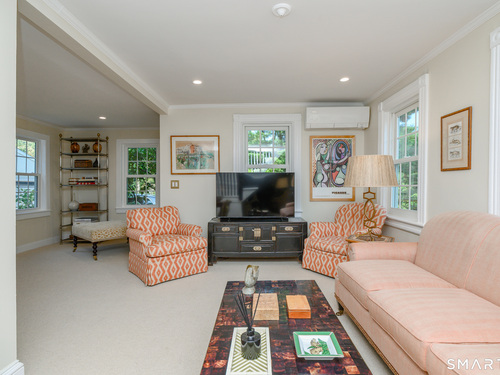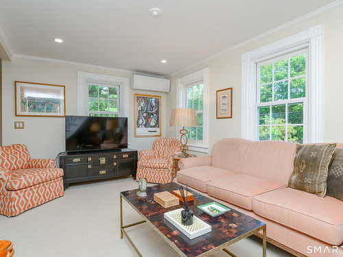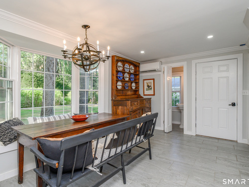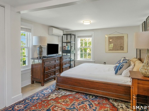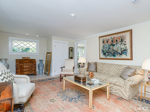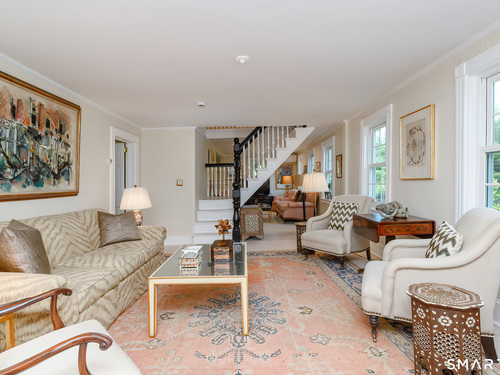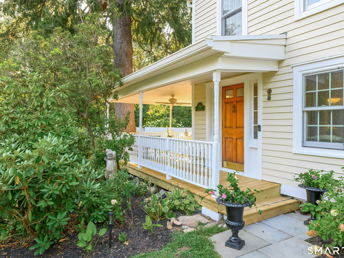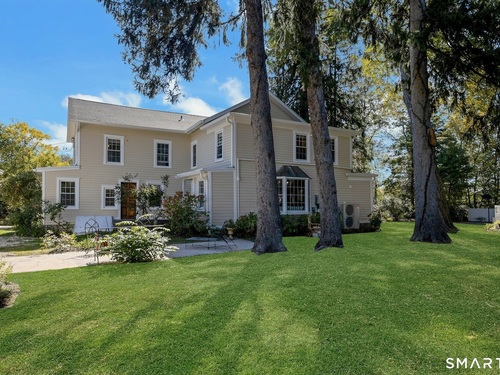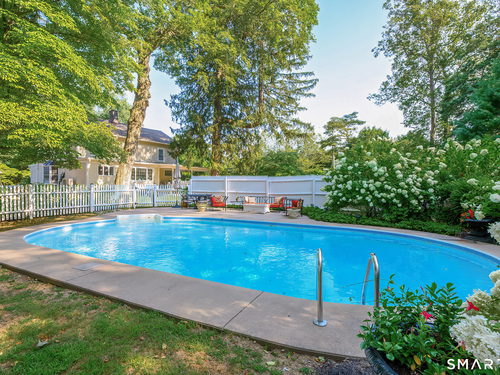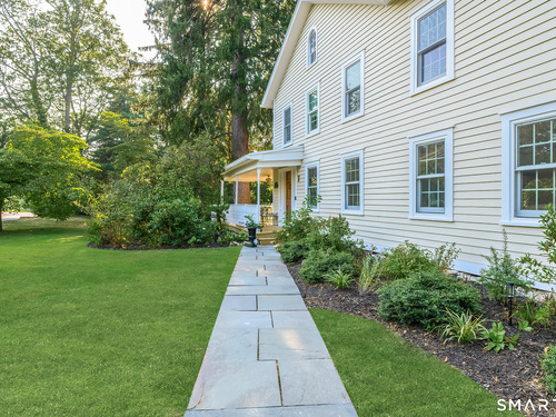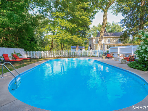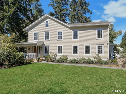 A classic 18th-century New England farmhouse, reimagined for the 21st century after a comprehensive five-year renovation. Thoughtfully modernized, the home retains its original character while seamlessly integrating contemporary comforts and style. Light-filled, open living spaces create an airy, modern feel, grounded by whitewashed Douglas fir flooring and anchored by a large, updated kitchen with a working fireplace. Generously sized bedrooms include a primary suite with a custom walk-in closet and a beautifully appointed bathroom featuring a soaking tub. Throughout the home, period details pay tribute to its rich heritage, while extensive mechanical upgrades ensure effortless, move-in-ready living. Set on a beautifully landscaped acre filled with mature trees and flowering shrubs, the property offers a peaceful retreat. A sun-drenched pool is discreetly nestled in the rear, and a charming covered porch provides the perfect setting for summer gatherings, quiet mornings, or evening entertaining. Additional highlights include an expansive walk-up attic offering potential for future expansion. Ideally located across from Waveny Park and just under two miles from downtown New Canaan and its top-rated schools.