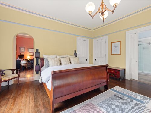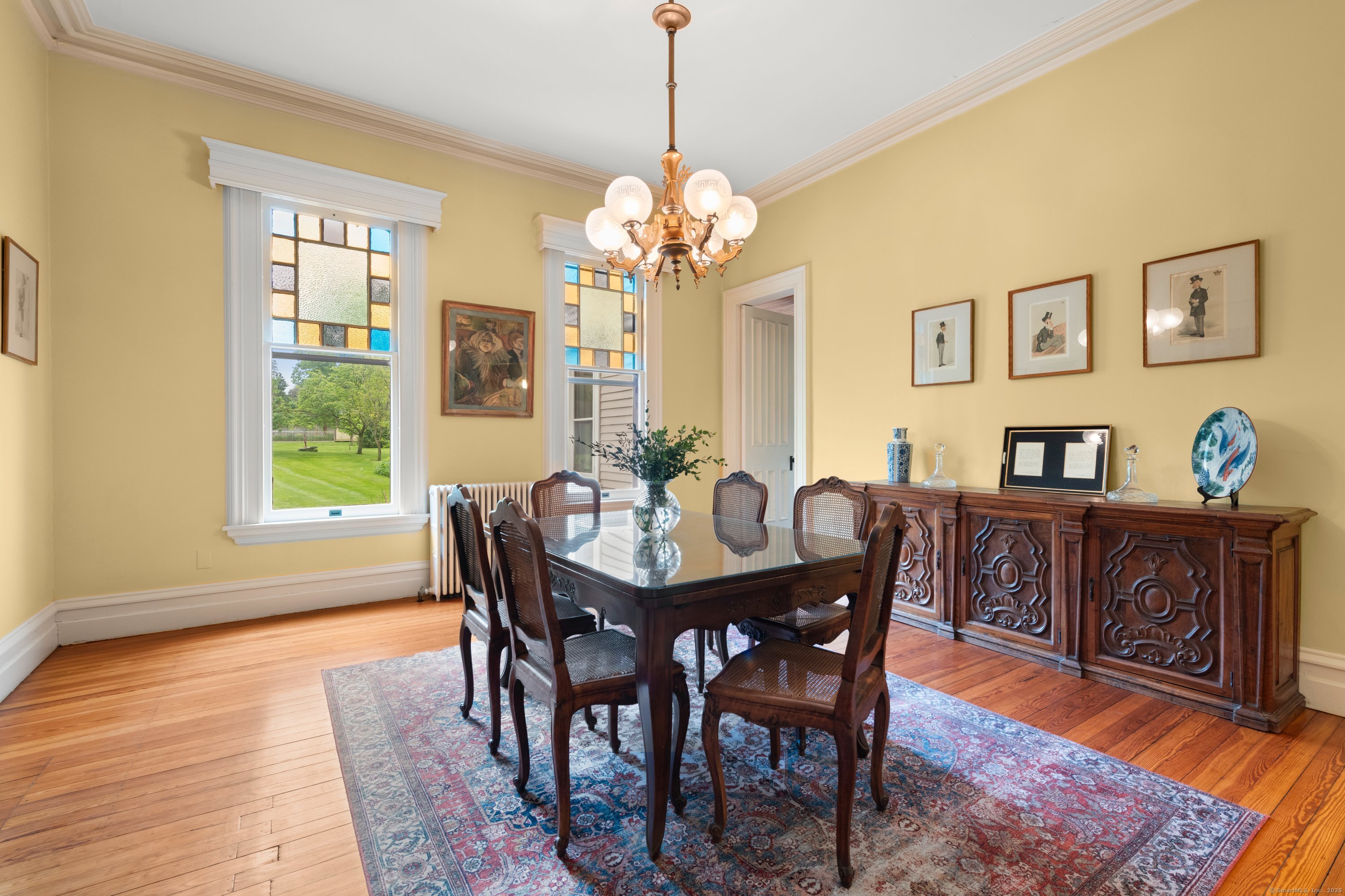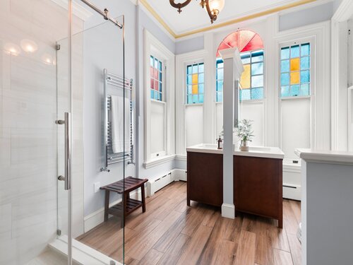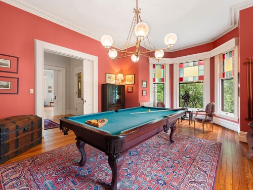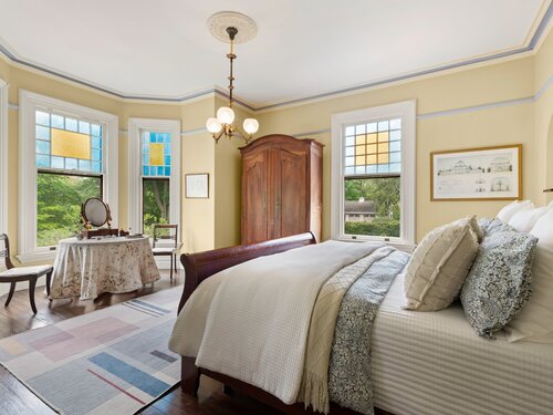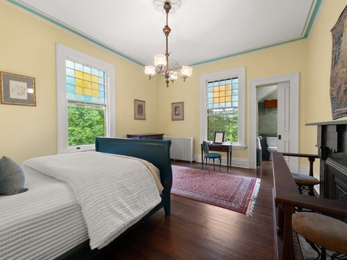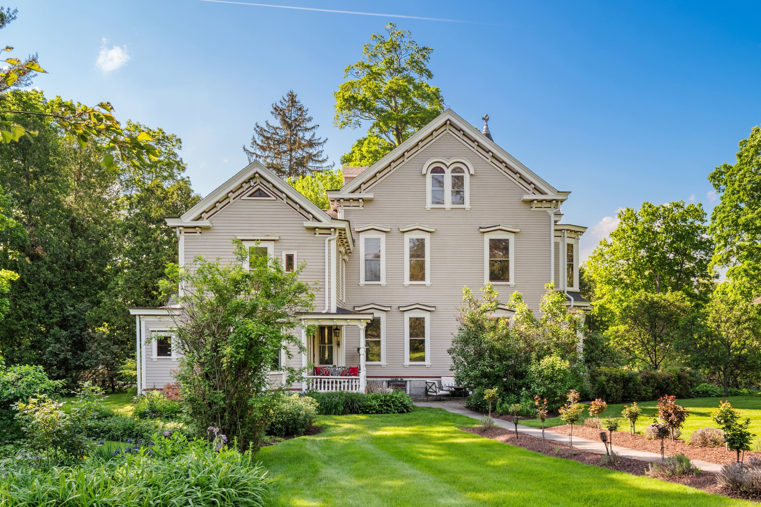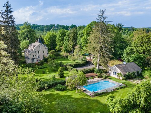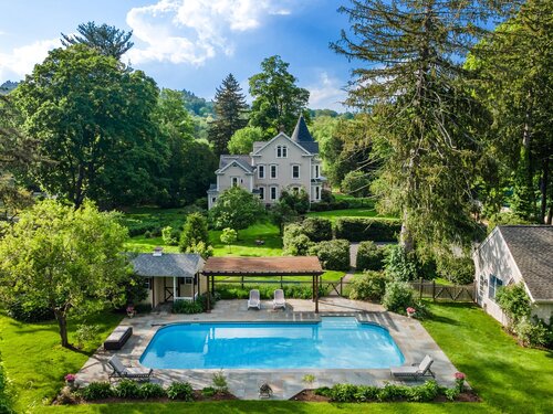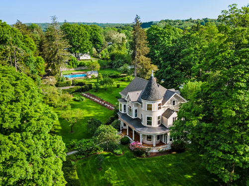 Welcome to one of Newtown's most iconic homes-where TIMELESS ELEGANCE meets unforgettable charm. Built in 1888 by New York City railroad director I.B. Harris and his wife Jane Glover Harris, a proud Newtown native and descendant of one of the town's founding families, this grand Victorian masterpiece is a living piece of local history. The home's stunning three-story tower with curved glass windows and its gracious wraparound porch set the stage for the remarkable beauty that awaits within. Every inch of this home tells a story. From its handcrafted details to the soaring ceilings, the heart of the residence is undoubtedly the breathtaking leaded stained-glass window at the staircase landing-a larger-than-life depiction of a peasant woman in vivid color. With 6 generously sized bedrooms and 3.5 beautifully updated baths, there's room for both grand entertaining and comfortable living. The chef's kitchen has been thoughtfully renovated, featuring high-end appliances. Outside, discover a private sanctuary, lush gardens, fruit trees, and a sparkling in-ground pool. The detached, oversized three car garage offers endless possibilities for storage or a workshop. This home has been lovingly maintained, with a new wood roof and countless thoughtful updates. This is a rare opportunity for anyone who would love to live in the Newtown Borough with city water, sewer & natural gas heat. Don't miss your chance to own a true architectural gem, steps from everything Newtown has to offer!