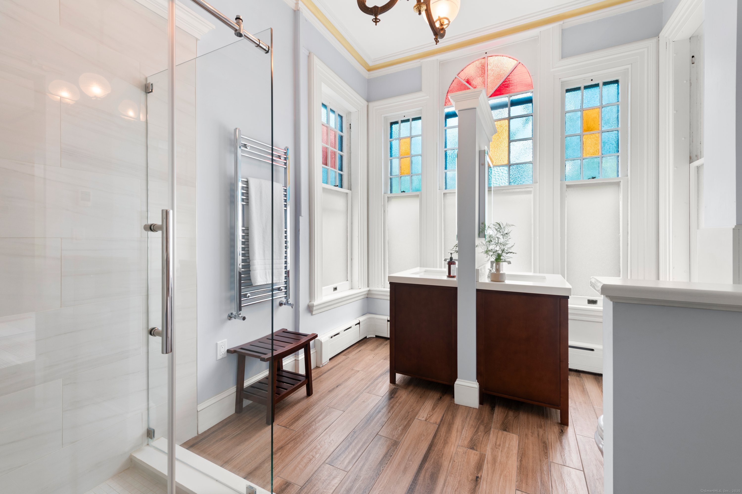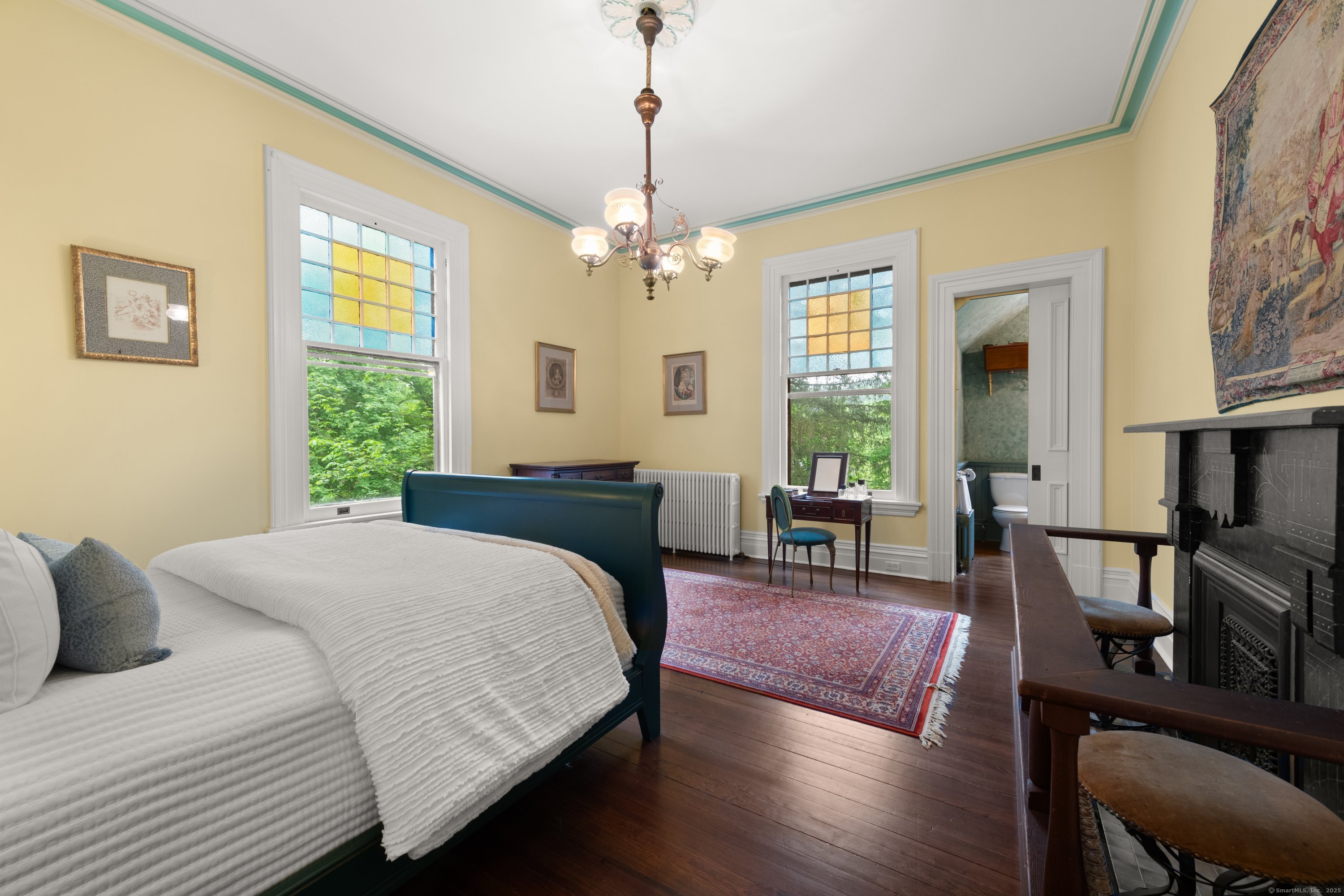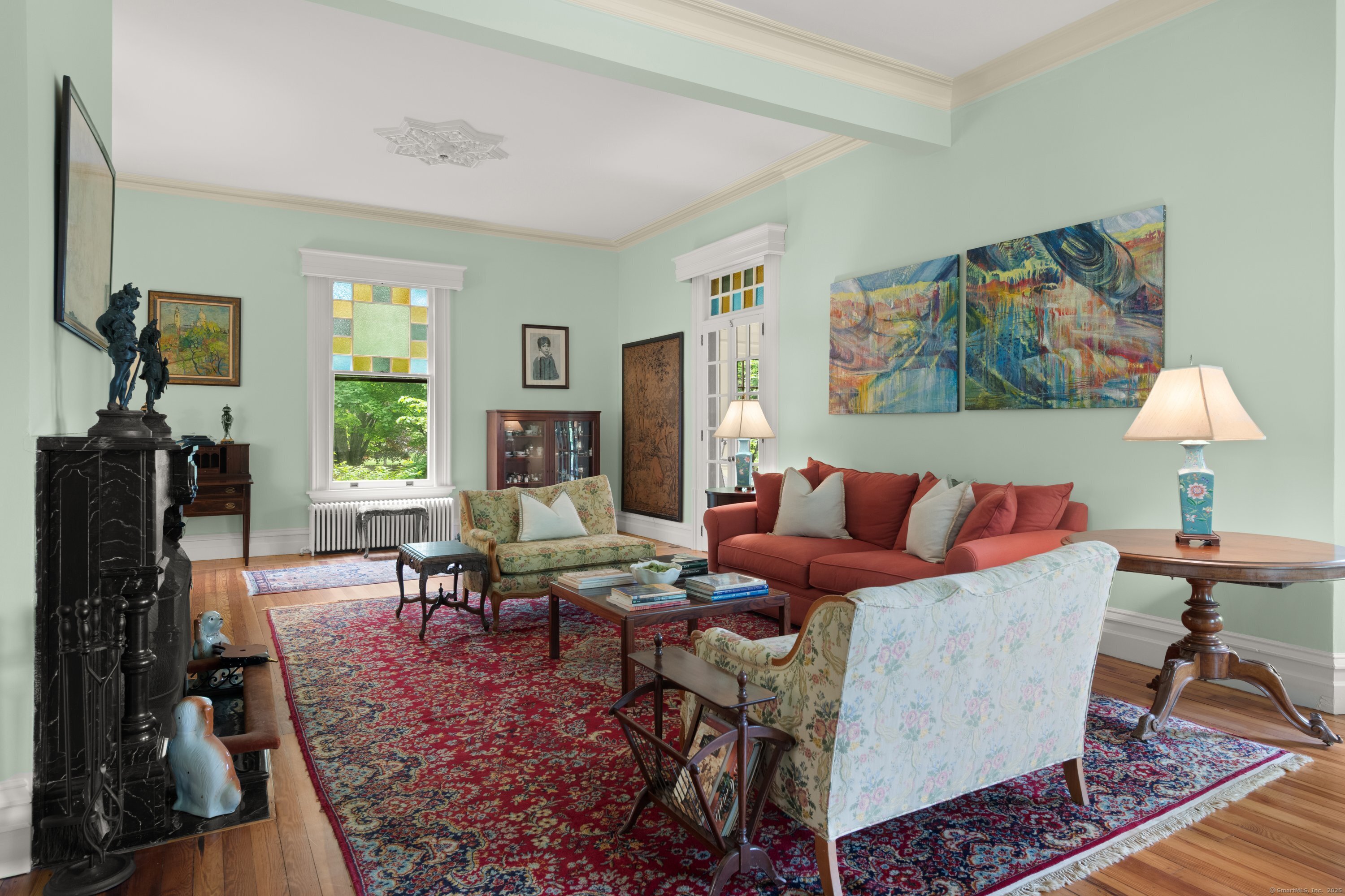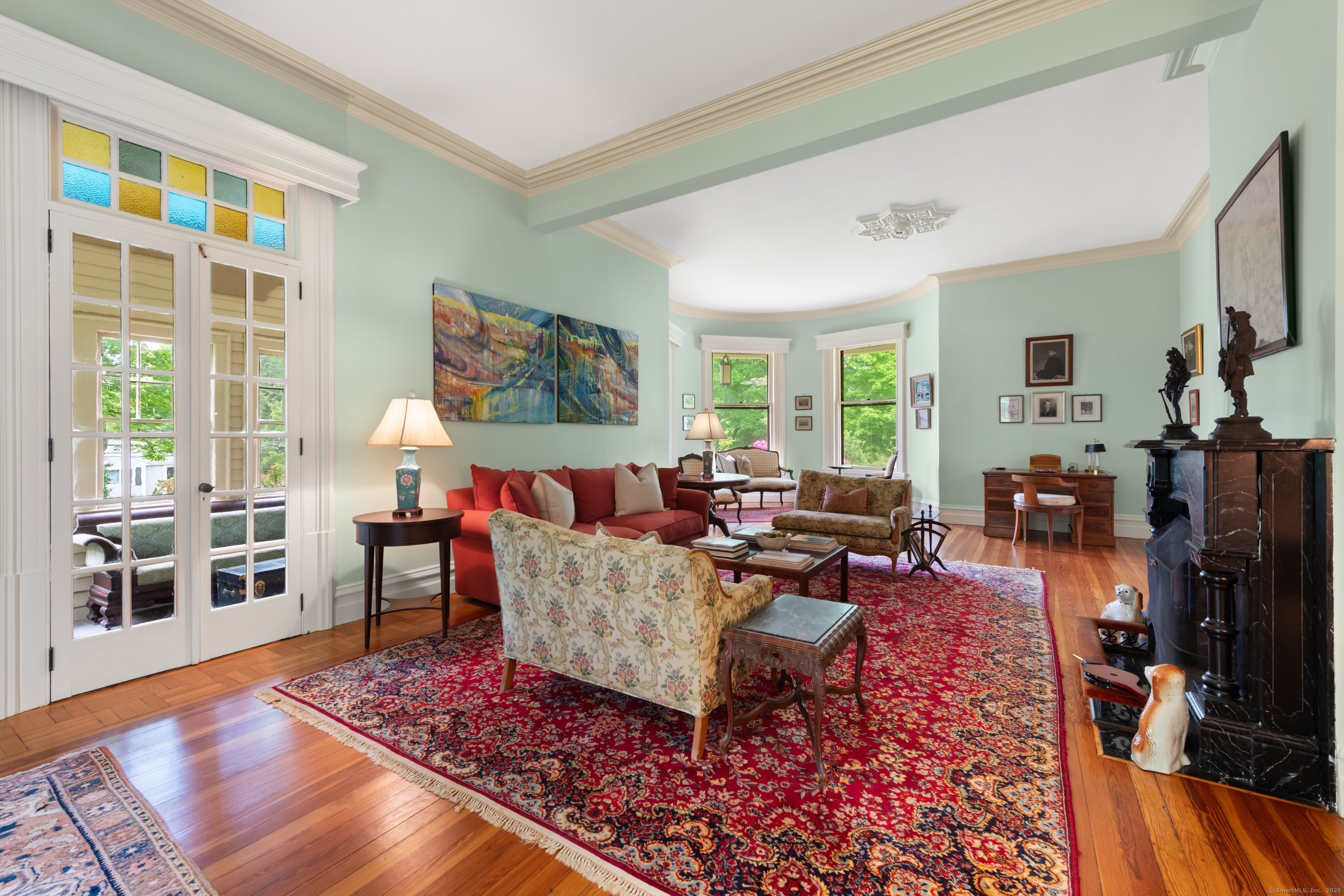 Welcome to one of Newtown's most iconic homes-where TIMELESS ELEGANCE meets unforgettable charm. Built in 1888 by New York City railroad director I.B. Harris and his wife Jane Glover Harris, a proud Newtown native and descendant of one of the town's founding families, this grand Victorian masterpiece is a living piece of local history. The home's stunning three-story tower with curved glass windows and its gracious wraparound porch set the stage for the remarkable beauty that awaits within. Every inch of this home tells a story. From its handcrafted details to the soaring ceilings, the heart of the residence is undoubtedly the breathtaking leaded stained-glass window at the staircase landing-a larger-than-life depiction of a peasant woman in vivid color. With 6 generously sized bedrooms and 3.5 beautifully updated baths, there's room for both grand entertaining and comfortable living. The chef's kitchen has been thoughtfully renovated, featuring high-end appliances. Outside, discover a private sanctuary, lush gardens, fruit trees, and a sparkling in-ground pool. The detached, oversized three car garage offers endless possibilities for storage or a workshop. This home has been lovingly maintained, with a new wood roof and countless thoughtful updates. This is a rare opportunity for anyone who would love to live in the Newtown Borough with city water, sewer & natural gas heat. Don't miss your chance to own a true architectural gem, steps from everything Newtown has to offer!