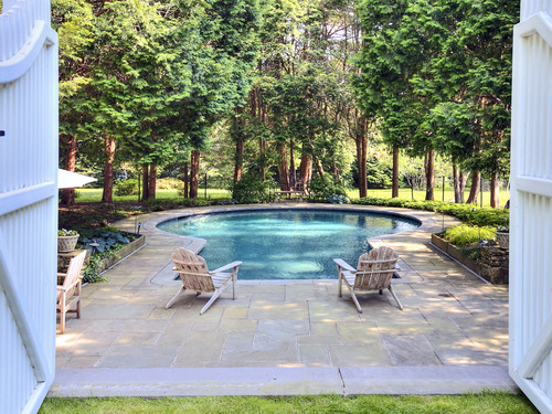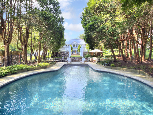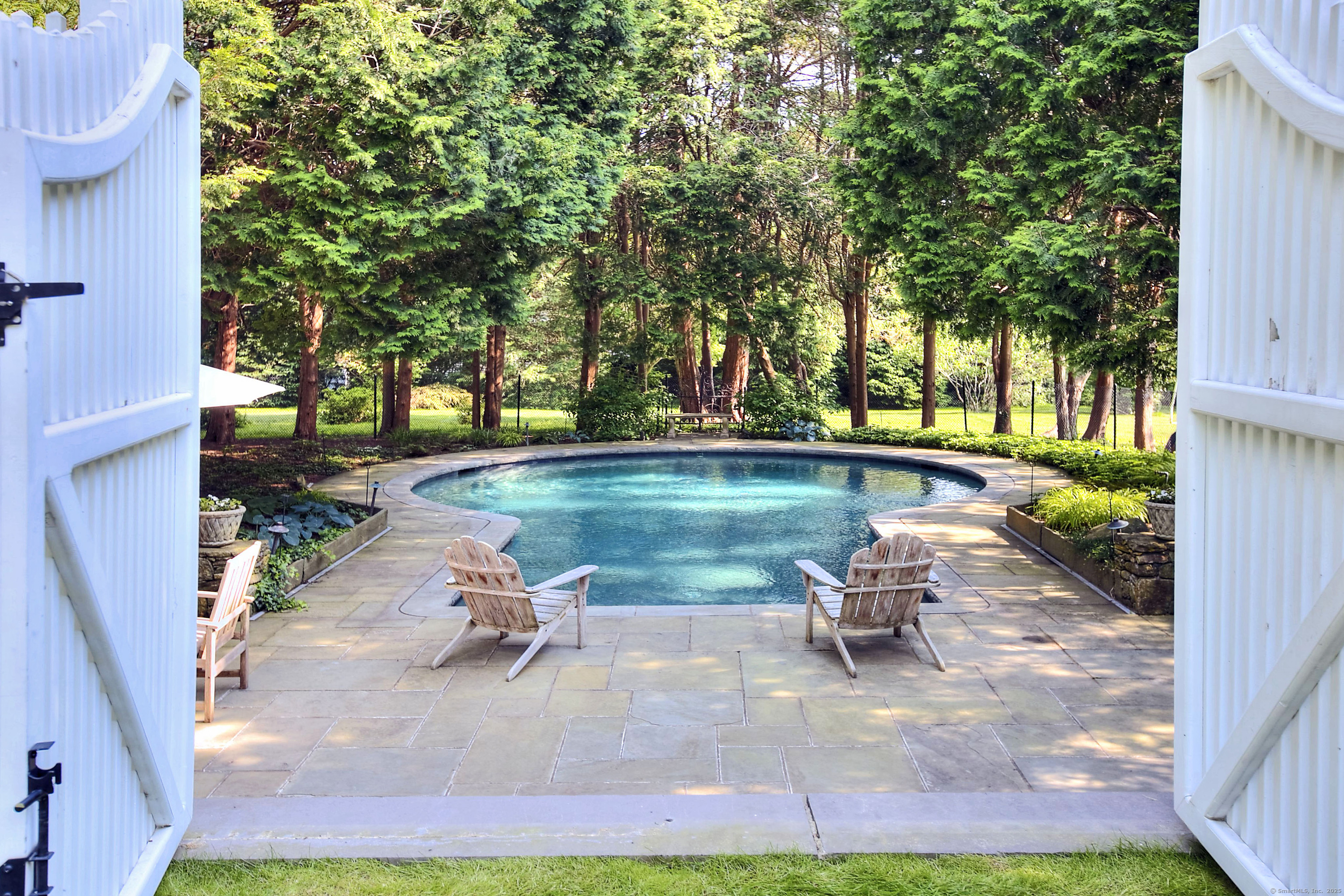 In the heart of Greenfield Hill proper at the top of Bronson Road, this special and truly unique estate presents a rare opportunity in one of Fairfield's most coveted locations. Set on just over two acres of beautifully landscaped, professionally photographed grounds, the property reflects a timeless elegance that would be costly to replicate today. Across from a distinguished equestrian family compound and abutting the Greenfield Hill Historic District, the setting offers both distinction and privacy. This historic home has been thoughtfully expanded, restored, and renovated over the years, blending irreplaceable old world craftsmanship with modern comfort. High ceilings, wide plank floors, intricate moldings, arched entries, and abundant natural light create a refined yet inviting atmosphere. Notable spaces include a cherry library, formal dining room, gracious family and living rooms anchored by two brick chimneys and five fireplaces, an expansive kitchen, and elegant entertaining areas throughout. Outdoors, enjoy a bluestone patio with pergola, ideal for al fresco dining and relaxed gatherings. Adding to the property's uniqueness is a recently rebuilt pool house featuring a kitchenette, family room, recreation room, art studio, home office, and 1.5 baths. The romantic keyhole shaped gunite pool is framed by stone walls and lush gardens, creating a private retreat.