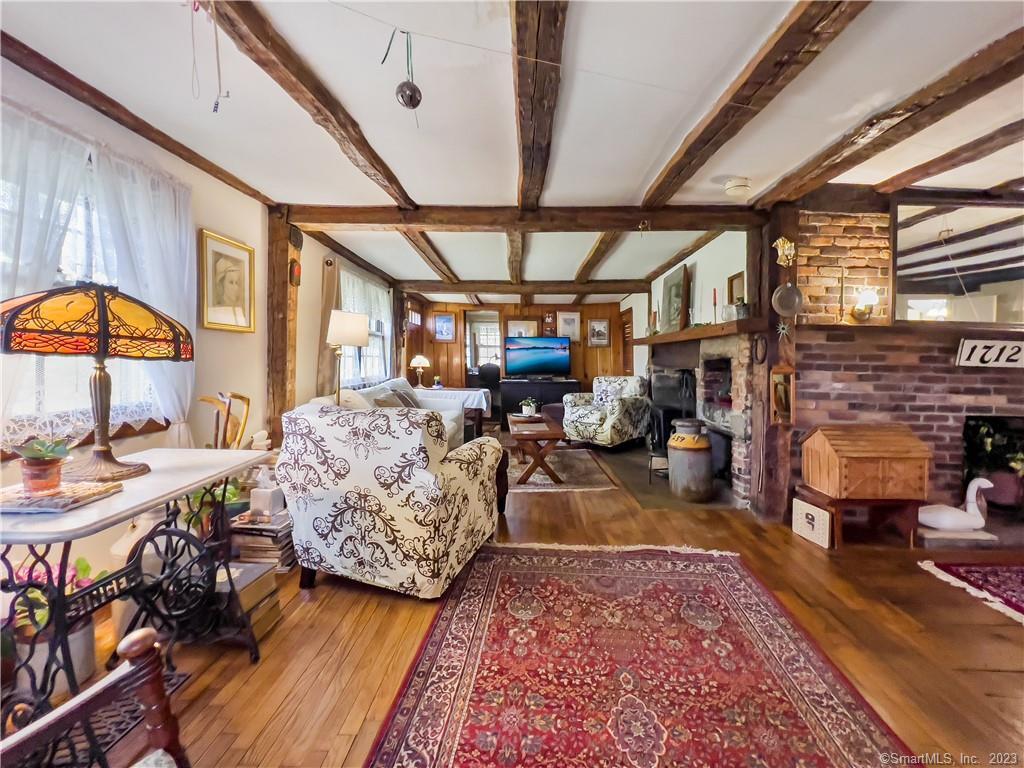 Charming 1712 antique salt box home, ideally located just a few minutes from center of town and offering easy access to RT 25 and I-84, This 25 acre working hobby farm is a piece of Newtown history. Only two families have ever owned this property. The land was originally deeded to the Wheelers, one of the first families to settle in Newtown. The current owners (The Sedors) purchased the farm in 1910 and are 5th generation farm owners. The main home captures the charm of yester year along with some modern conveniences. The original oak floors, the hand hewn beams, and four fireplaces with a Dutch oven remain like a time capsule to the era. There are two updated bathrooms and an updated kitchen with cathedral ceiling. Additional improvements include high efficiency heating system and new insulation in the attic in 2015. Main level bedroom and washer dryer with walk in closet with lots of storage. Large stone patio with hot tub overlooks the amazing property filled with stone walkways, stone walls and vintage flower beads. This beautiful 25 acre property includes a two story - 3 bay antique barn, a newer three bay tin barn, a shed, chicken coop, outhouse, cottage, cabin, 5 garages and three wells. You get a park like feel when you walk the land. Do not miss your once in a lifetime opportunity to own this beautiful property in the heart of Newtown.
