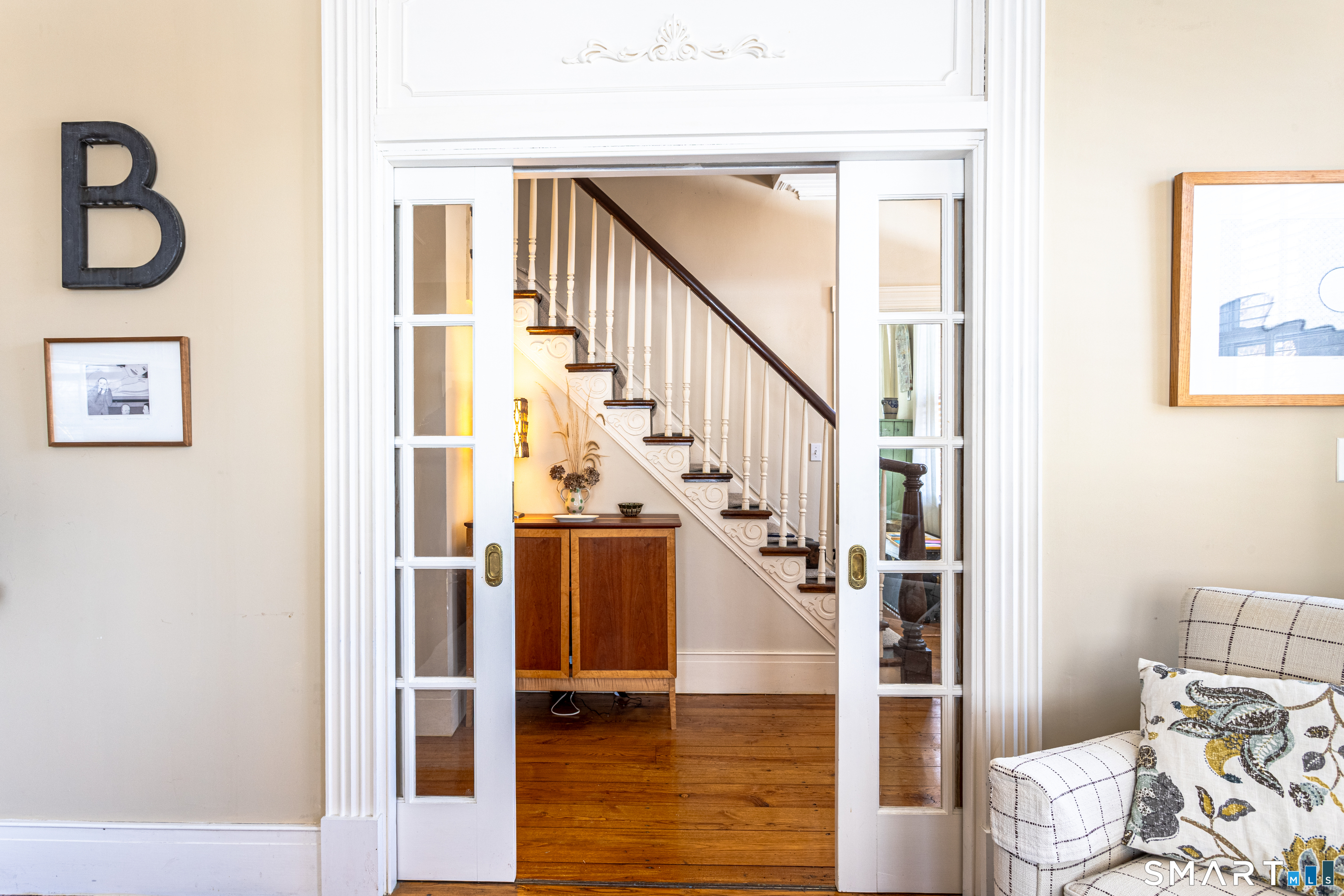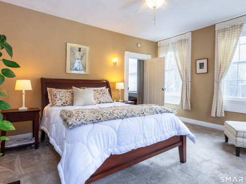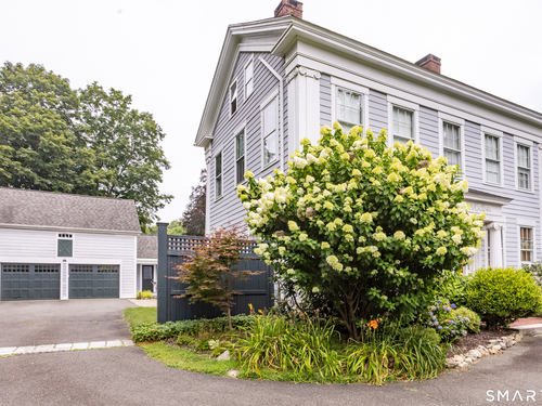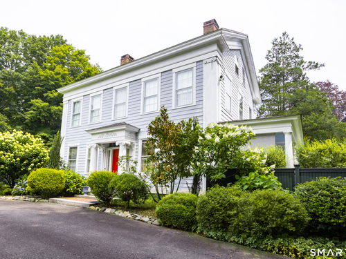 Welcome to this exceptional estate-style property where historic charm meets modern comfort. Set on over an acre of beautifully landscaped grounds, this unique offering provides outstanding flexibility and future expansion potential. The property includes a 3,000+ sq ft main residence, an 800+ sq ft guest house, and a detached two-car garage with workshop and full attic for added storage. The stately Greek Revival main home showcases timeless architectural details, including 9-foot ceilings, oversized windows, gleaming hardwood floors, elegant fireplaces, and intricate wood moldings. Thoughtful updates include stainless steel appliances, granite countertops, and central AC upstairs. The versatile rear wing offers flexible living space ideal for an in-law suite, au pair quarters, or private home offices. Outdoor entertaining is effortless with a covered porch, stone patio with built-in grill, privacy fencing, and level grounds that create a serene, retreat-like setting. Across the lawn, the charming one-bedroom guest house - a converted historic schoolhouse - features its own deck, laundry, and private driveway. Currently income-producing, it also offers excellent options for multigenerational living or extended stays. Warm, inviting, and rich with character, this remarkable property blends historic elegance with modern convenience, delivering space, privacy, and endless possibilities. Don't miss the opportunity to make this extraordinary estate your own.