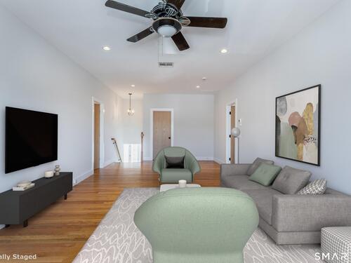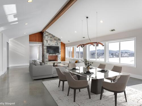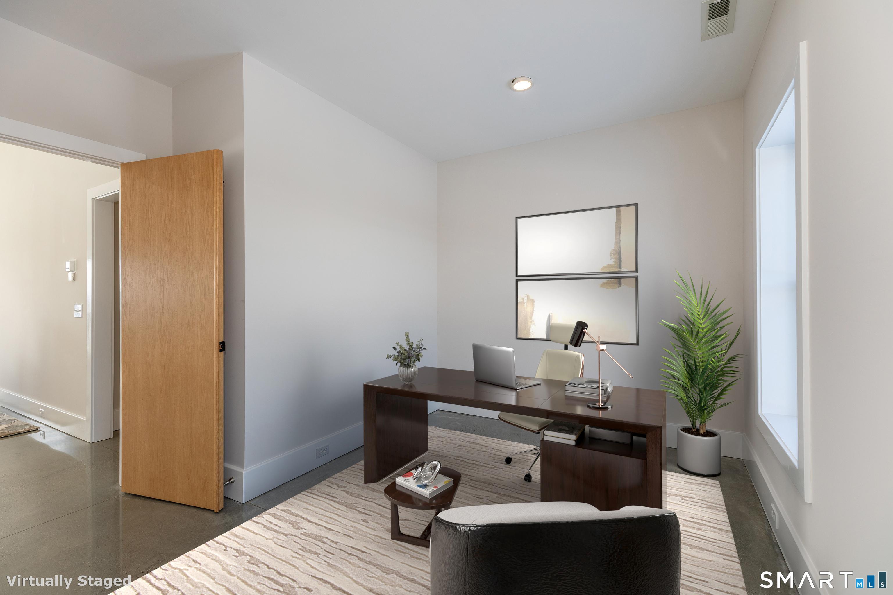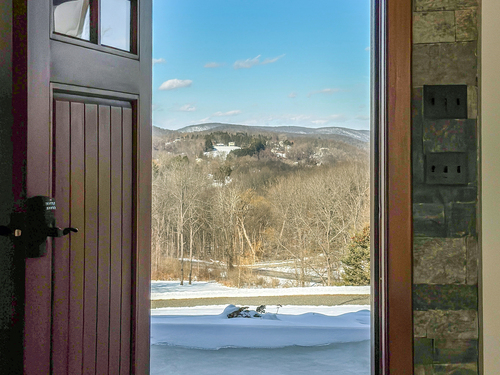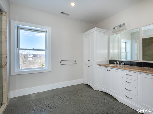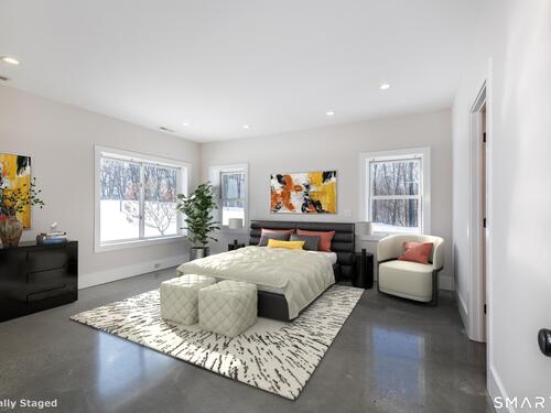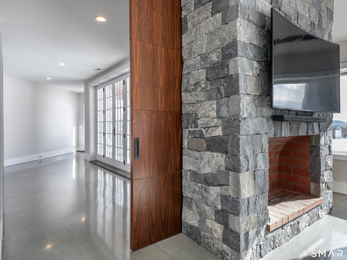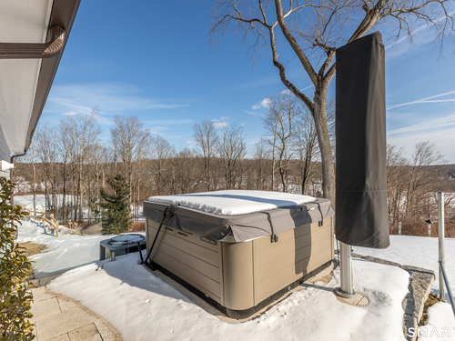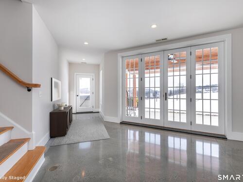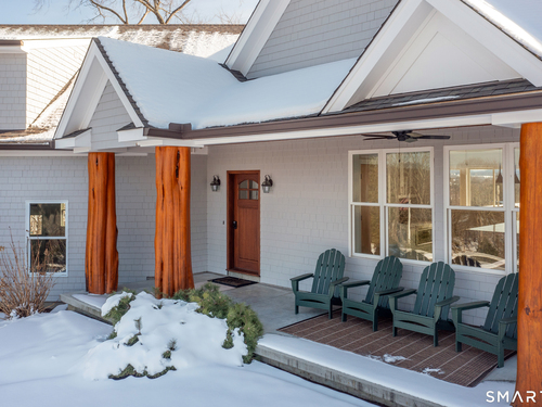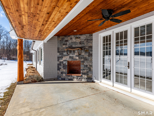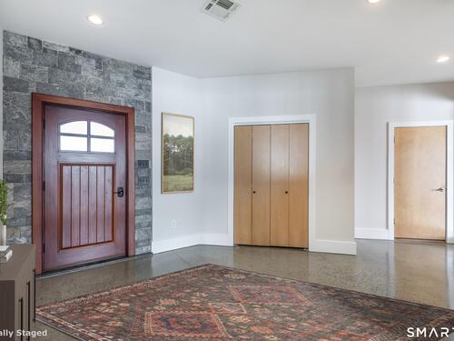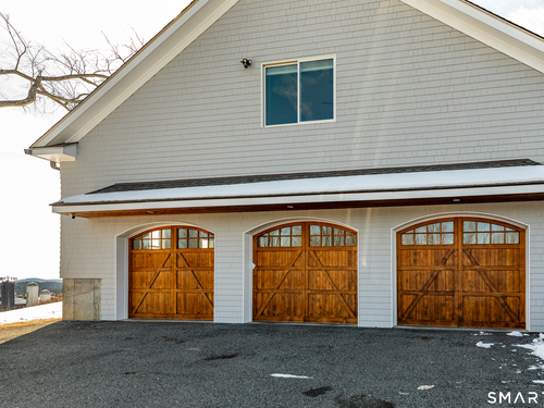 Beautifully sited on a gentle rise, this striking Contemporary commands sweeping panoramic views of the surrounding landscape. The home overlooks the iconic Happy Acres Farm, permanently preserved by the Town of Sherman, ensuring timeless pastoral vistas. The open floor plan features three bedrooms, including a main-level primary suite, three full and two half baths, a main-level study, and a dramatic living/dining space with vaulted ceilings and a stone-faced, double-sided bio-ethanol fireplace. The sleek kitchen includes quartz countertops, bar seating, a walk-in pantry, and top-tier SS appliances. The main level's polished concrete floors and walls of oversized windows frame stunning front and rear views, filling the home with natural light. Upstairs are two en suite bedrooms with a large, shared sitting/playroom. Additional features include a walk-up attic with excellent expansion potential, radiant heat throughout the home and three-car garage, plus a separate laundry room. Outdoor living is equally inviting with an eight-person hot tub overlooking the rolling countryside and French doors opening to a covered patio with an outdoor fireplace. There is also your own golf tee! Freshly stained exteriors and newly painted interiors create an elegant, turnkey, move-in-ready residence. Ideally located just 90 minutes from Manhattan and minutes to NYC trains.