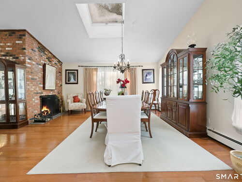 Welcome to 15 Glenarden Road in "Hillandale", ideally positioned in one of Trumbull's most desirable neighborhoods! Custom contemporary styling with an inviting open concept layout, perfectly suited for everyday living & guest entertaining. With close proximity to award-winning schools, expansive town parks, and commuter access ease, this location is ideal. Step into an inviting entryway setting the tone for a warm & welcoming feel. The updated kitchen features stainless steel appliances, "Corian" countertops, hardwood floor and expansive windows facing east into the sun filled dining area to enjoy casual meals. Entertain with ease in the formal dining room, complete with a stunning double-sided floor to ceiling brick fireplace, shared with the adjacent vaulted ceiling family room, a seamless feel for gatherings and cozy nights in. The primary suite with private bathroom, along with two additional family bedrooms share a nicely appointed hall bath. The additional 4th bedroom with adjacent full bath, is found in the lower level, a perfect fit for guest privacy. The fully finished lower level again offers an open concept layout with direct slider door access to the deck and rear yard. Truly a unique offering for those seeking a special place to call home!! Agents, please see "agent only" remarks.