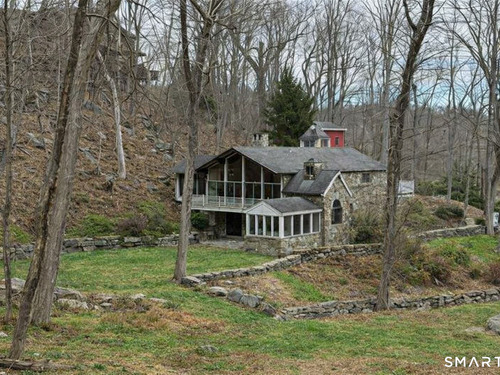This exceptional stone home, blending contemporary design with natural tranquility, sits on 2 private acres in Weston. Expertly engineered & beautifully constructed, the home welcomes you through a dramatic two-story foyer into a sun-filled living room with floor-to-cathedral windows, a custom two-sided fireplace, and sweeping woodland views. Open chef's kitchen features granite countertops, custom cabinetry, granite center island, premium built-in appliances: Sub-Zero, Thermador stoves, Miele cappuccino station, warming oven, steamer. The large dining room offers perfect space for entertaining. Main level includes three bedrooms, highlighted by a spacious primary suite w sitting room, spa bath, double vanity & custom staircase that winds to a loft ideal for reading or stargazing. Two additional upstairs bedrooms feature getaway lofts. Lower level incl 2 more bedrooms, full bath, wine cellar, sauna, game room & family w stone fireplace that opens to outdoor living area. Heated red barn, accessible from upper deck, perfect for basketball, exercise/yoga, office, gym, studio, or meditation retreat. Honeycombed by trails & two meandering rivers, Weston has the largest nature preserve in Fairfield County, pairing abundant opportunities for hiking, cycling, fishing, & birding with easy access to NYC. The town's renowned school system has a low ratio (12/1) & has been awarded CT Blue Ribbons for excellence. Community, sophistication, nature. It doesn't get any better than this!!!
