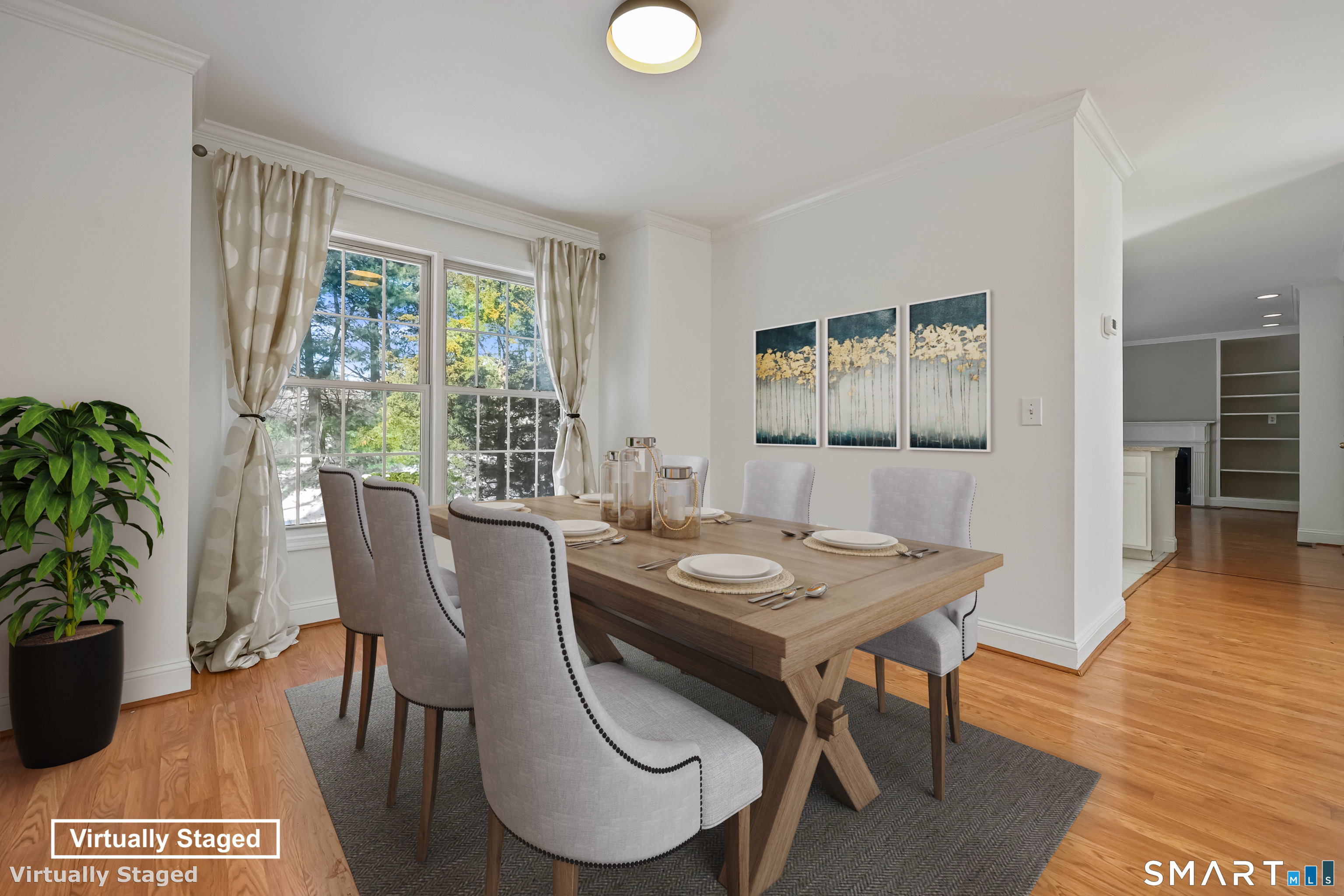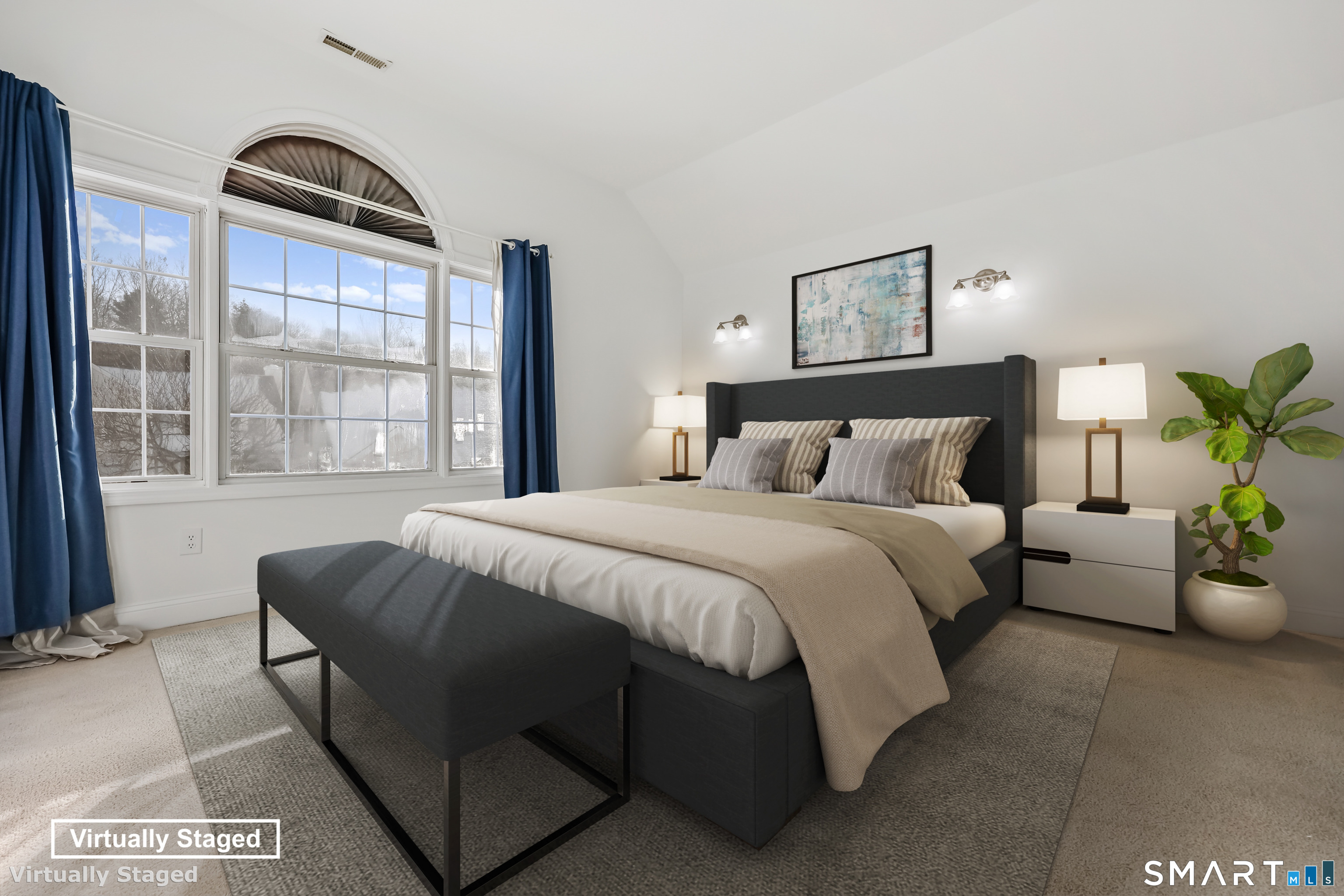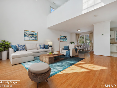 Set within the desirable Grumman Hill Village community, 2 Village Ct offers a rare combination of privacy, comfort, and low-maintenance living. Positioned on a one-of-a-kind corner lot with one of the largest backyards in the complex, this distinctive setting offers unparalleled privacy, creating an effortless blend of refined comfort and turnkey living. From the moment you step inside, the dramatic ceiling in the living room sets the tone, framed by expansive windows and modern lighting that amplify the home's natural light. The living room flows seamlessly into the dining area and updated kitchen, creating an inviting layout for everyday living. Just beyond, the den features built-ins, a gas fireplace, and a sliding door to a private patio and comfortable yard. Upstairs, a loft overlooking the main level adds flexibility, while a convenient laundry closet eliminates trips up and down stairs. The primary suite is a true retreat with a Palladian window, cathedral ceiling, walk-in closet, and en-suite bath with dual vanity. Two additional bedrooms and a full bath complete the upper level. A spacious 2 car garage with a new door rounds out the home. Residents enjoy HOA-managed landscaping, snow removal, and trash pickup in the quiet community. Ideally located near ASML, Wilton Town Center, shopping, train stations, Route 7, the Merritt Parkway, and I-95. Come experience a home that blends thoughtful updates and effortless living in one of Wilton's most convenient communities.