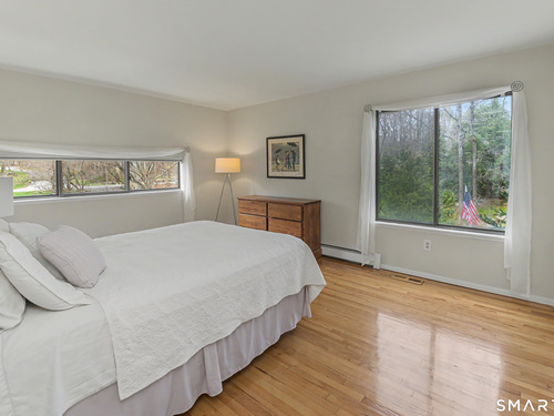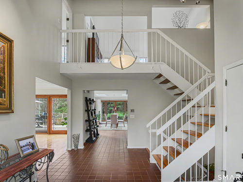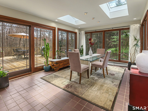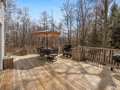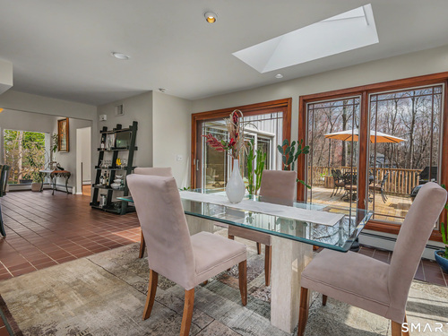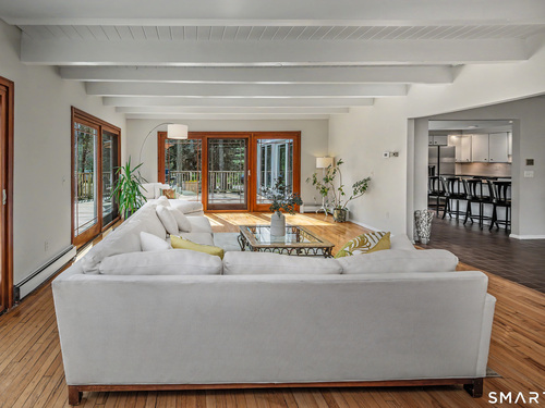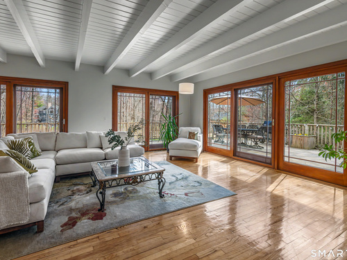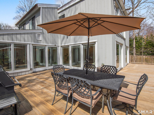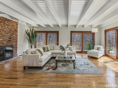 Classic modern architecture set on a bucolic, level, private acre along scenic Silver Spring Road. Spanning over 2,800 sq ft, this turnkey residence offers beautifully scaled rooms designed for effortless living. An abundance of natural light fills the home, while high ceilings, handsome millwork and open spaces create a sense of calm and understated style across three finished levels. The main level is a study in simplicity and function, highlighted by a stunning Great Room with fireplace and walls of windows opening to an expansive wraparound deck. The efficient, well-appointed Kitchen blends seamlessly with a spacious Dining Area, also bathed in natural light. An open staircase adds a striking architectural element to the home. Upstairs, the comfortable Primary Suite features an updated bath and generous walk-in closet. Three secondary bedrooms are well-proportioned and share a remodeled hall bath. In addition, there is a wonderful flex space on this level - perfect for a home office or a casual Family Room. The walk-out lower level includes a fireplace and versatile space ideal for casual entertaining, recreation or relaxation. Perfectly located just minutes to downtown Ridgefield and Wilton Center, with convenient access to Metro-North service from Wilton, New Canaan, and Katonah for an easy NYC commute. Enjoy the many features of living in Wilton CT - Top Rated Schools, Beautiful Landscapes, all forms of shopping & dining. Convenient to Down County destinations.