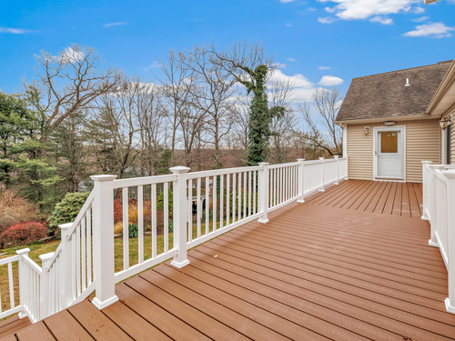 Don't miss this incredible home set on an expansive one-plus-acre property in Lower Easton. Tucked away on a quiet cul-de-sac, this already beautiful residence has recently undergone a stunning transformation, featuring brand-new cabinetry, quartz countertops, stainless steel appliances, and gleaming hardwood floors. The guest bathroom has been fully renovated with a fresh, modern style from top to bottom. Lofty vaulted ceilings and freshly painted interiors create a bright, airy atmosphere from the moment you enter. The expansive primary suite is a true retreat, offering two walk-in closets, a spacious bathroom, and a separate sun-filled area-perfect for a home office, nursery, or sitting room-which leads directly to an extensive new TREX deck overlooking the lush backyard. Three additional bedrooms, all with new carpeting, are generously sized with ample closet space; one includes its own private bath. The walk-out lower level is exceptional, designed for entertaining, recreation, movie nights, and more. It features new carpet, recessed lighting, and French doors that open to the backyard, as well as a bright bonus room ideal for a gym, art studio, or any creative use you can imagine. This impressive level also includes a laundry room, full bath, and storage area complete with a cedar closet. This home is truly move-in ready and waiting for you!