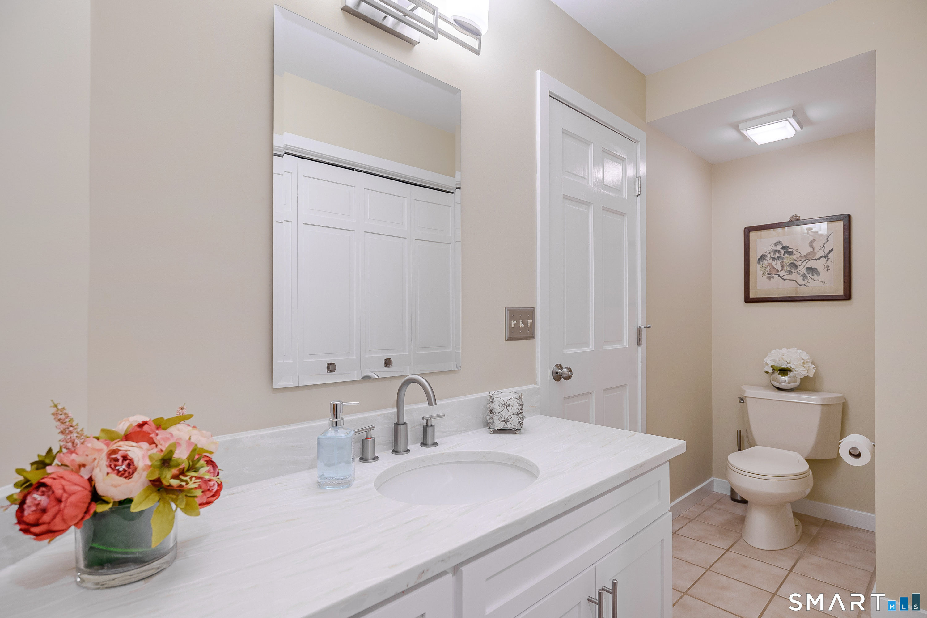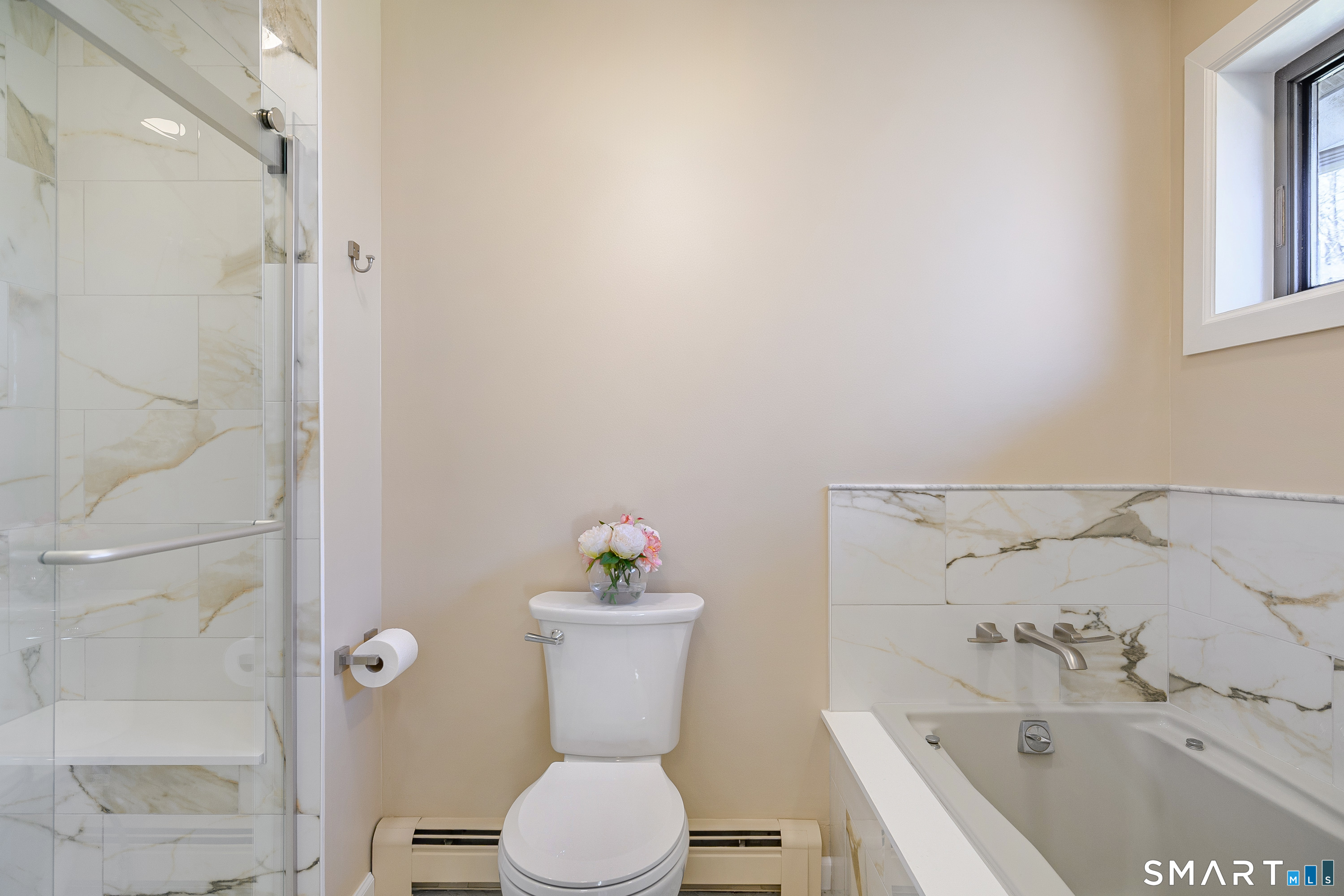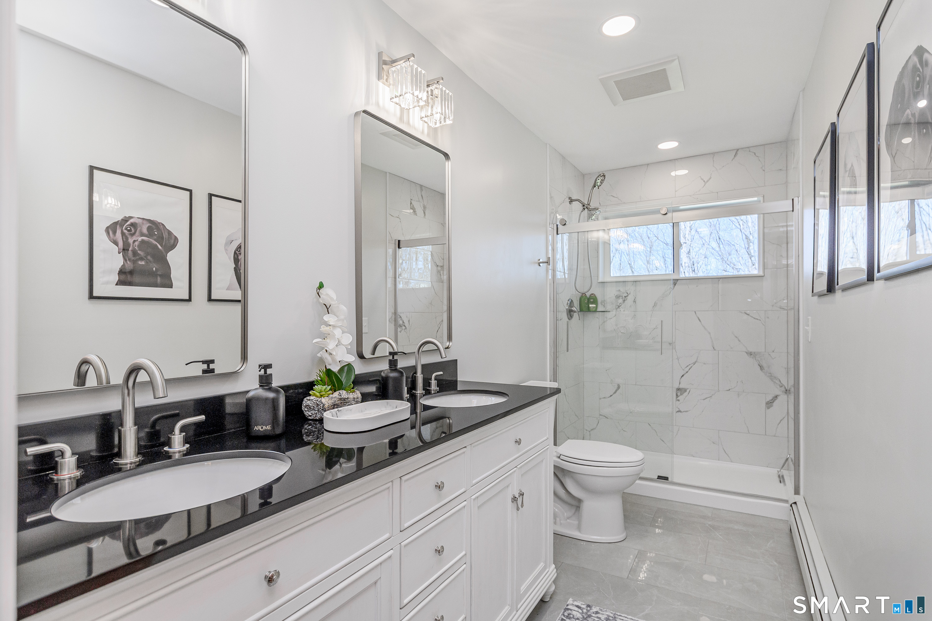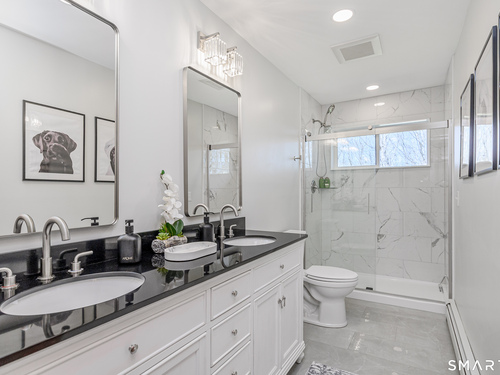 Full Bath (Upper Level)Remodeled, Granite Counters, Double-Sink, Full Bath, Stall Shower, Tile Floor