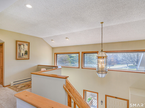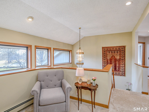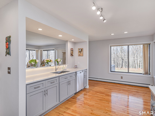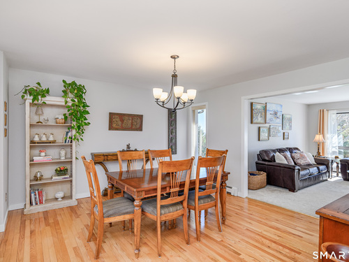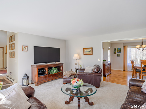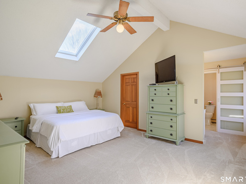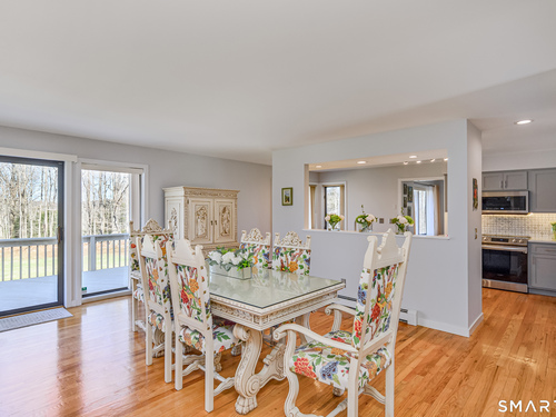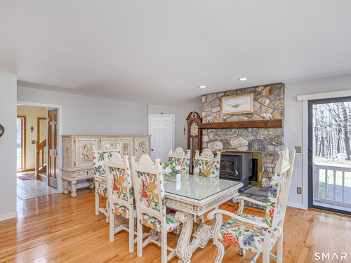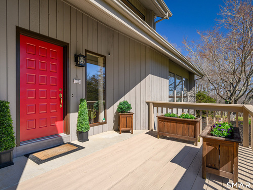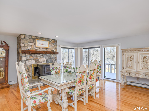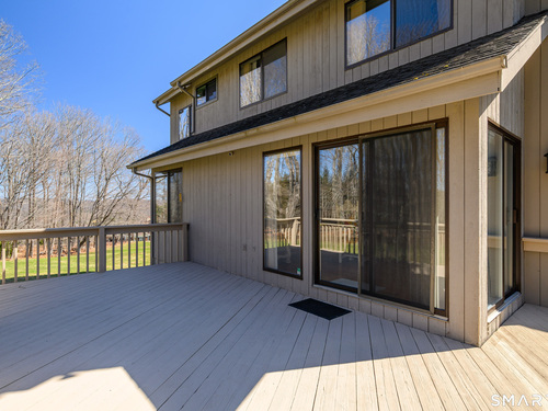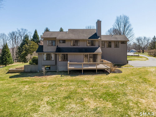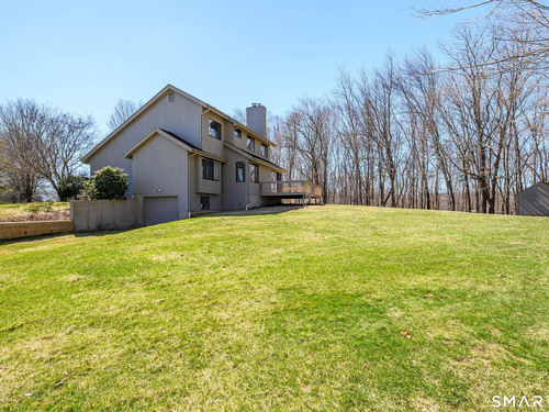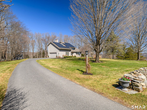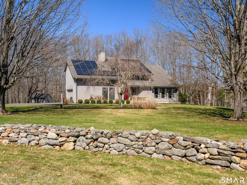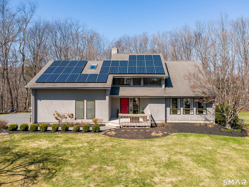 Nestled on a quiet cul-de-sac in the highly desirable Sherman subdivision, this beautifully remodeled country contemporary offers over 2,700 square feet of inviting living space. Designed to capture natural light, the home features an open floor plan with dramatic floor-to-ceiling windows and stunning views of Happy Acres Farm, delivering breathtaking sunsets every evening. At the heart of the home is a striking floor-to-ceiling fieldstone fireplace, perfectly complementing the warm and airy interior. Two sets of sliding doors lead to a spacious deck, ideal for relaxing or entertaining while overlooking the private, park-like yard. The upper level boasts a serene primary suite with vaulted ceilings, skylights, and a tastefully updated en-suite bath. Two additional bedrooms and a versatile home office, easily adaptable for overnight guests, and supported by the four-bedroom septic, complete this level. The lower level offers a generous recreation room, with luxury vinyl flooring, perfect for gatherings and play, along with a workshop, ample storage, and additional garage space. Surrounded by mature trees and perennial gardens, the property provides exceptional privacy in a picturesque setting. Conveniently located just minutes from schools, shopping, dining, and recreational amenities including walking tracks, tennis courts, and Sherman Town Beach on Candlewood Lake. Commuters will appreciate easy access to nearby Metro-North trains, all while benefiting from low taxes, too!