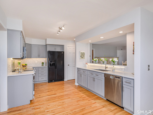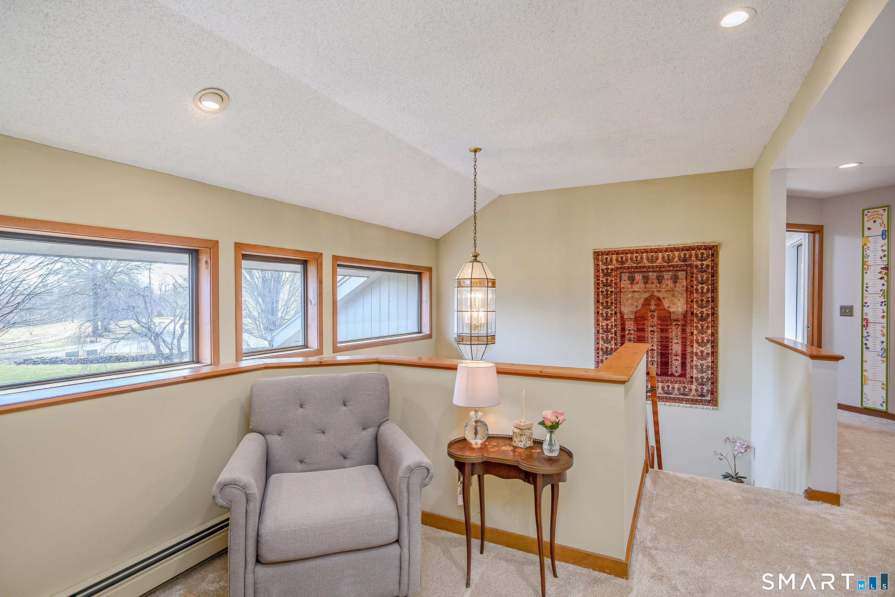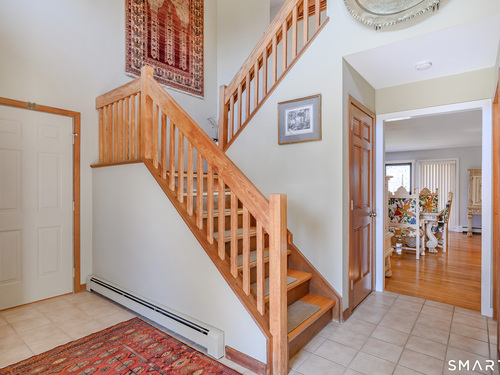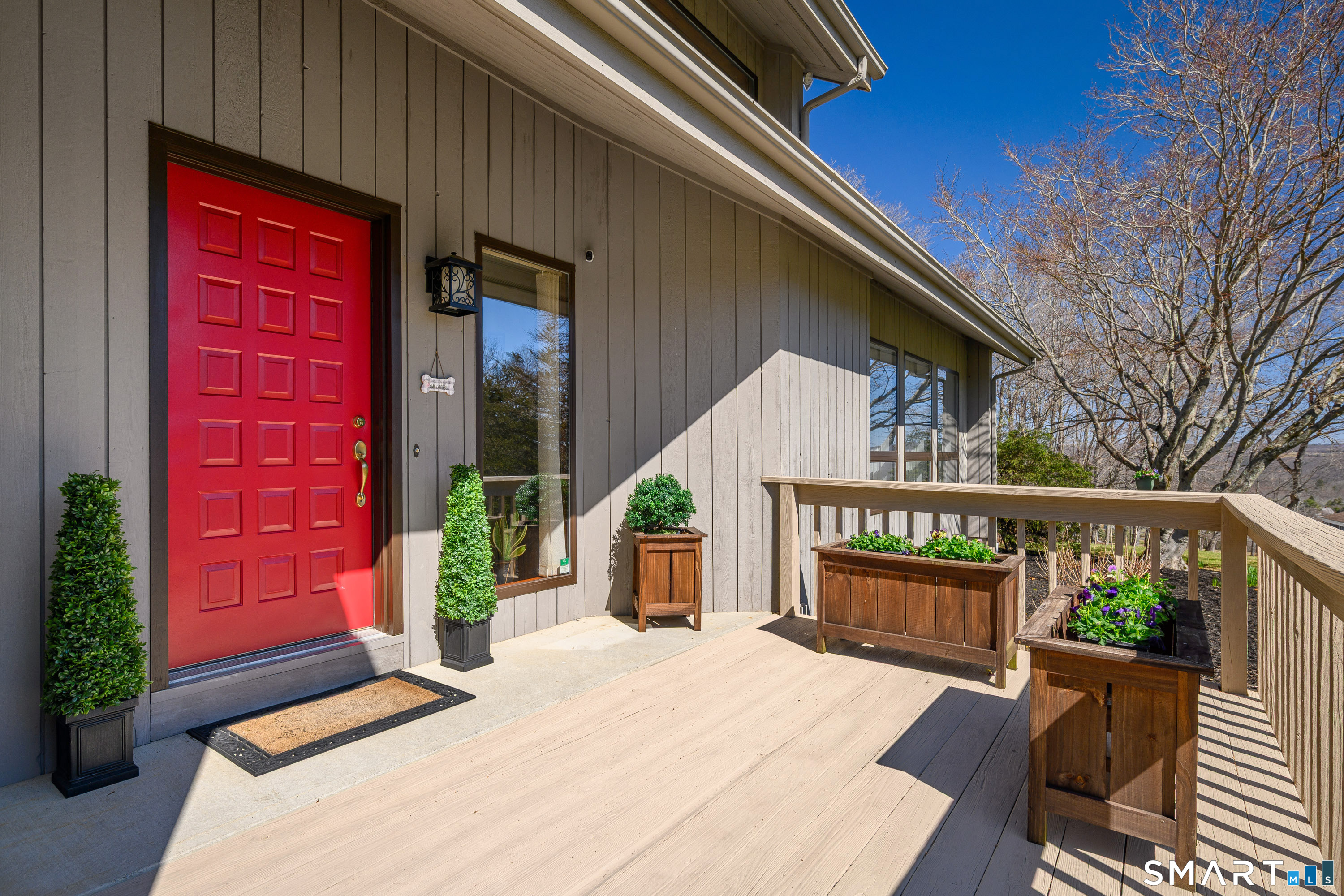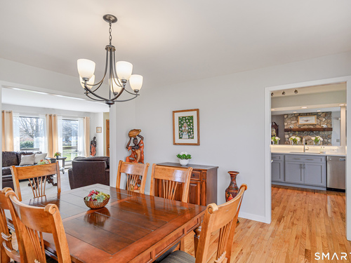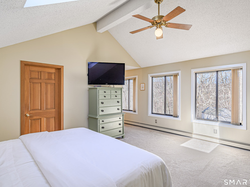 Nestled on a quiet cul-de-sac in the highly desirable Sherman subdivision, this beautifully remodeled country contemporary offers over 2,700 square feet of inviting living space. Designed to capture natural light, the home features an open floor plan with dramatic floor-to-ceiling windows and stunning views of Happy Acres Farm, delivering breathtaking sunsets every evening. At the heart of the home is a striking floor-to-ceiling fieldstone fireplace, perfectly complementing the warm and airy interior. Two sets of sliding doors lead to a spacious deck, ideal for relaxing or entertaining while overlooking the private, park-like yard. The upper level boasts a serene primary suite with vaulted ceilings, skylights, and a tastefully updated en-suite bath. Two additional bedrooms and a versatile home office, easily adaptable for overnight guests, and supported by the four-bedroom septic, complete this level. The lower level offers a generous recreation room, with luxury vinyl flooring, perfect for gatherings and play, along with a workshop, ample storage, and additional garage space. Surrounded by mature trees and perennial gardens, the property provides exceptional privacy in a picturesque setting. Conveniently located just minutes from schools, shopping, dining, and recreational amenities including walking tracks, tennis courts, and Sherman Town Beach on Candlewood Lake. Commuters will appreciate easy access to nearby Metro-North trains, all while benefiting from low taxes, too!