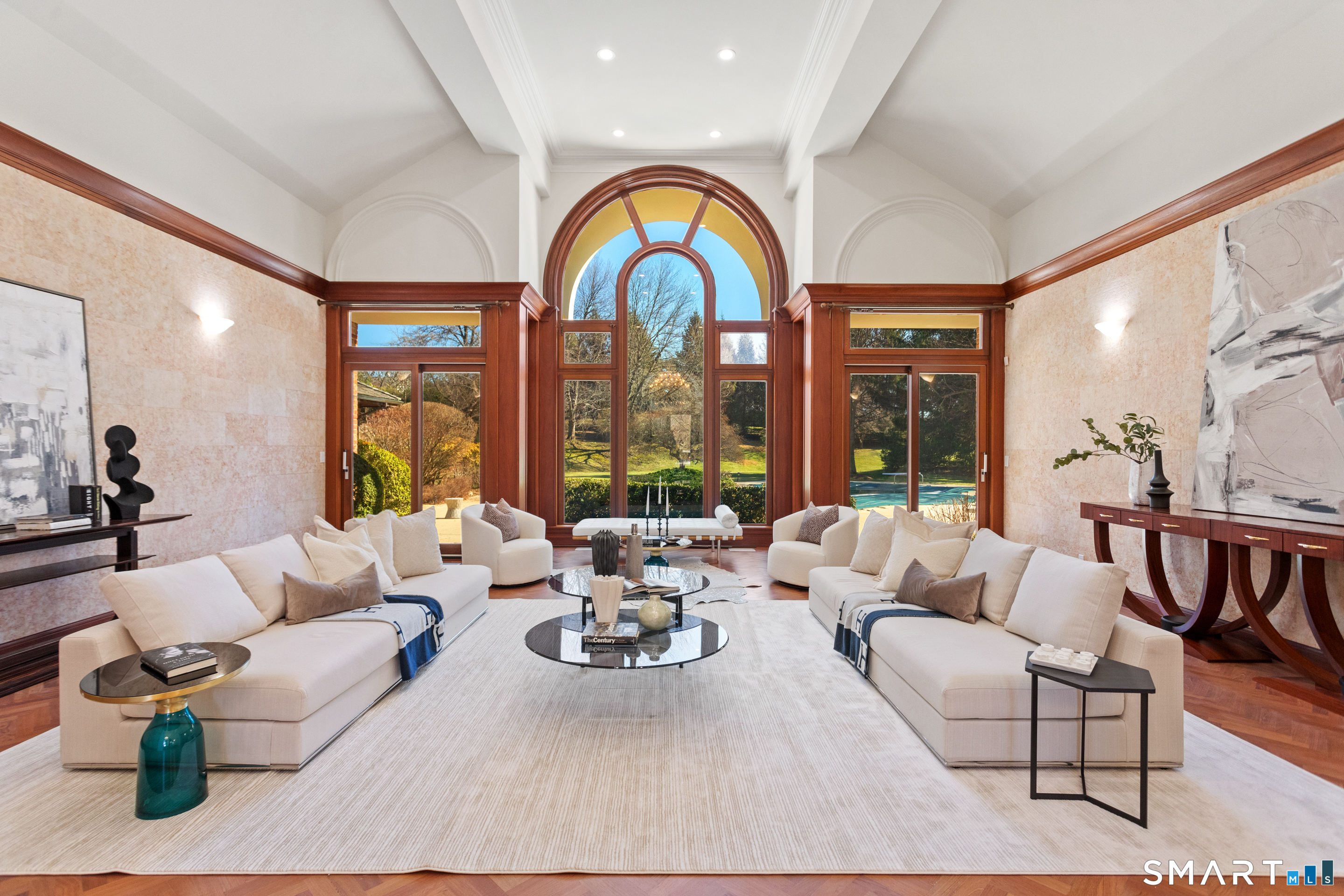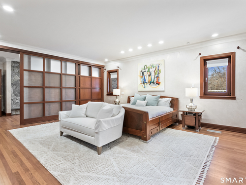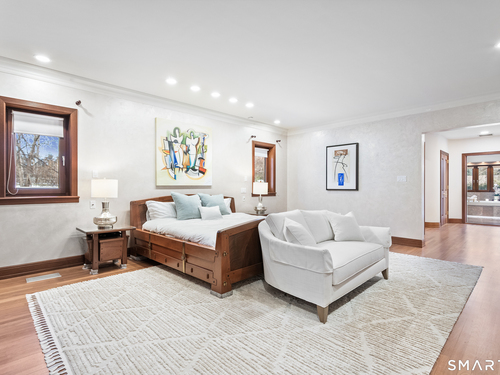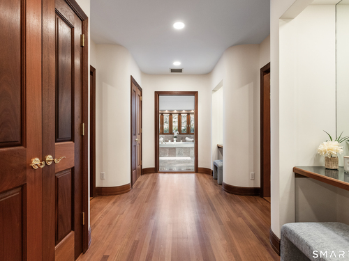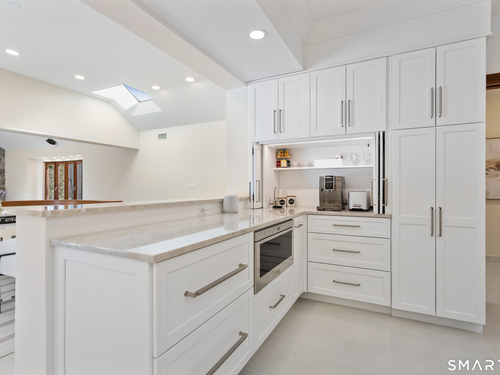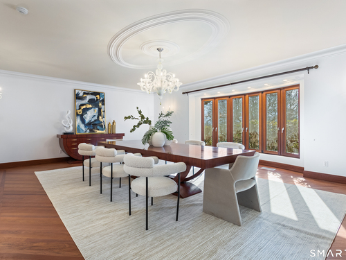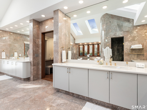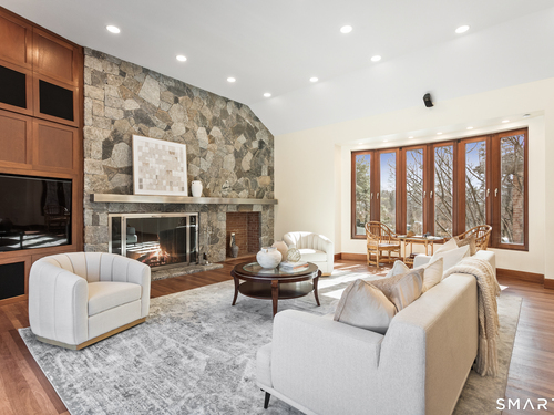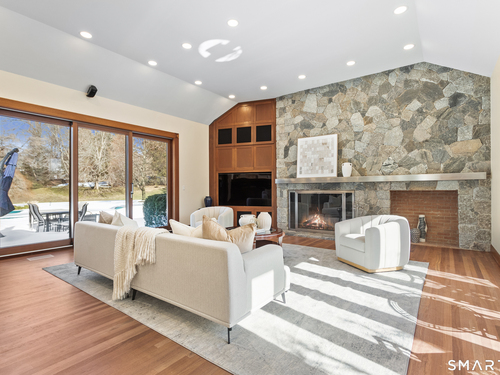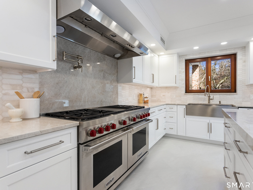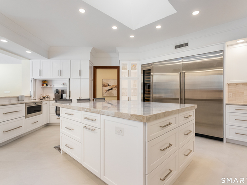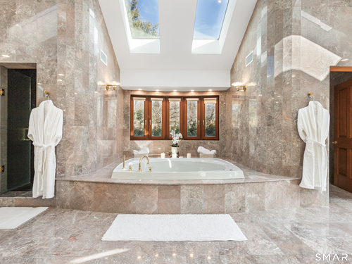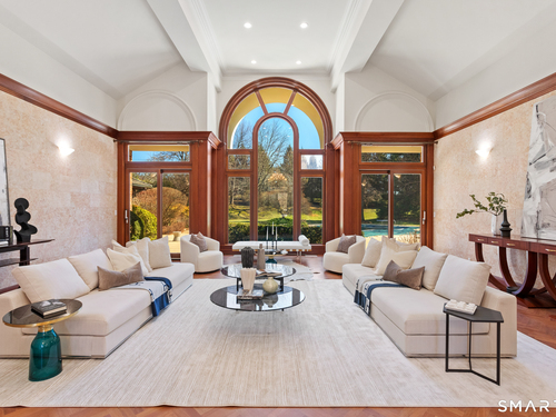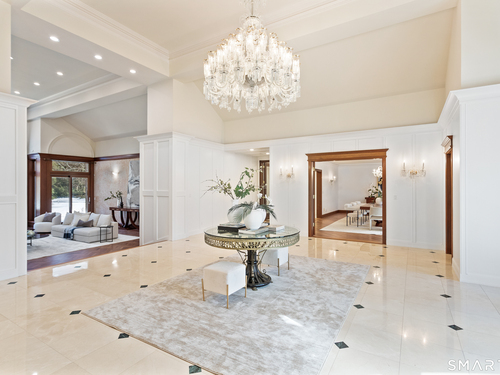This magnificent 9,974 sq ft estate seamlessly blends grand scale, craftsmanship, and modern luxury following an extensive 2025-2026 renovation. Set on 2.3 parklike acres in coveted Mid-Country Greenwich, just minutes from town, the home makes an immediate impression with a soaring two-story foyer introducing exquisitely appointed interiors defined by custom details and rich materials. Completed in 2026, the show stopping kitchen features top-of-the-line appliances, bespoke cabinetry, and a dramatic quartzite center island, opening to a vaulted great room with fireplace and effortless access to the pool terrace. Six spacious ensuite bedrooms include a luxurious primary retreat with sitting room, 2 private offices, fireplace, spa-like marble bath with steam shower and soaking tub, and expansive walk-in closets. A private in-law or nanny suite provides flexible living options. The finished lower level features a 2,000-bottle temperature-controlled wine cellar with tasting bar, recreation space with putting green, sauna, fitness area and ample storage. Outdoors, enjoy a 55-foot pool, spa, 3,000 sq ft sun deck, BBQ island, and sweeping lawns. Additional enhancements include a redesigned laundry room, upgraded lighting throughout, refinished floors, freshly painted interiors, smart home and automation upgrades, state-of-the art security system, new HVAC systems and a modernized garage. An iconic residence where grandeur meets exceptional craftsmanship and refined living.