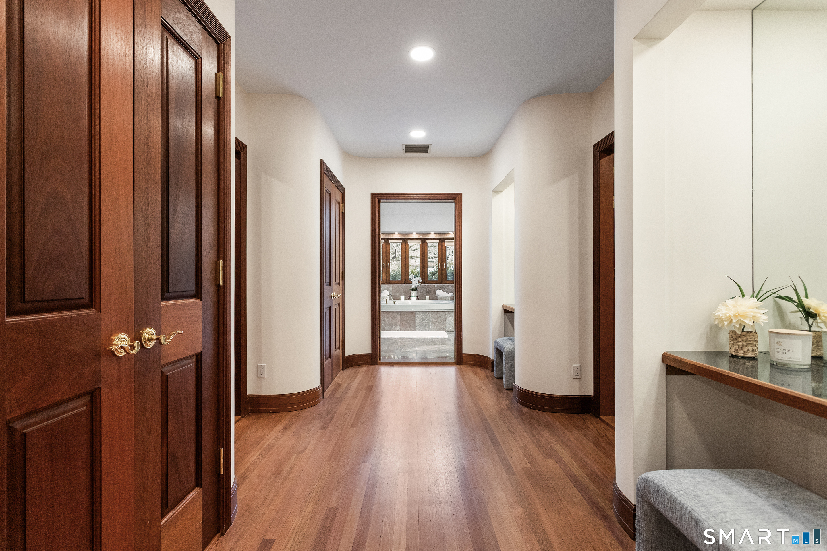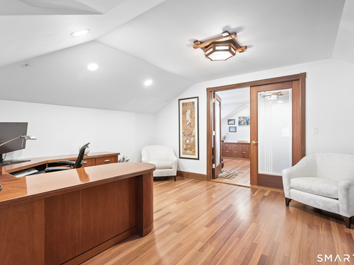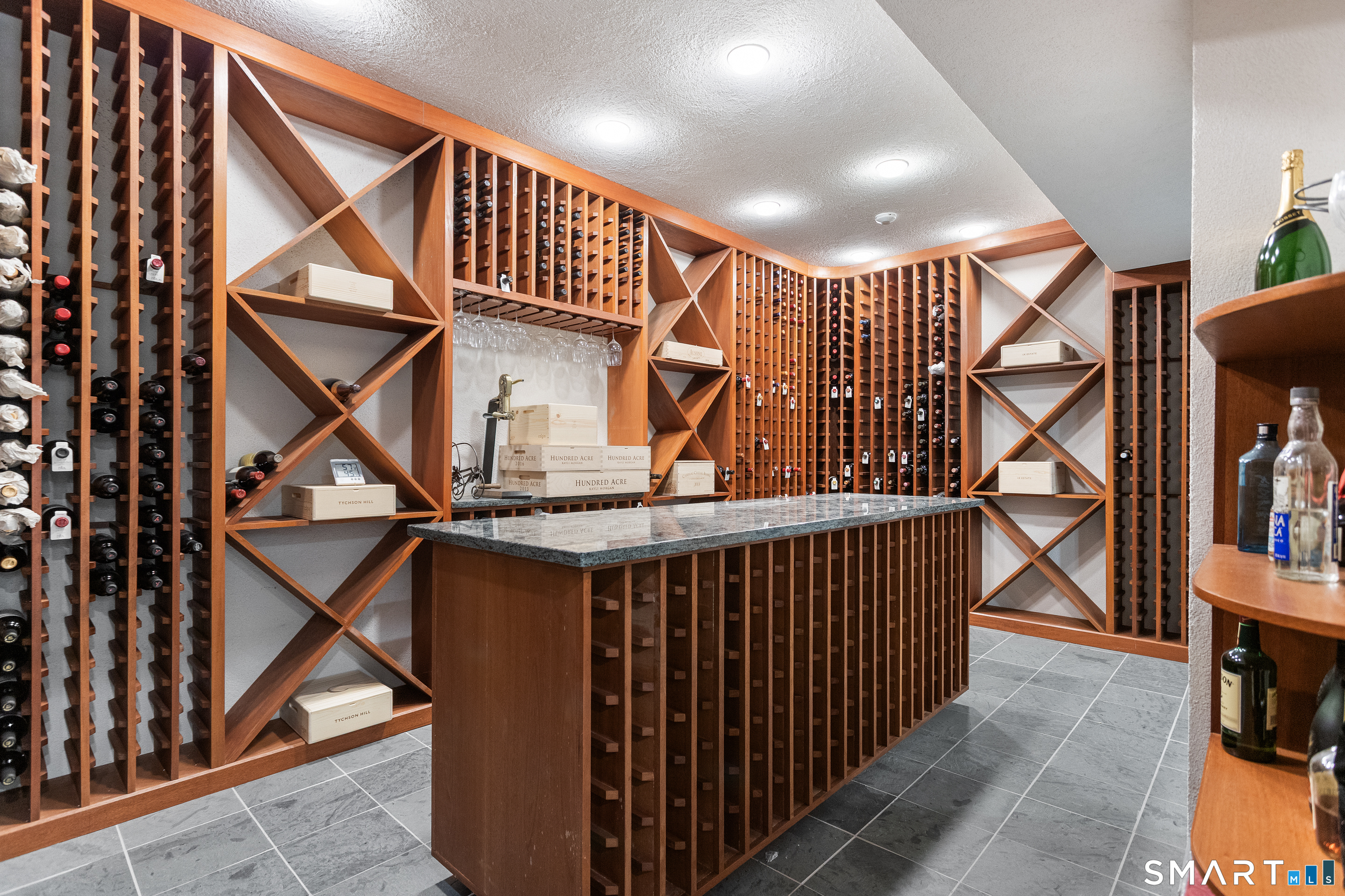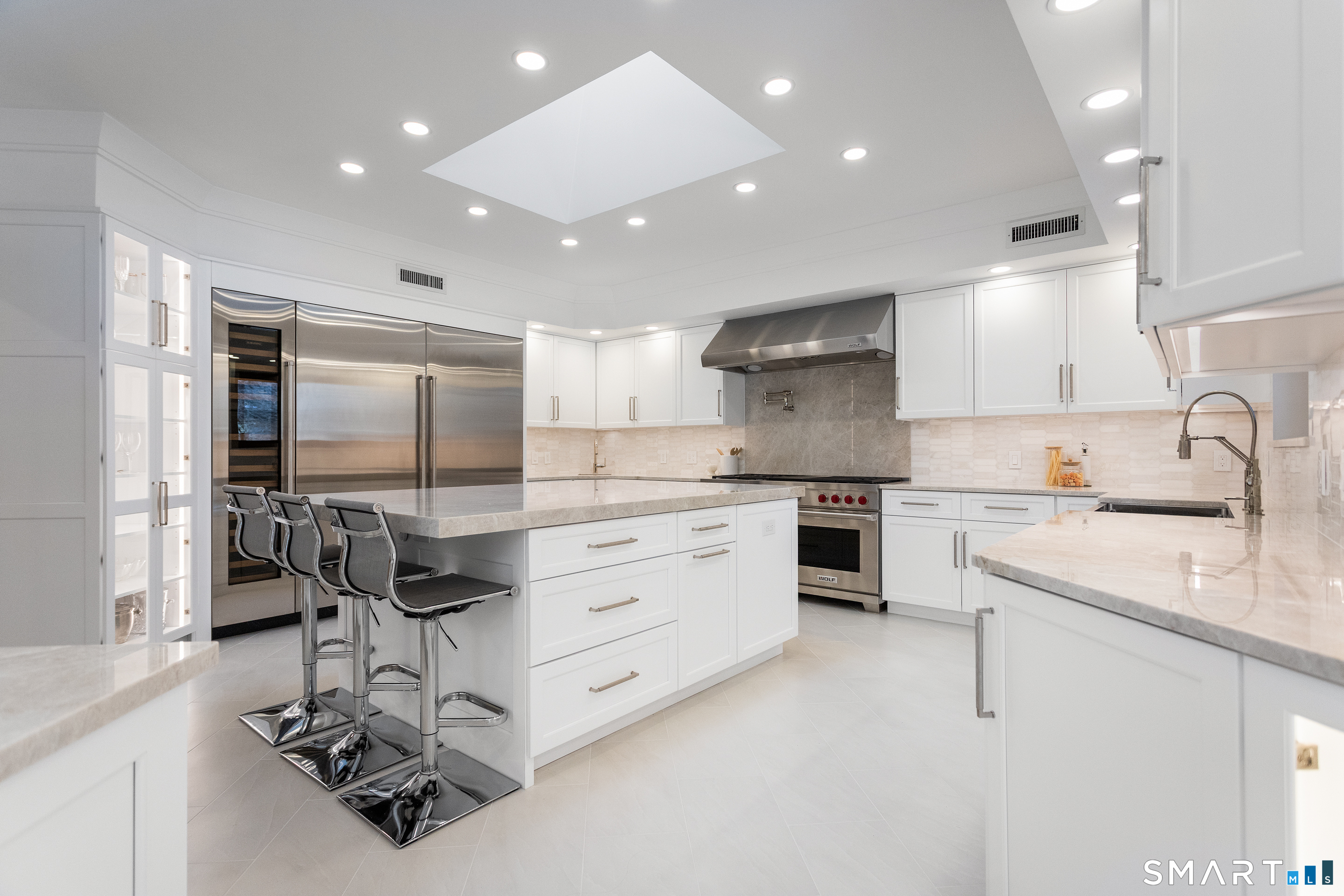 This magnificent 9,974 sq ft estate seamlessly blends grand scale, craftsmanship, and modern luxury following an extensive 2025-2026 renovation. Set on 2.3 parklike acres in coveted Mid-Country Greenwich, just minutes from town, the home makes an immediate impression with a soaring two-story foyer introducing exquisitely appointed interiors defined by custom details and rich materials. Completed in 2026, the show stopping kitchen features top-of-the-line appliances, bespoke cabinetry, and a dramatic quartzite center island, opening to a vaulted great room with fireplace and effortless access to the pool terrace. Six spacious ensuite bedrooms include a luxurious primary retreat with sitting room, 2 private offices, fireplace, spa-like marble bath with steam shower and soaking tub, and expansive walk-in closets. A private in-law or nanny suite provides flexible living options. The finished lower level features a 2,000-bottle temperature-controlled wine cellar with tasting bar, recreation space with putting green, sauna, fitness area and ample storage. Outdoors, enjoy a 55-foot pool, spa, 3,000 sq ft sun deck, BBQ island, and sweeping lawns. Additional enhancements include a redesigned laundry room, upgraded lighting throughout, refinished floors, freshly painted interiors, smart home and automation upgrades, state-of-the art security system, new HVAC systems and a modernized garage. An iconic residence where grandeur meets exceptional craftsmanship and refined living.