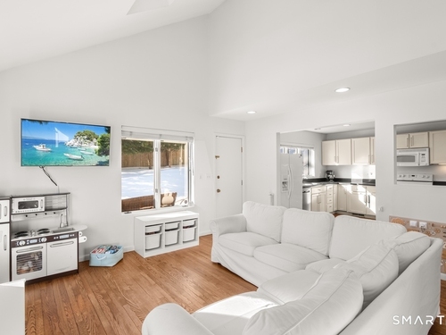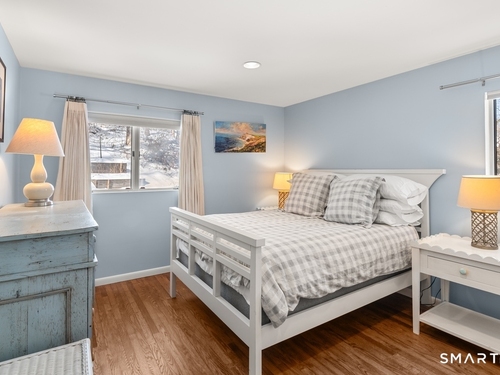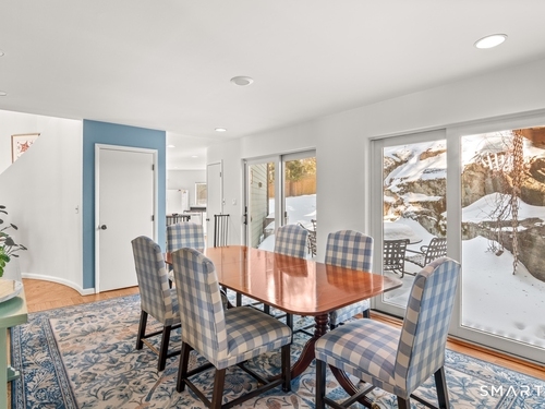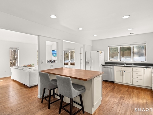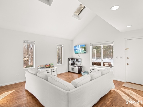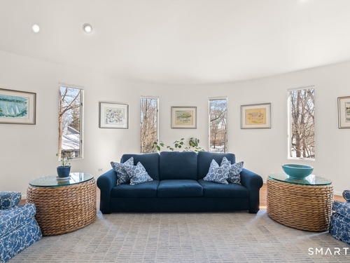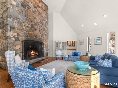 Tucked into the hillside and surrounded by nature, this contemporary Rowayton home offers far more space than meets the eye. Sunlight pours through expansive windows, creating a treehouse-like feeling. This home enjoys a rare sense of calm and functionality, with an oversized masonry fireplace anchoring the living space. Rooms flow effortlessly, inviting both quiet mornings and friendly gatherings. Despite its serene, tucked-away setting, you're surprisingly close to the water and town via a nearby footpath that connects the neighborhood to the waterside walking loop and offering the best of both worlds: peaceful retreat and everyday walkability. A home that feels connected - to nature, to light, and to life in Rowayton.